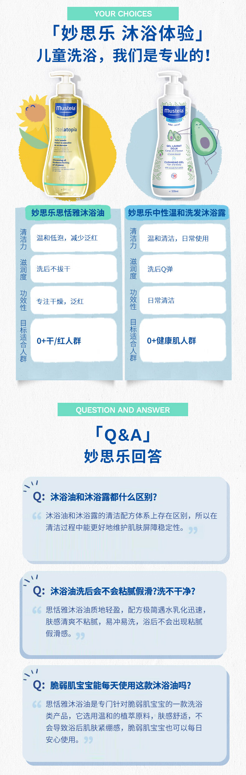 妙思乐(MUSTELA)婴幼儿洗沐二合一思恬雅沐浴油500ml敏感肌适用舒缓干痒红