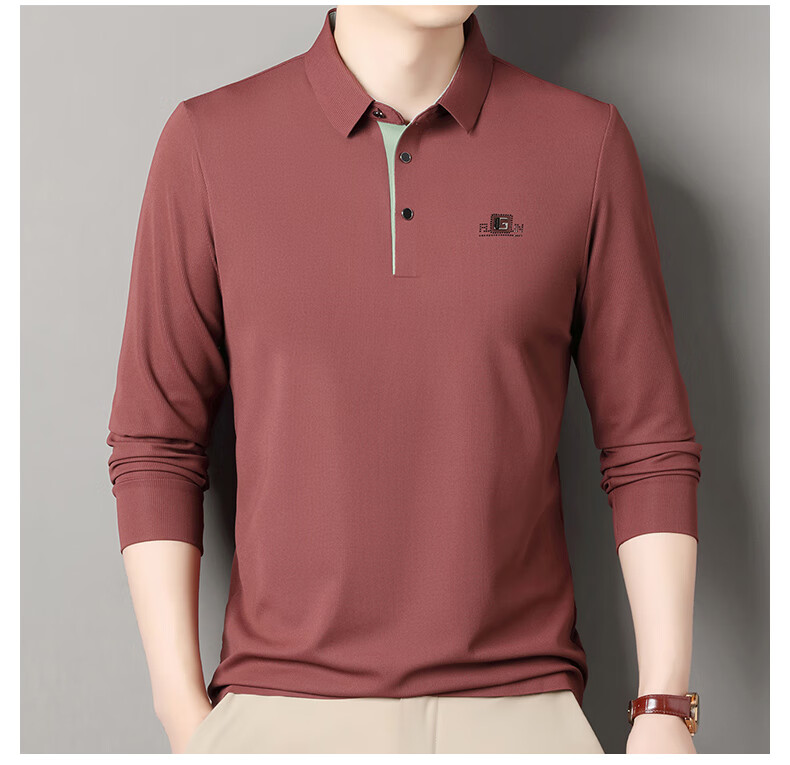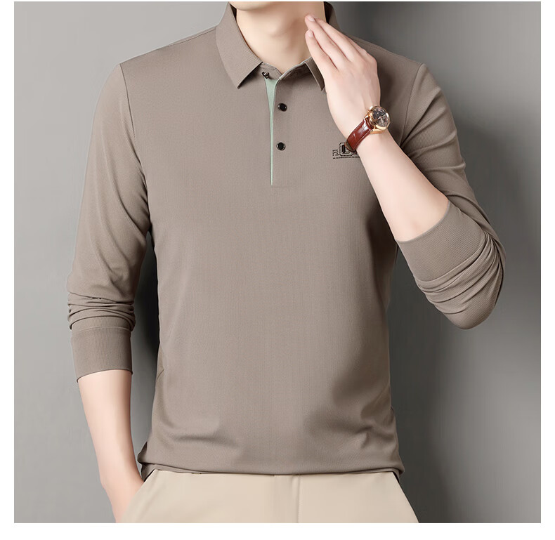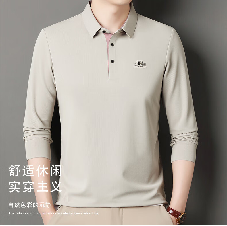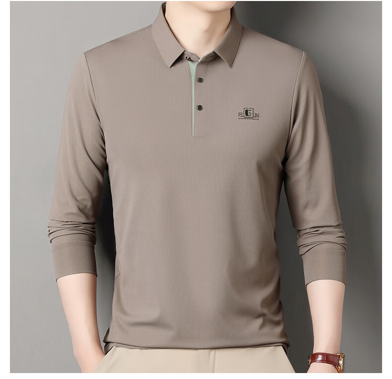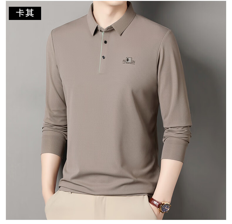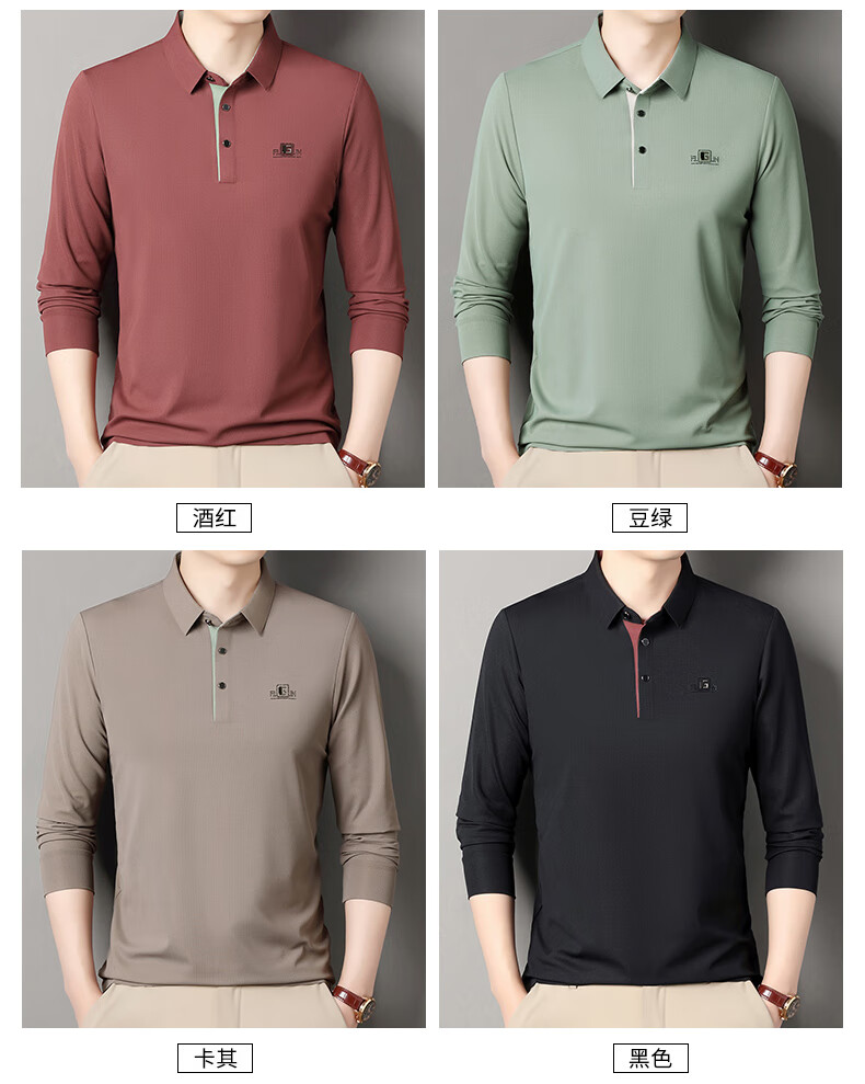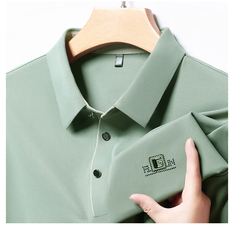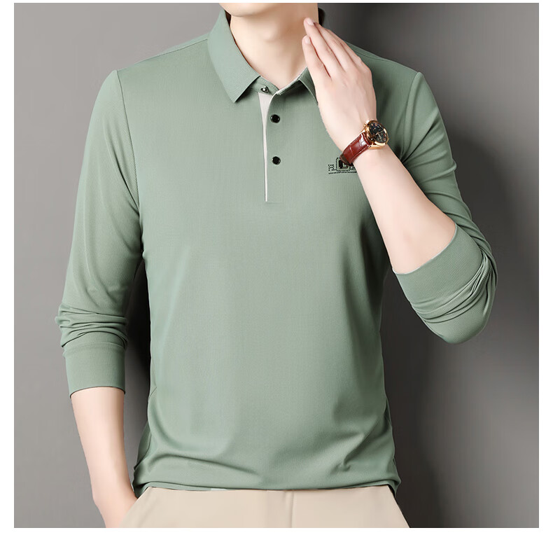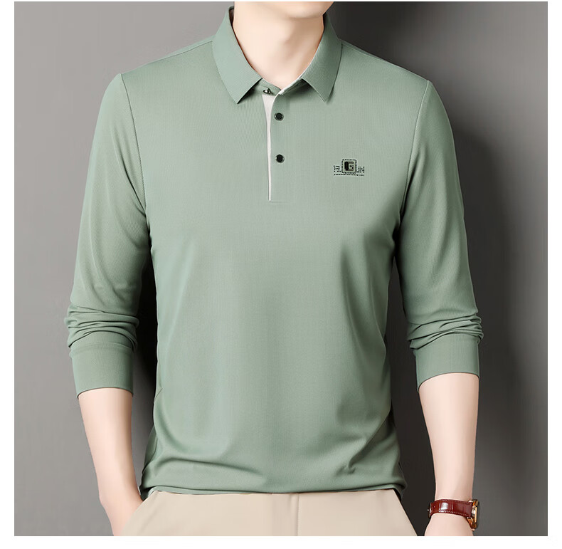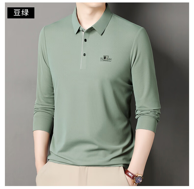 雅鹿男装速干长袖t恤男秋季新款翻领印花宽松男士polo中老年爸爸装上衣 豆绿色 4XL (190)(建议180-195斤)