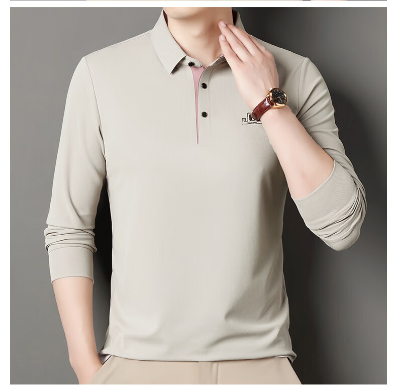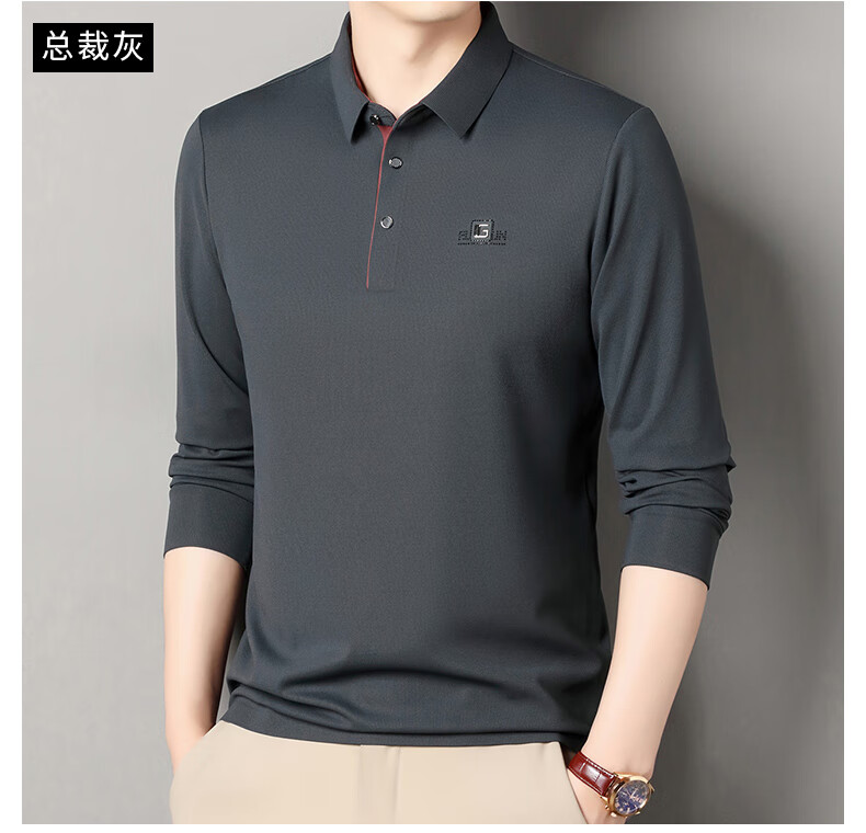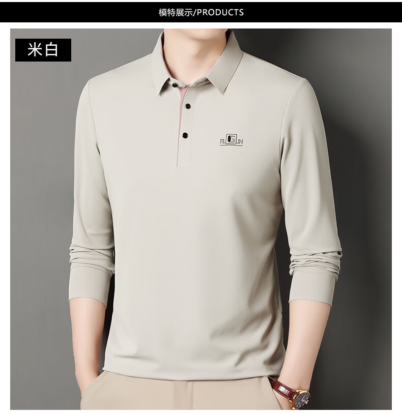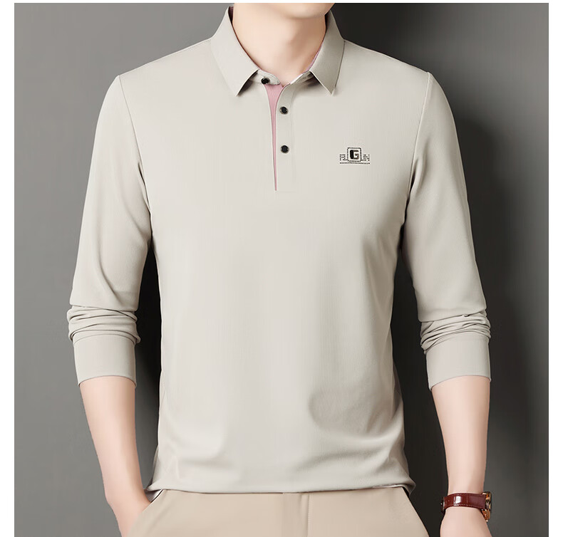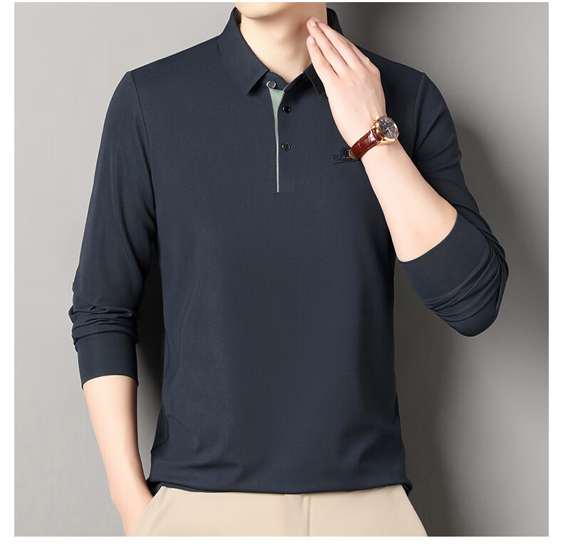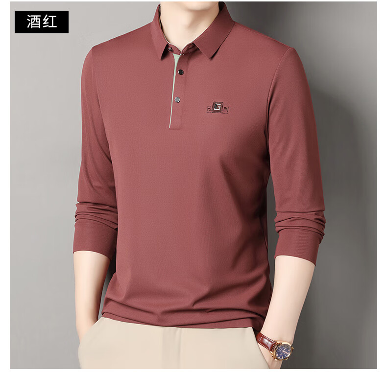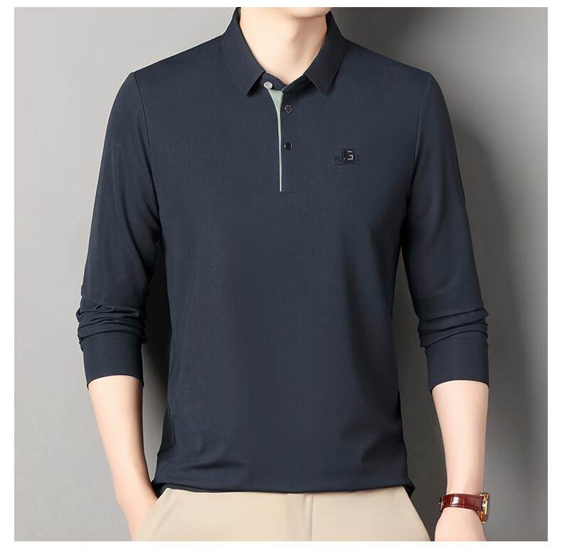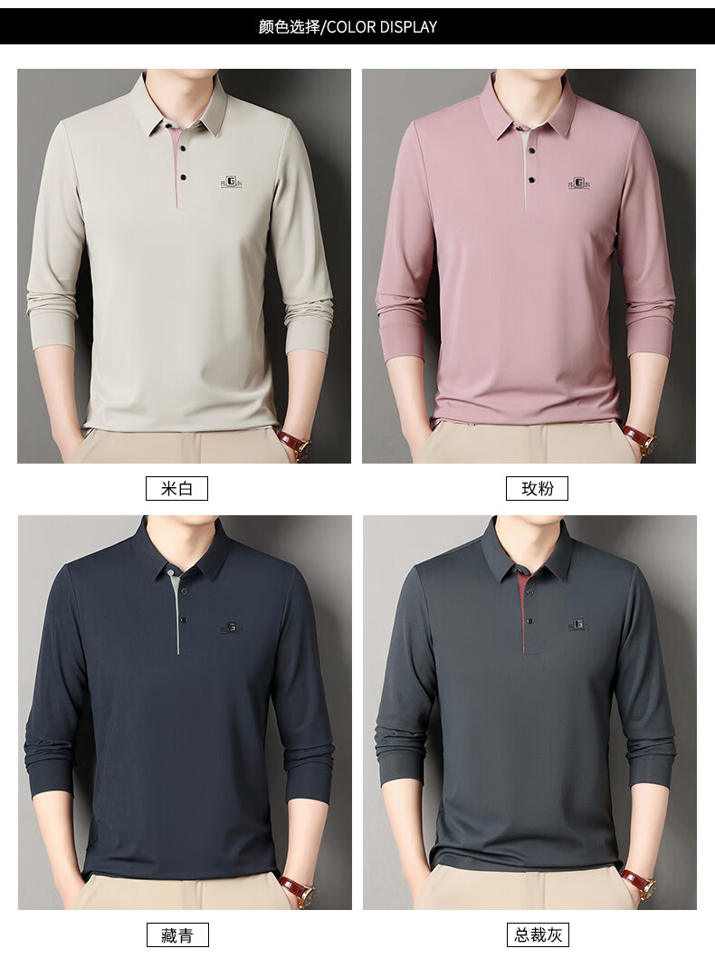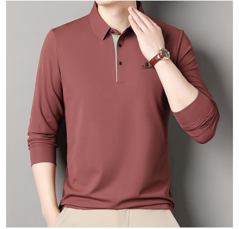 雅鹿男装速干长袖t恤男秋季新款翻领印花宽松男士polo中老年爸爸装上衣 豆绿色 4XL (190)(建议180-195斤)