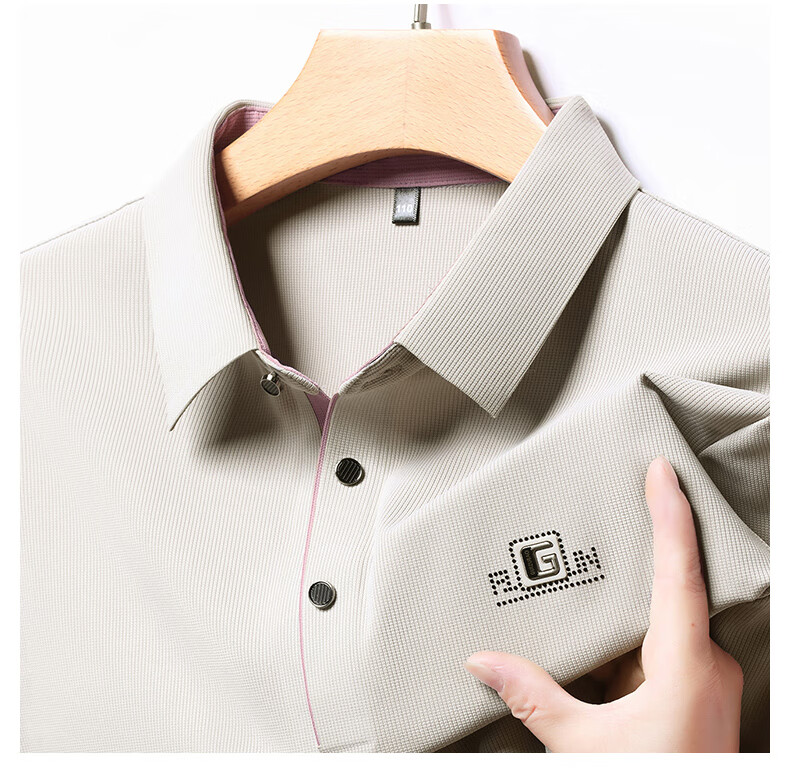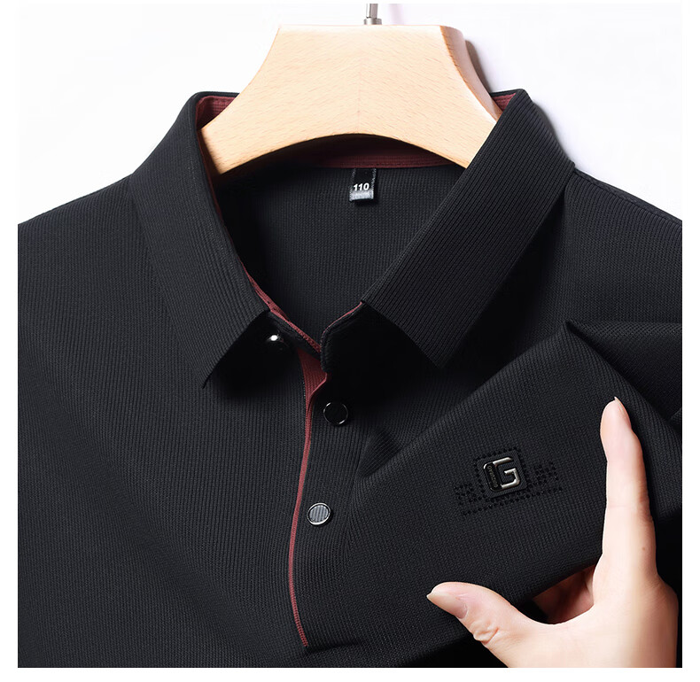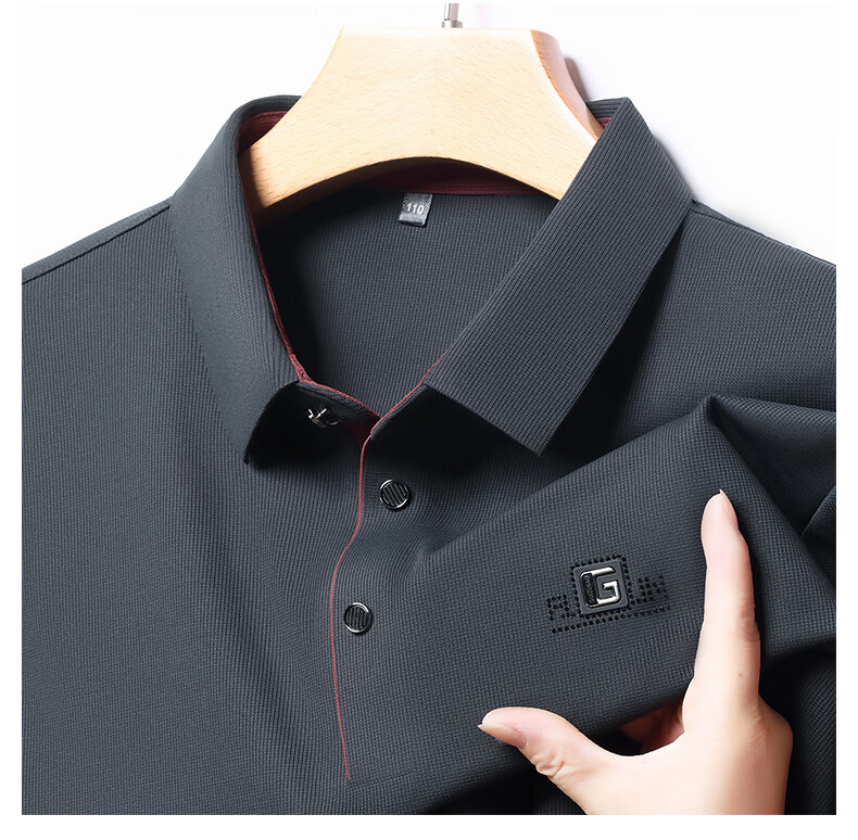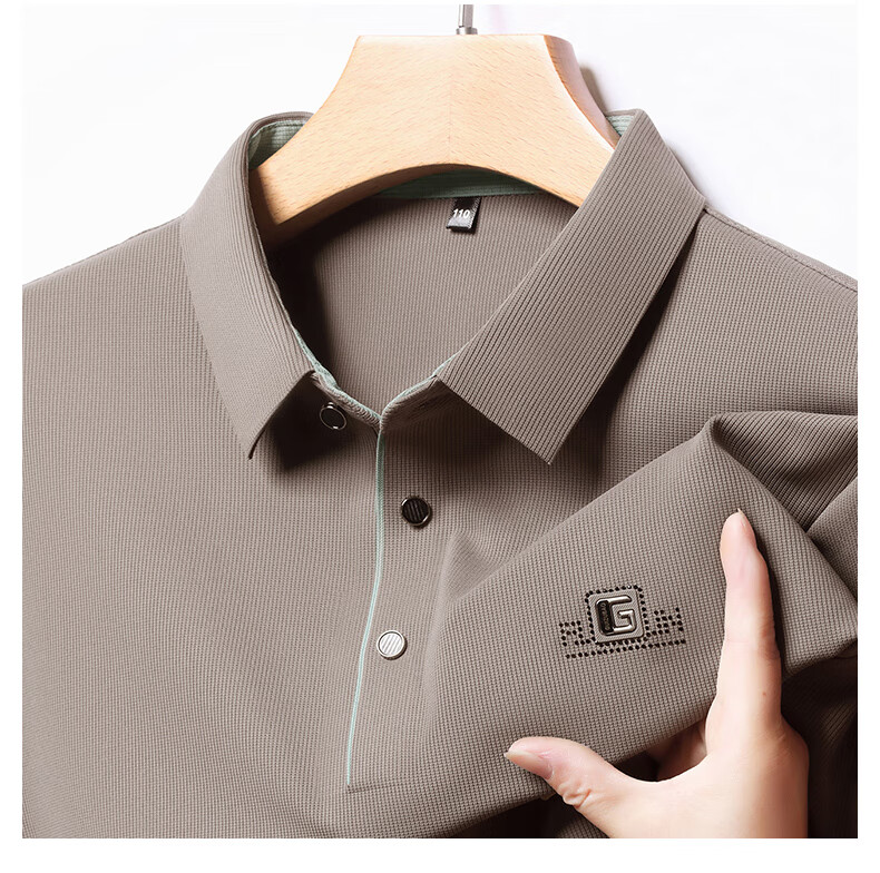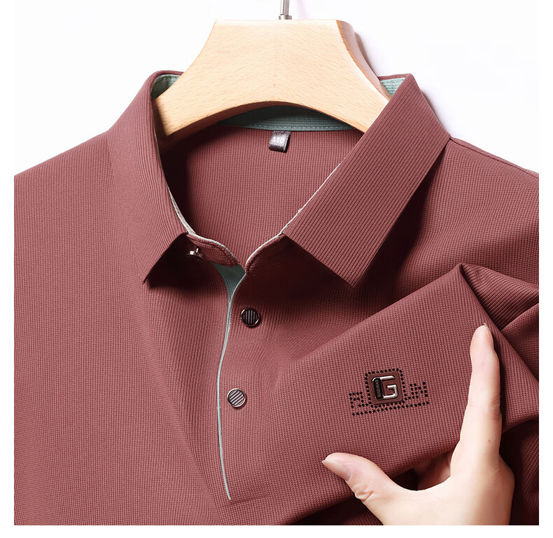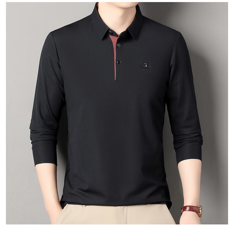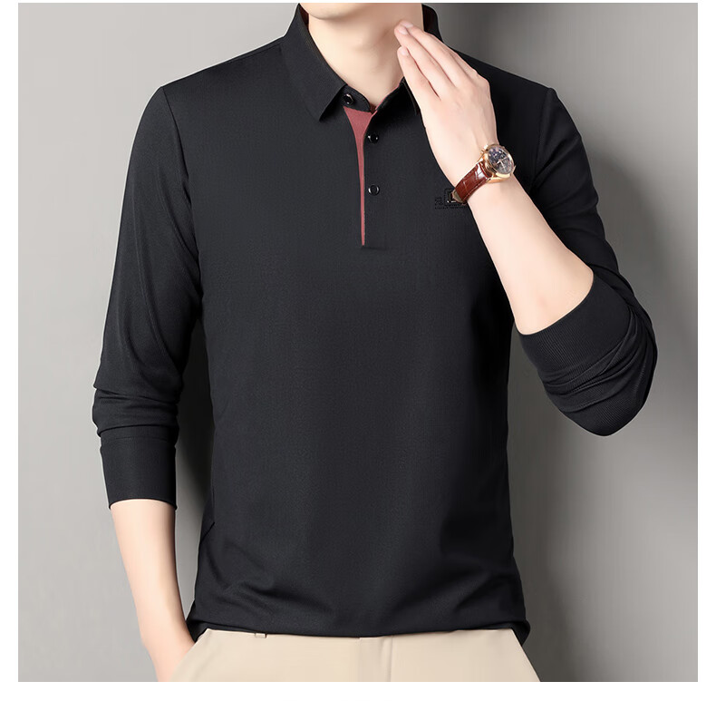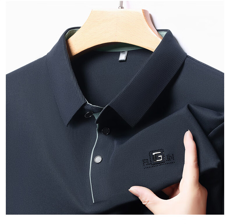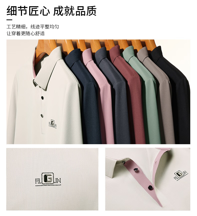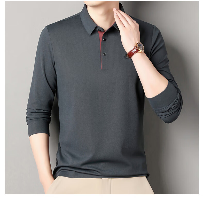 雅鹿男装速干长袖t恤男秋季新款翻领印花宽松男士polo中老年爸爸装上衣 豆绿色 4XL (190)(建议180-195斤)