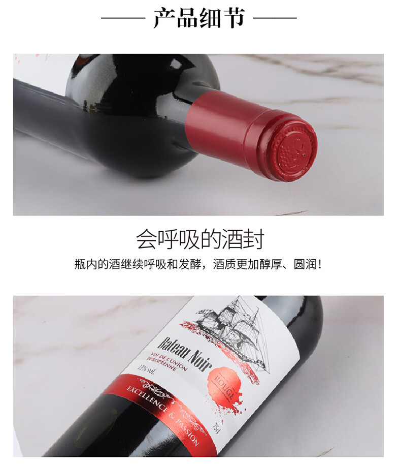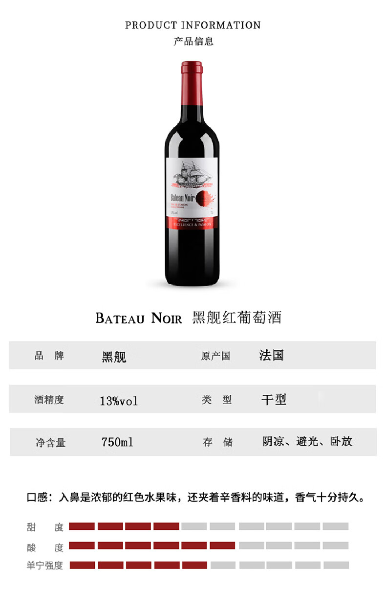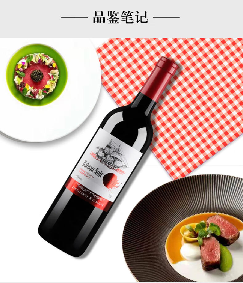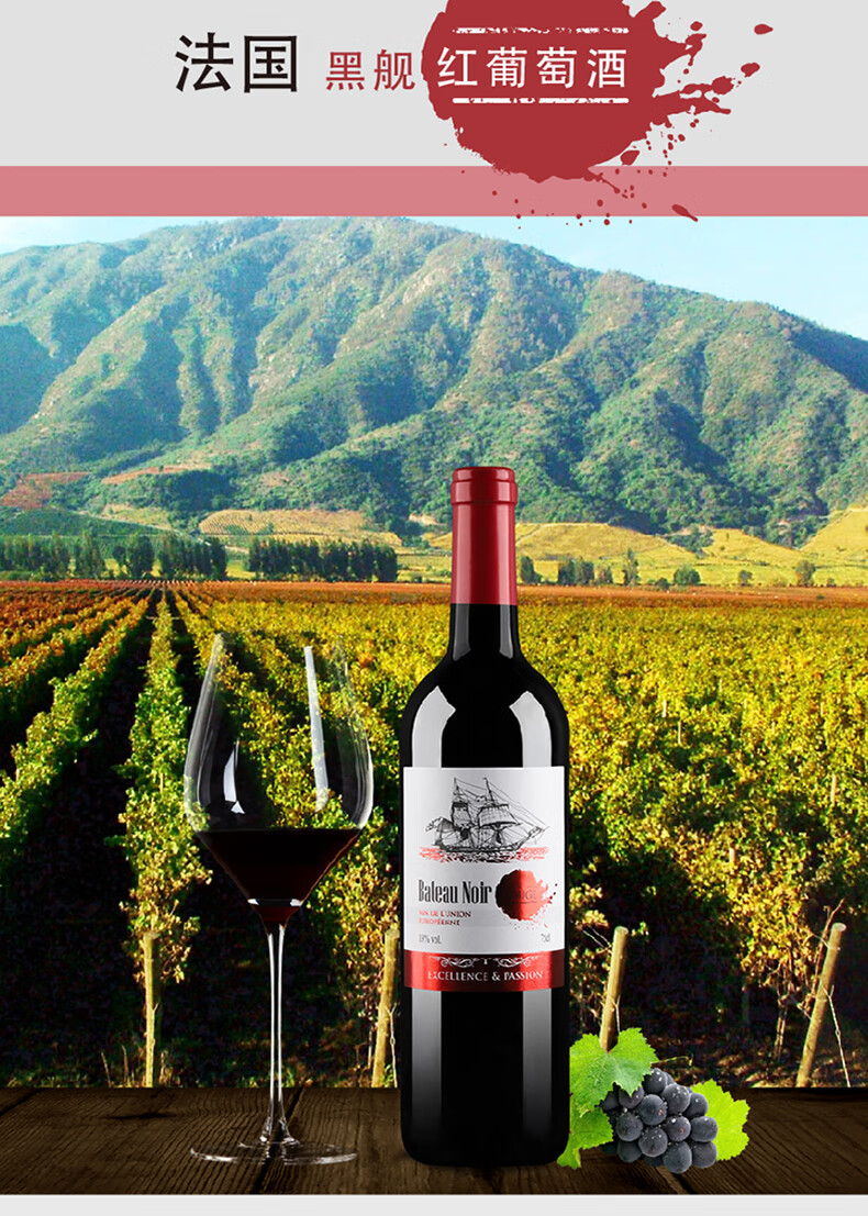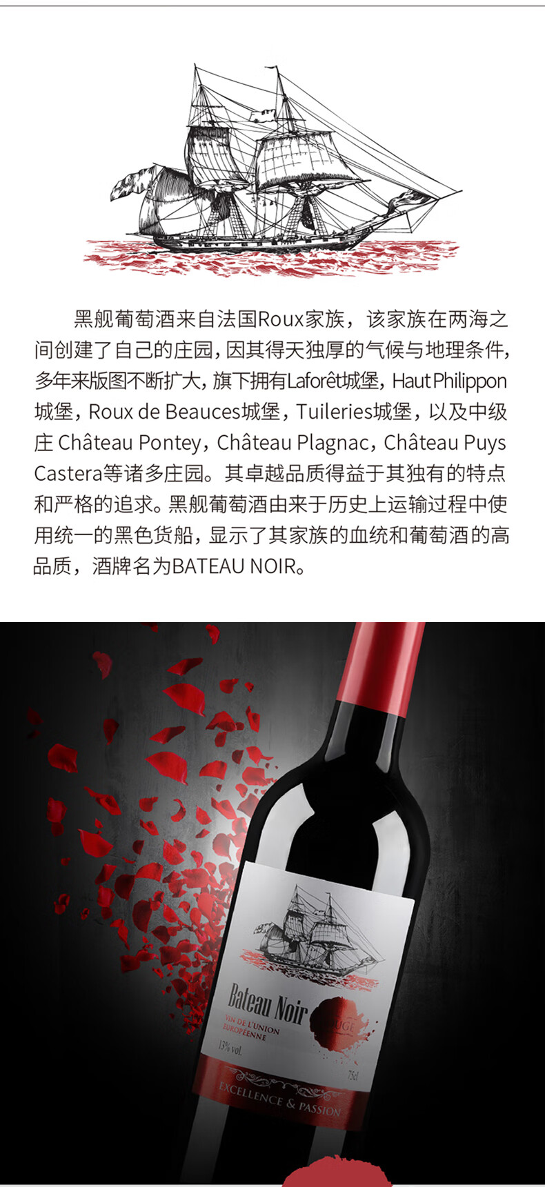 黑舰法国Roux家族原瓶进口 经典混酿干红葡萄酒红酒13度750ml 2支装