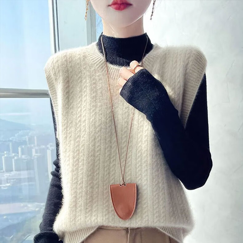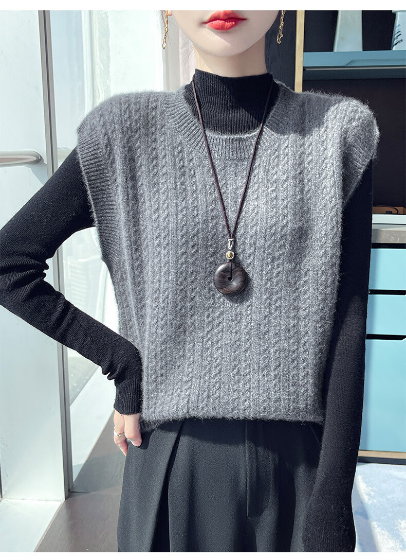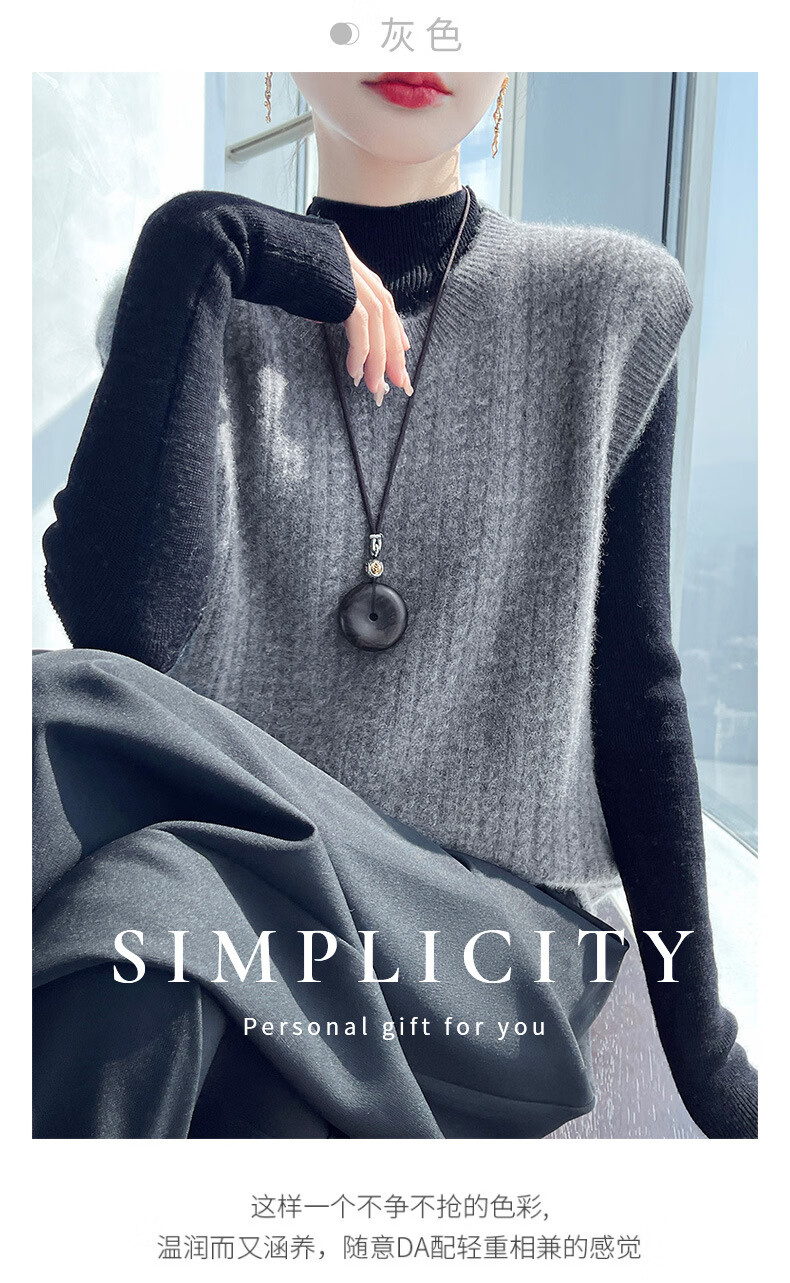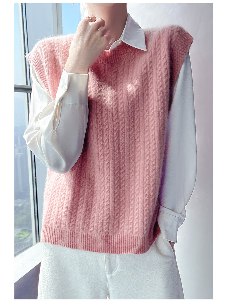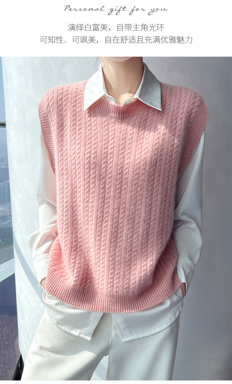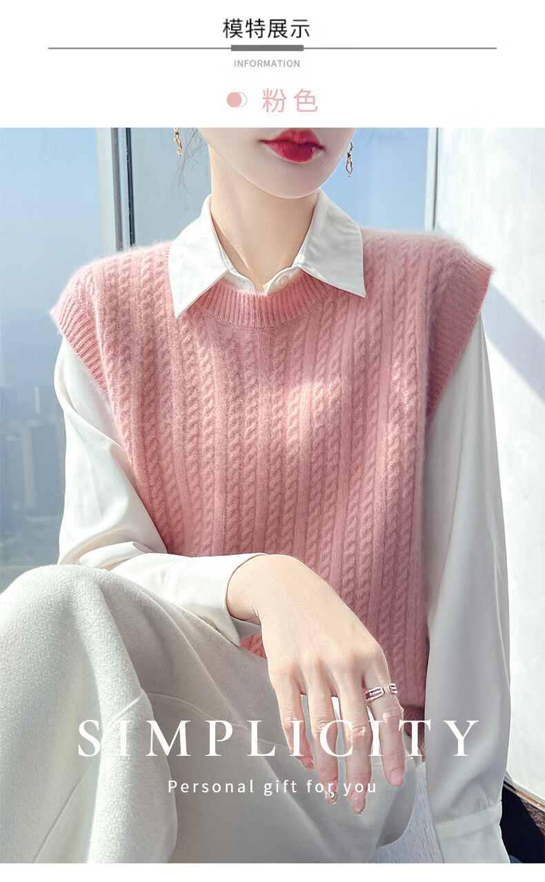 子牧棉麻2025秋装 女复古绞花圆领针织马甲背心叠穿针织无袖坎肩上衣0025 咖啡色 均码 (建议90-135斤)