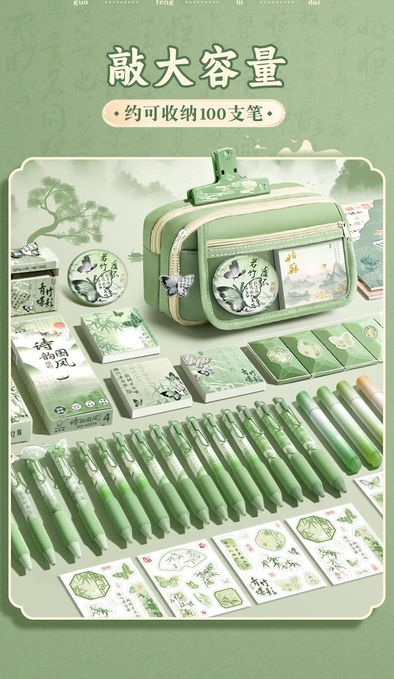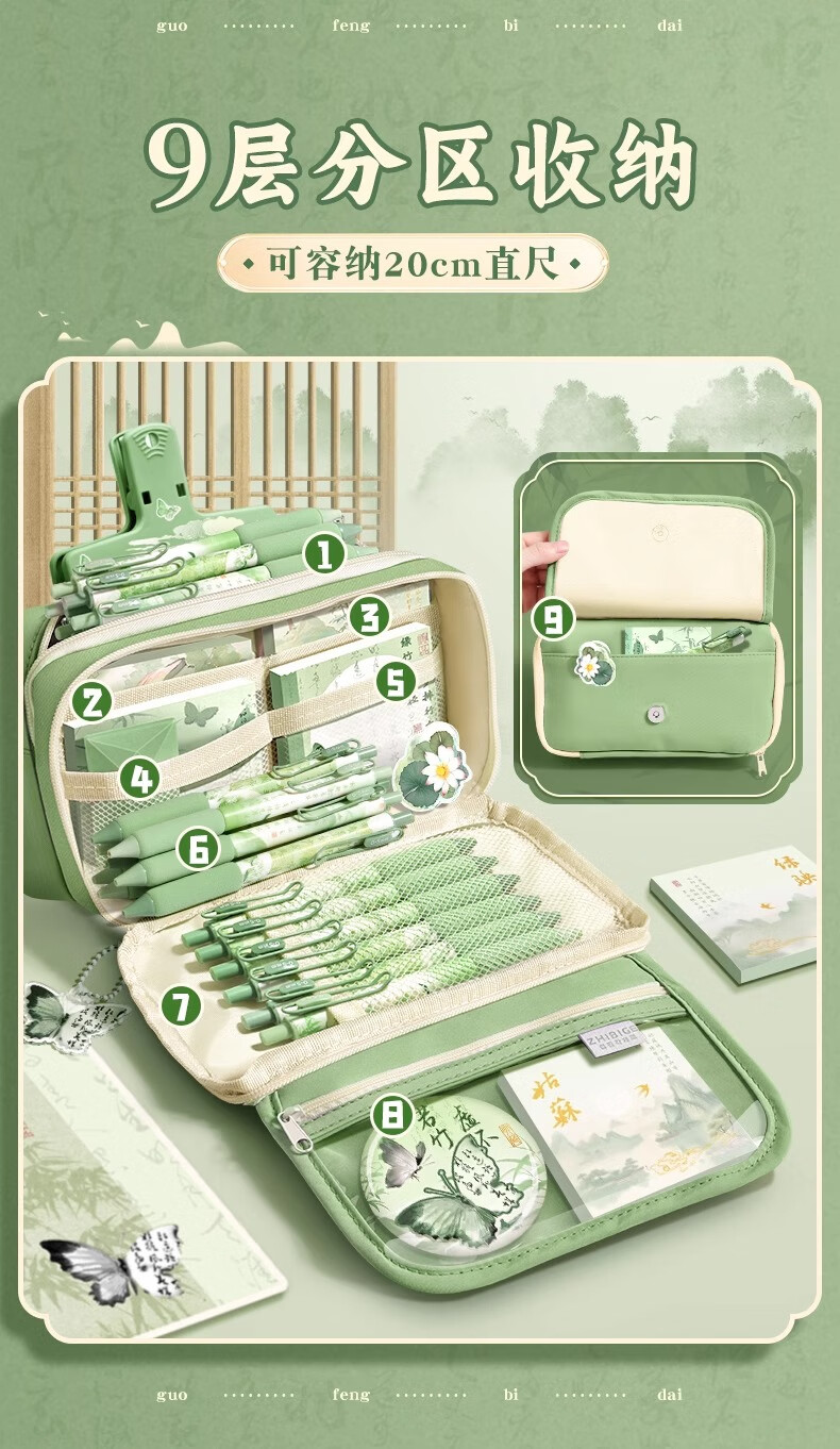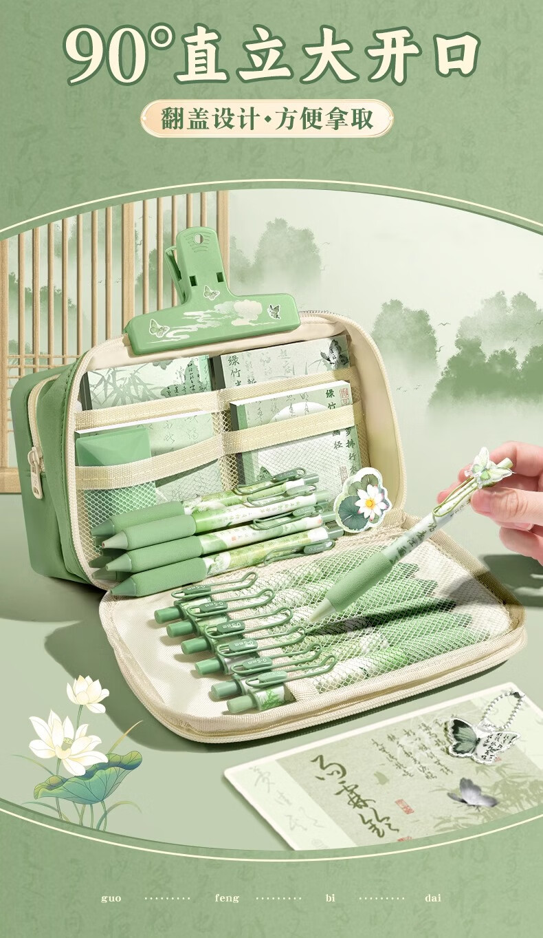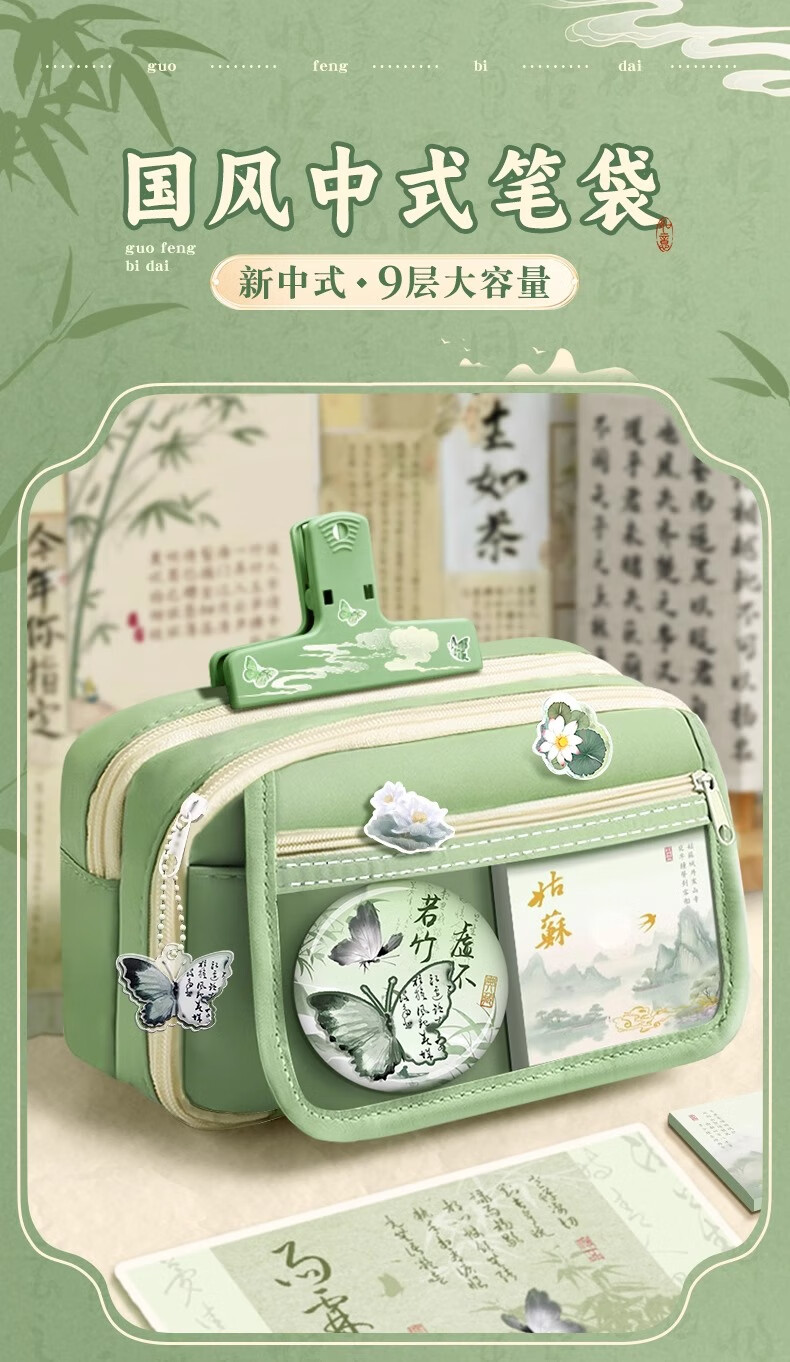 舒星国风笔袋高颜值大容量女生文具袋套装新款文具盒女孩款透明铅笔盒小学生女款古风新中式复古铅笔袋男孩款