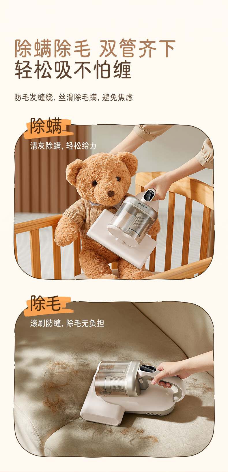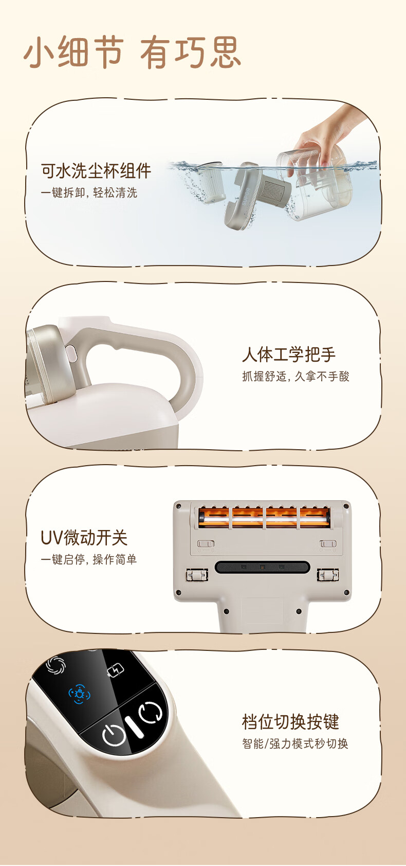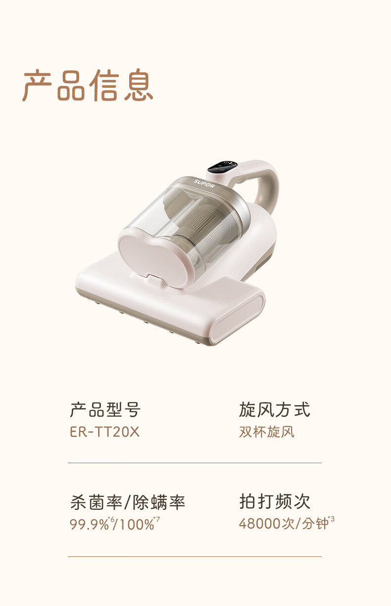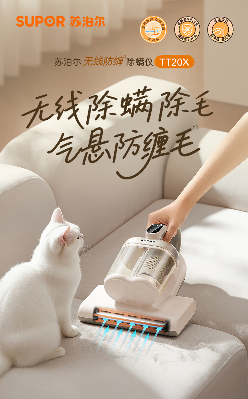 苏泊尔(SUPOR)无线除螨仪床宝大吸力双杯尘螨分离家用床上除螨吸尘器紫外线杀菌车载吸尘器便携除螨一体机TT20X