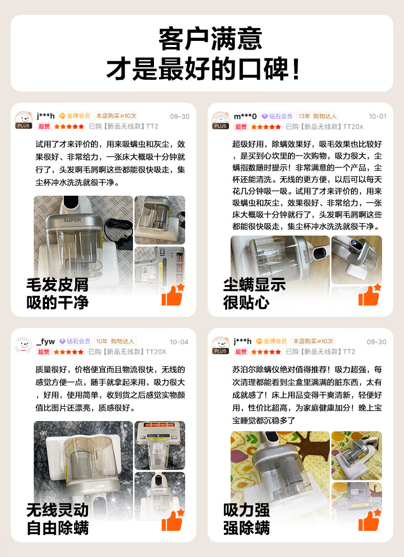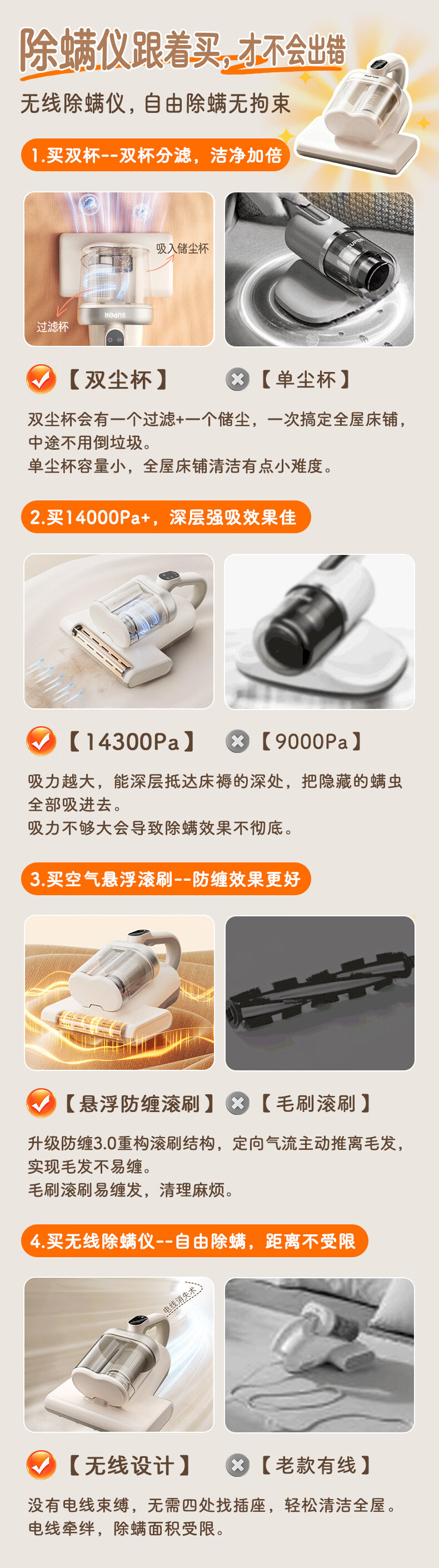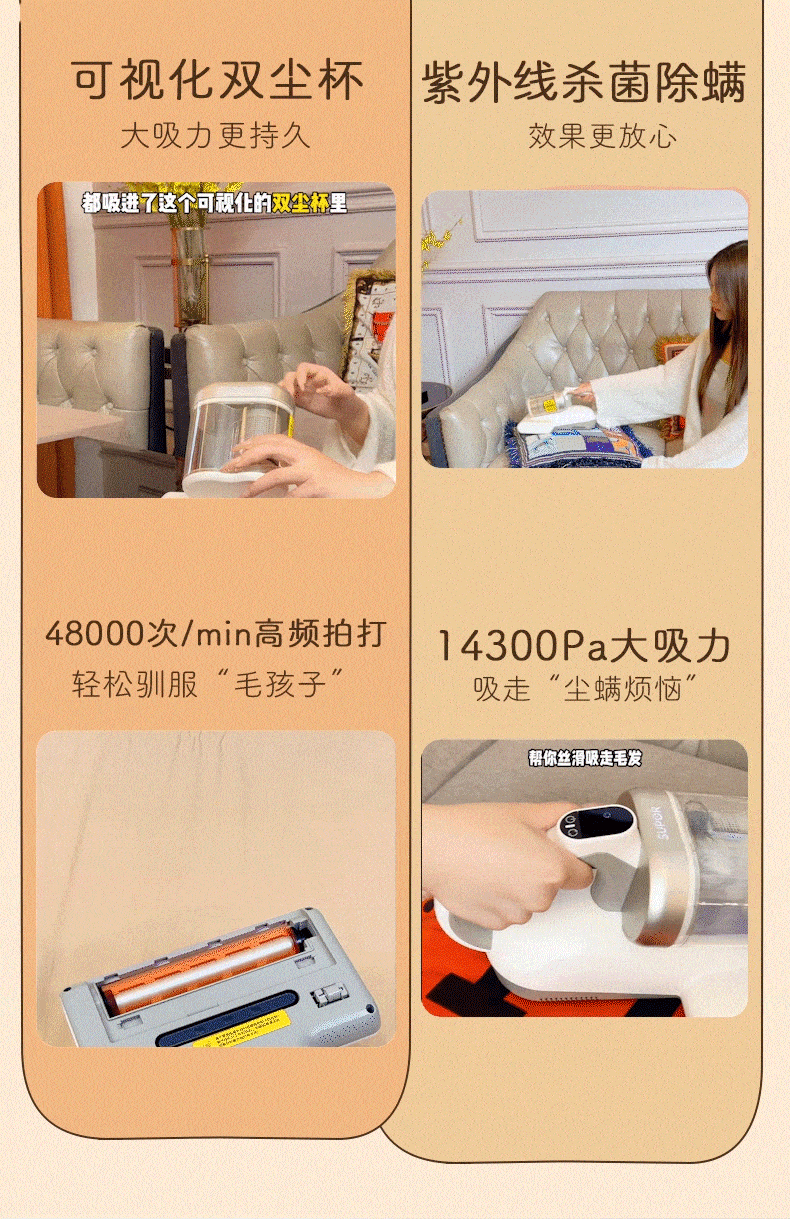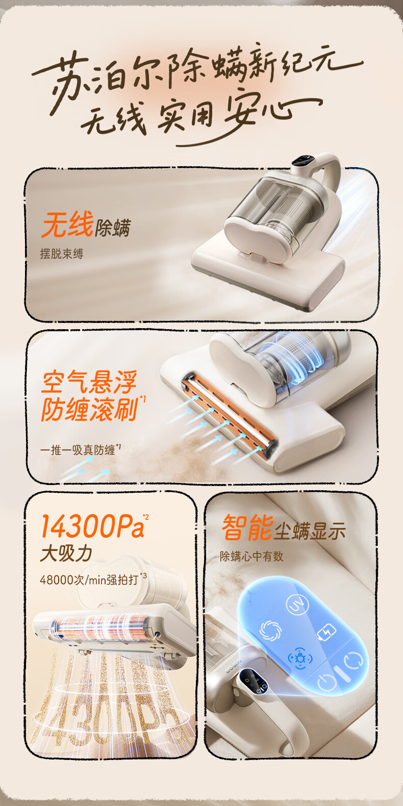 苏泊尔(SUPOR)无线除螨仪床宝大吸力双杯尘螨分离家用床上除螨吸尘器紫外线杀菌车载吸尘器便携除螨一体机TT20X