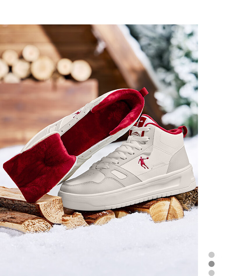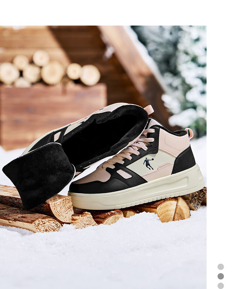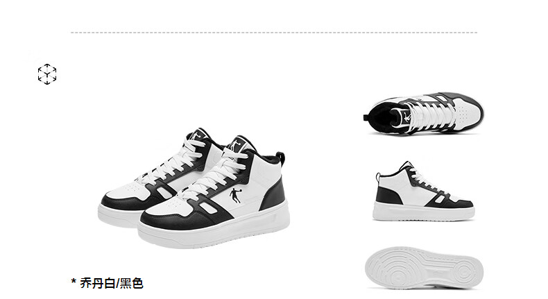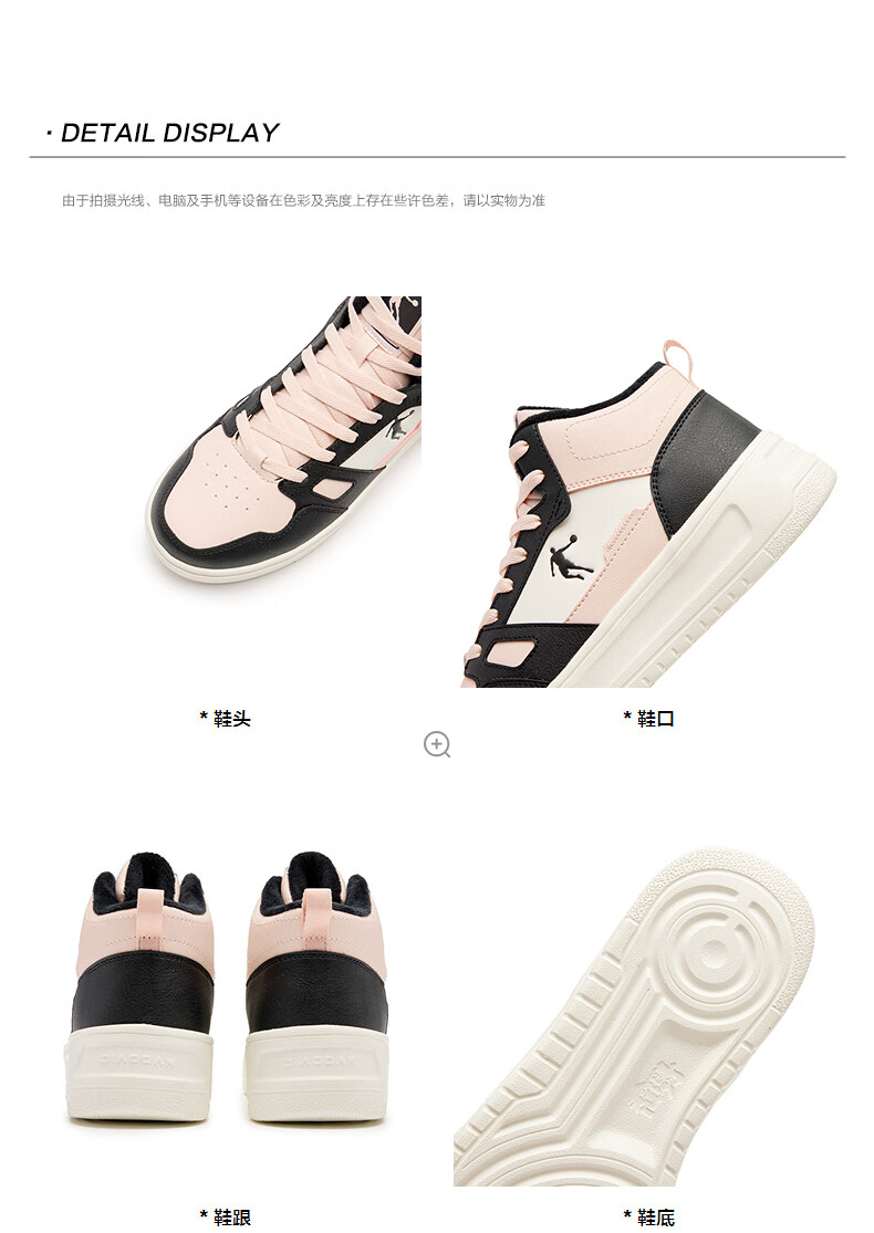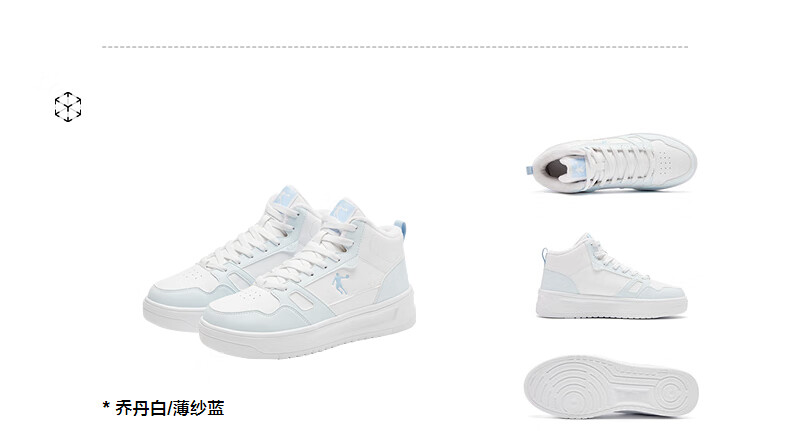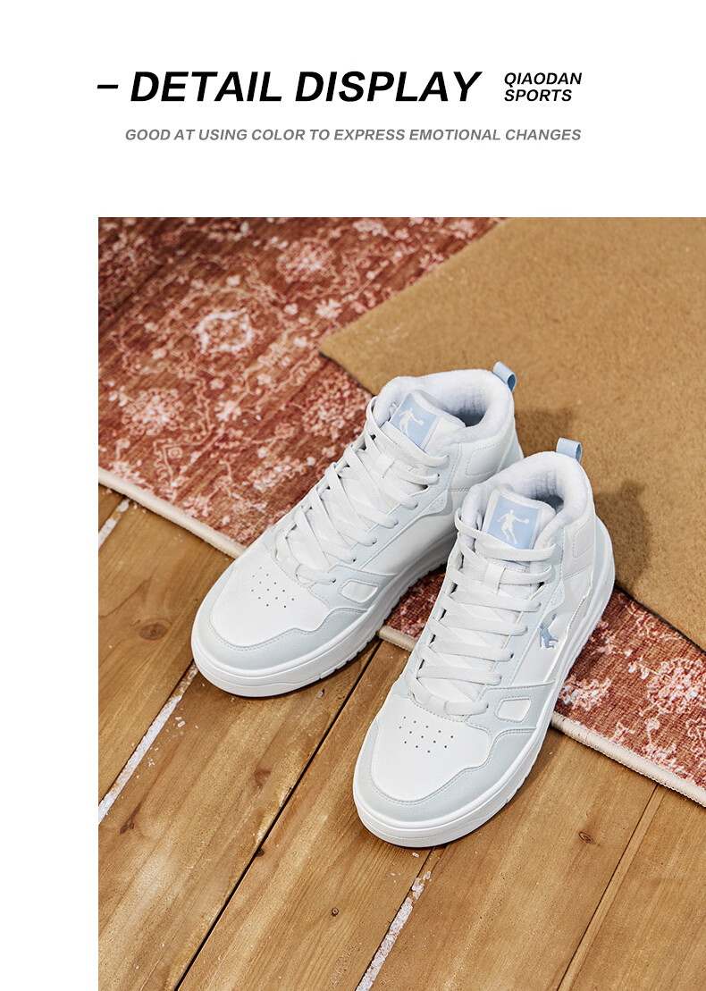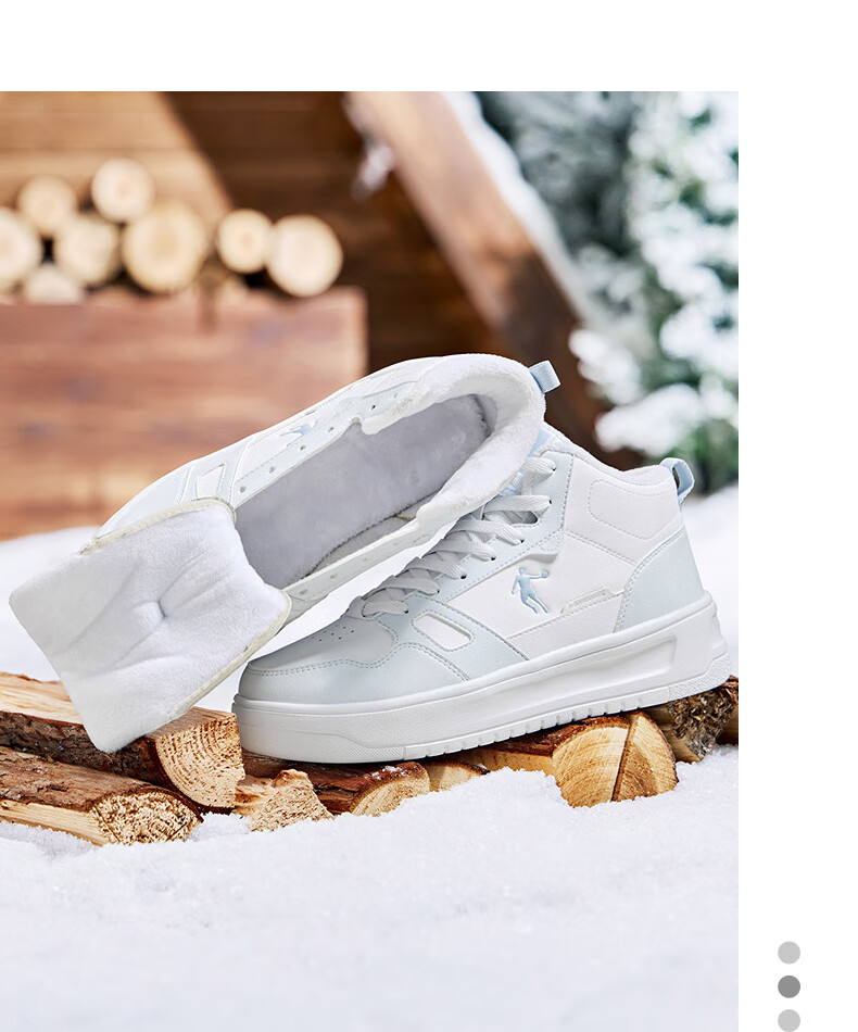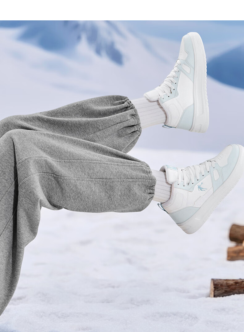 乔丹小白龙高帮加绒保暖棉鞋女板鞋冬季皮面休闲鞋革面防风跑鞋运动鞋 乔丹白/薄纱蓝 35.5