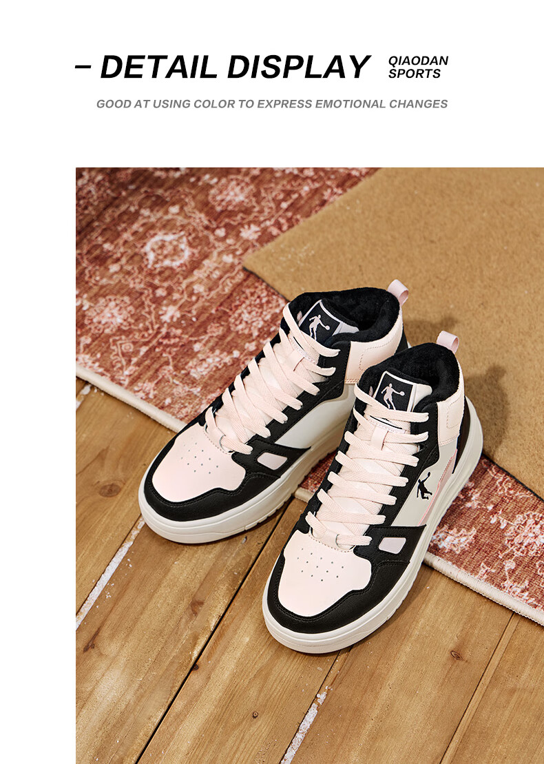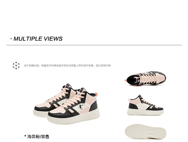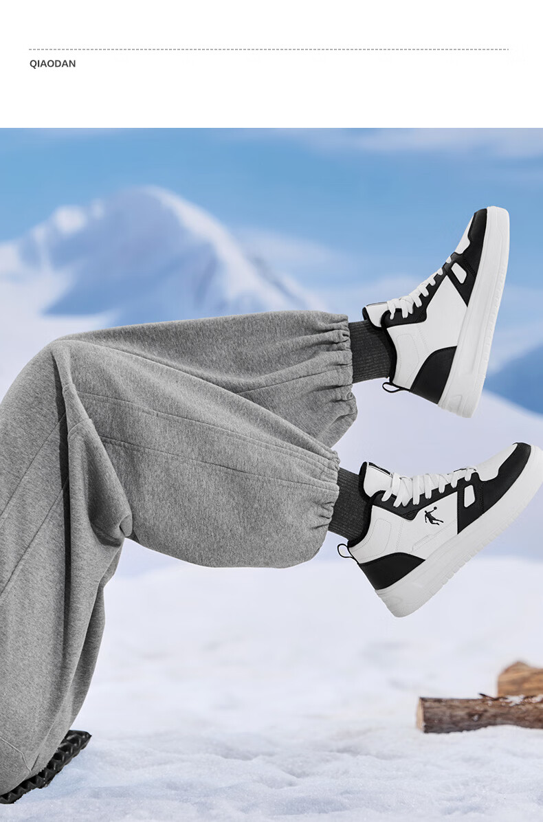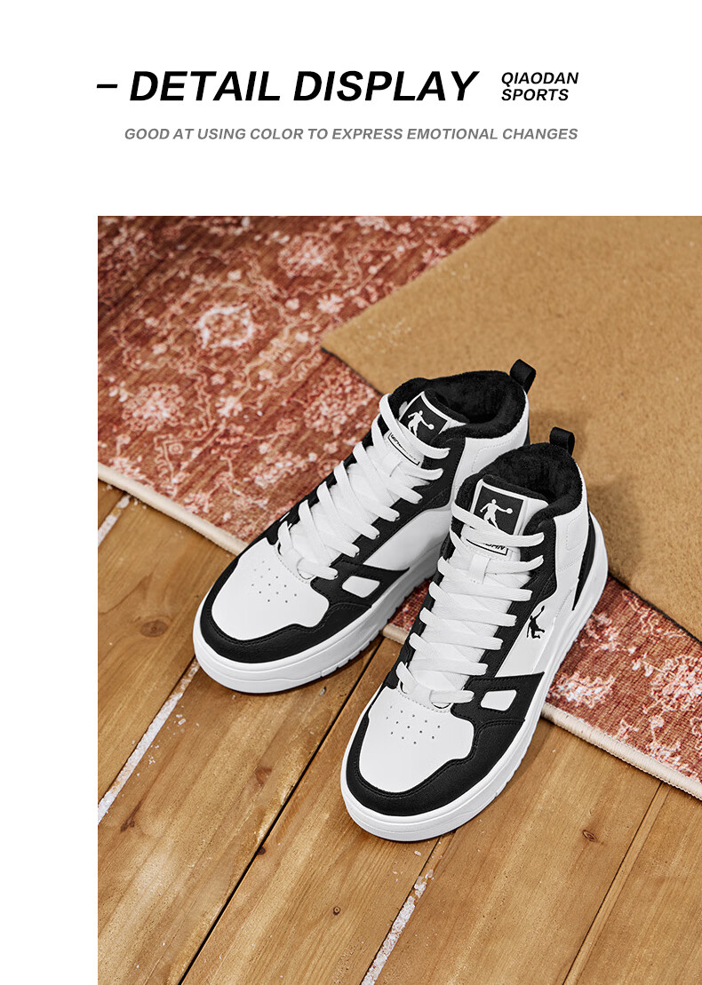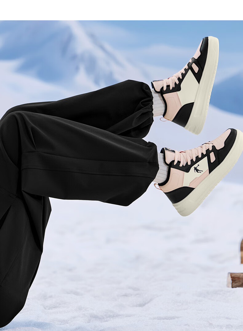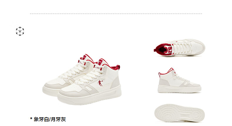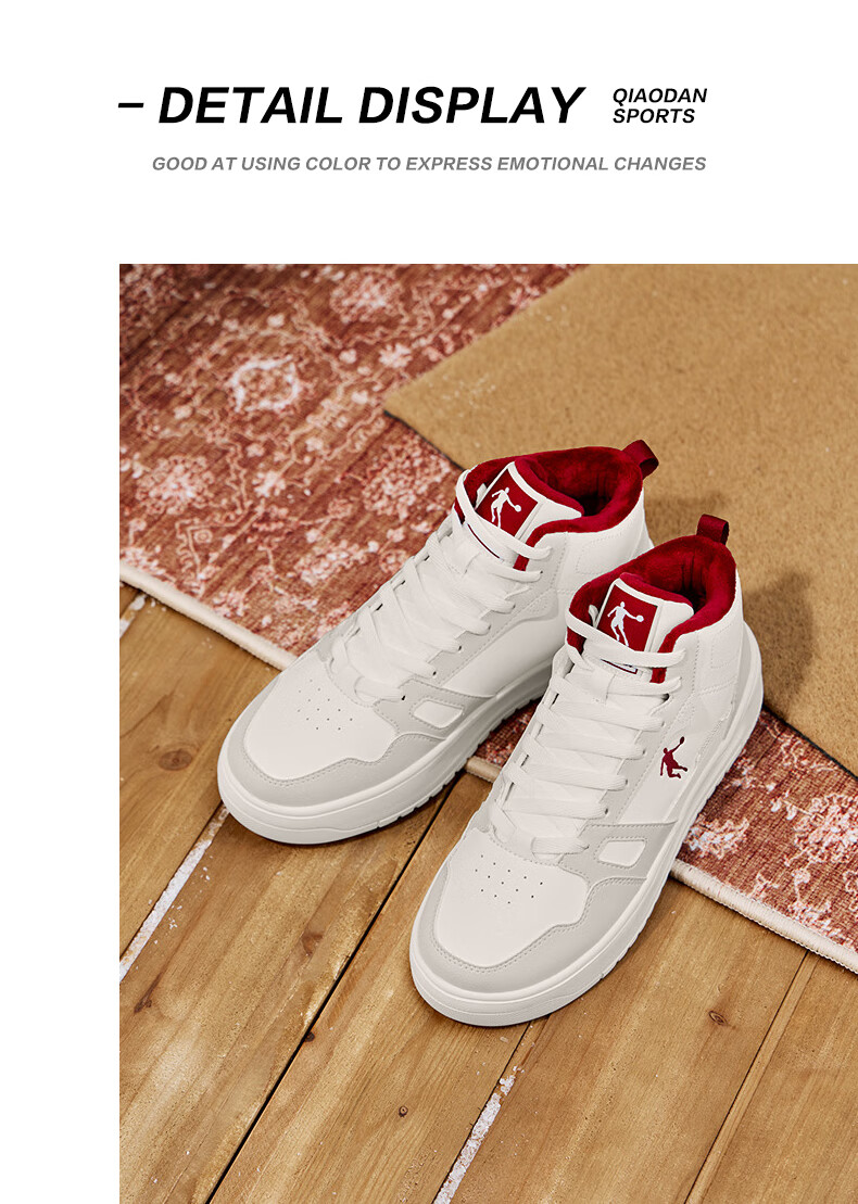 乔丹小白龙高帮加绒保暖棉鞋女板鞋冬季皮面休闲鞋革面防风跑鞋运动鞋 乔丹白/薄纱蓝 35.5