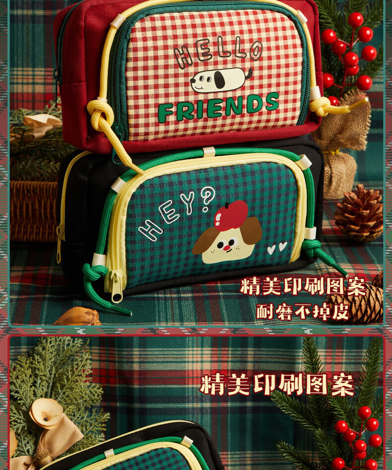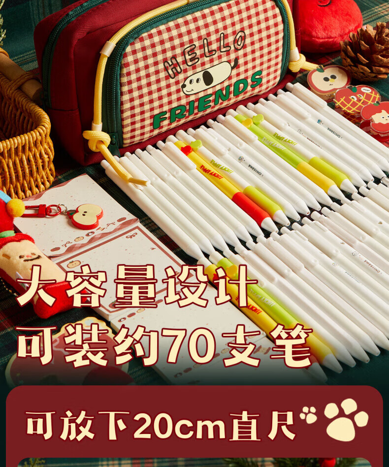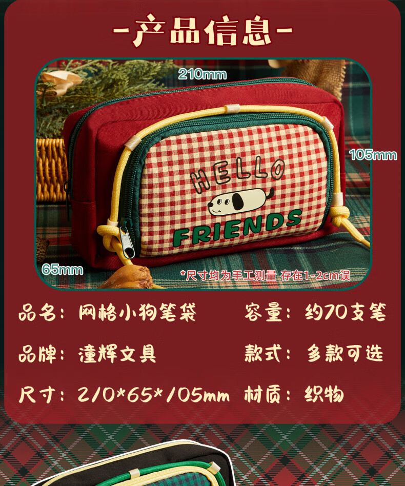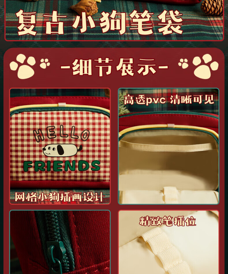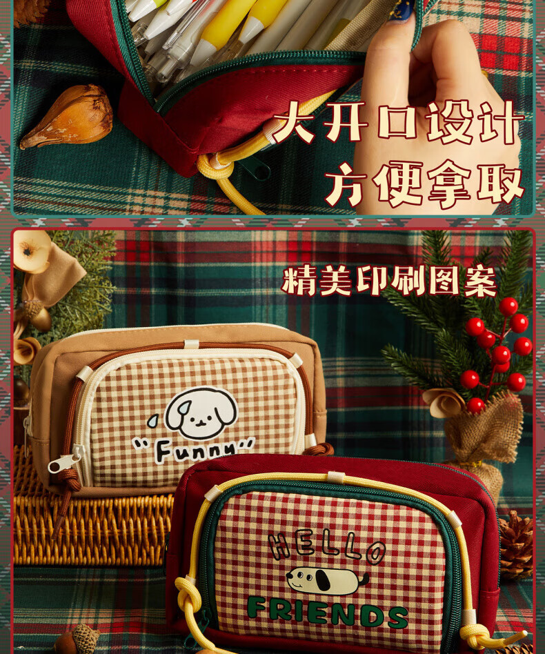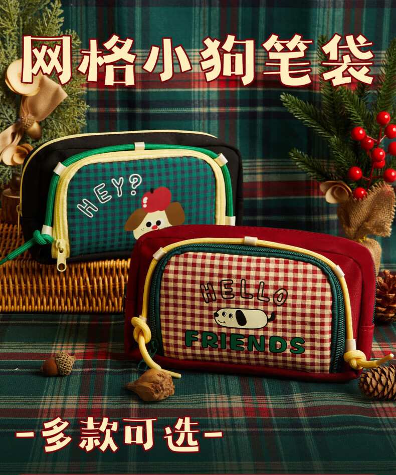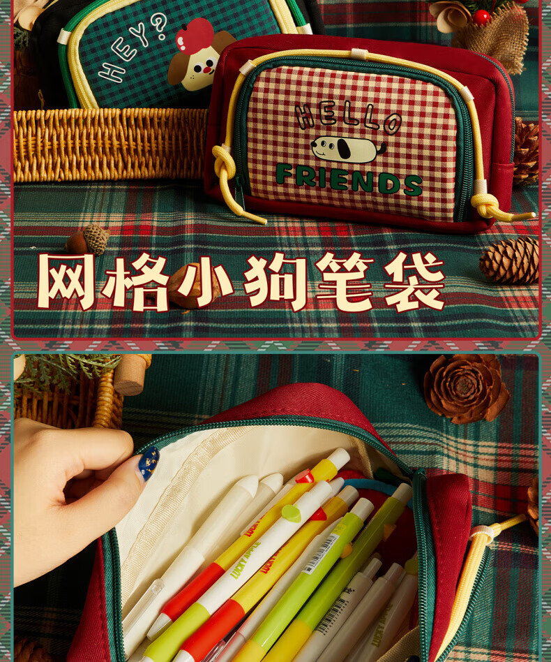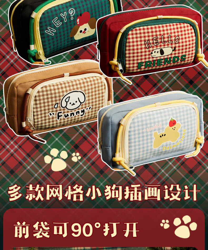 DEATKN日本网格小狗笔袋ins风2025新款高颜值覆古文具盒大容量学生小众简约铅笔盒女孩可爱小学生多功能 腊肠小狗