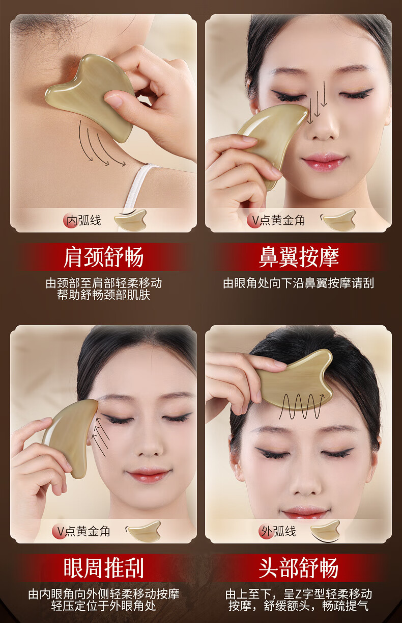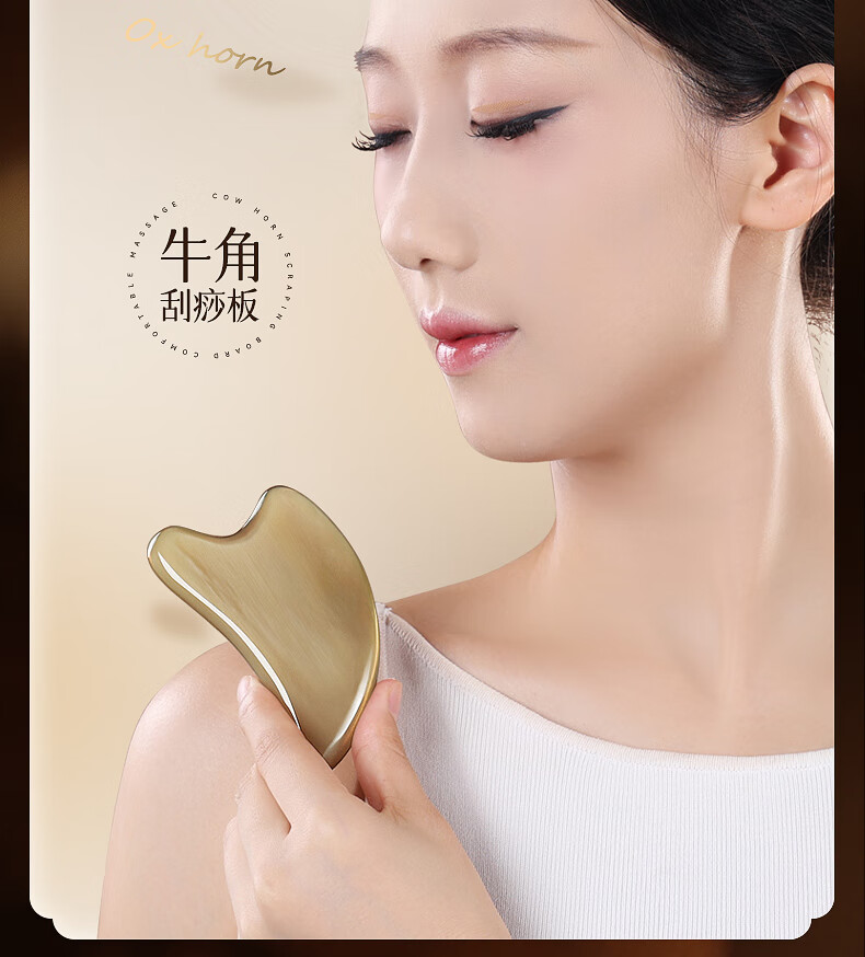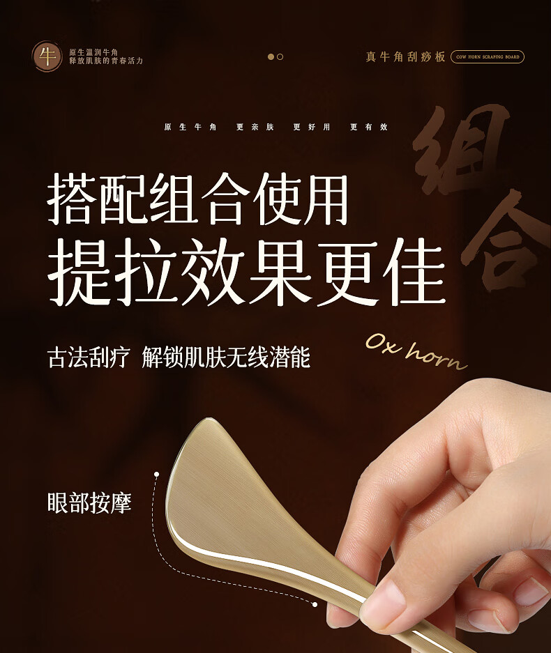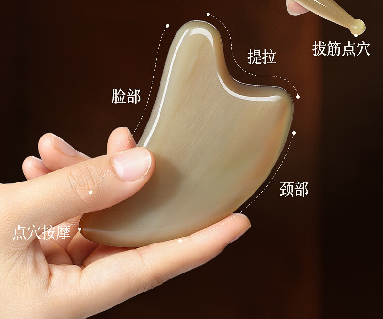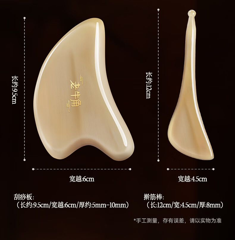 AILUKI日本白水牛角刮痧板面部美容脸部专用眼部提拉拨筋棒全身通用按摩 板【厚5mm】+棒【厚8mm】