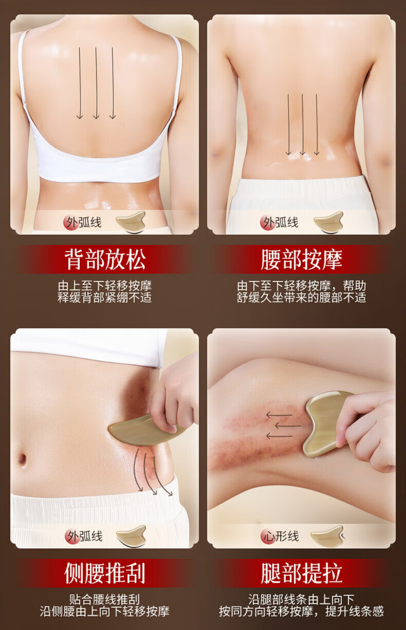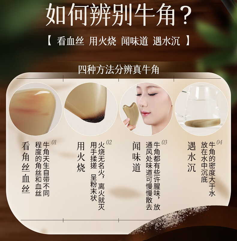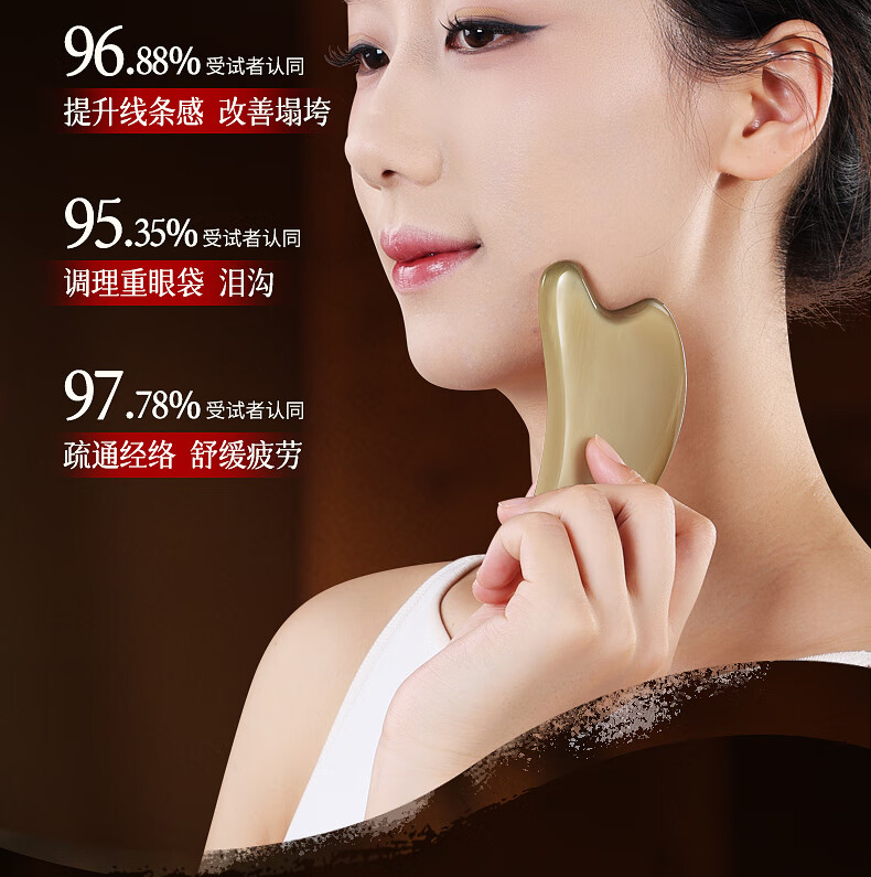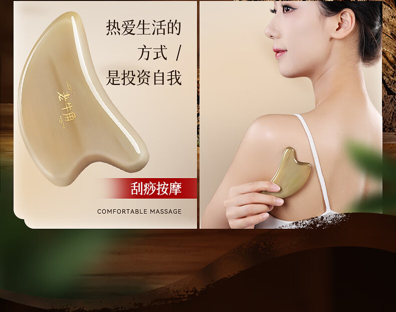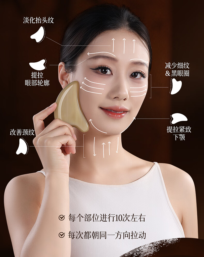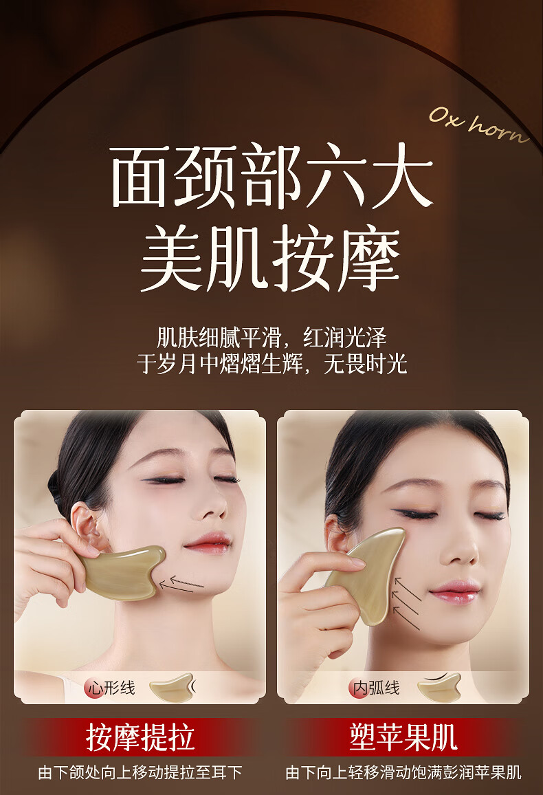 AILUKI日本白水牛角刮痧板面部美容脸部专用眼部提拉拨筋棒全身通用按摩 板【厚5mm】+棒【厚8mm】