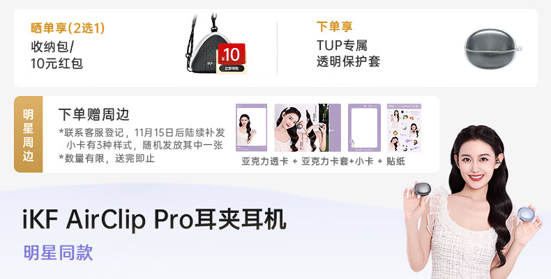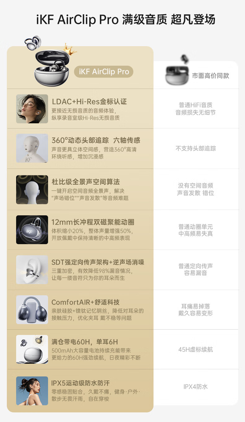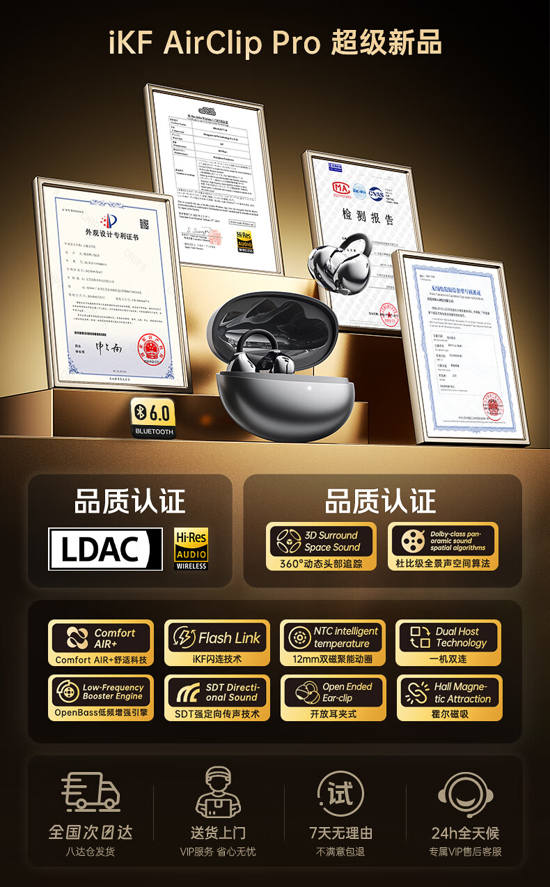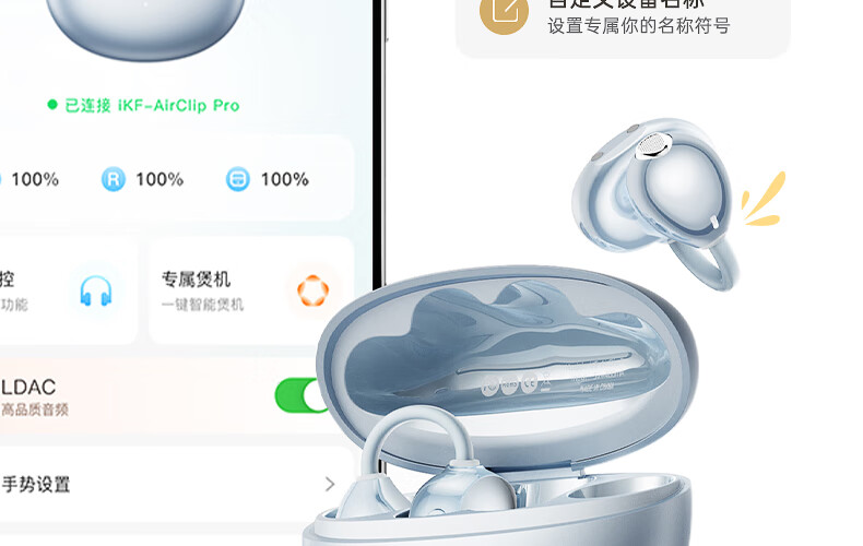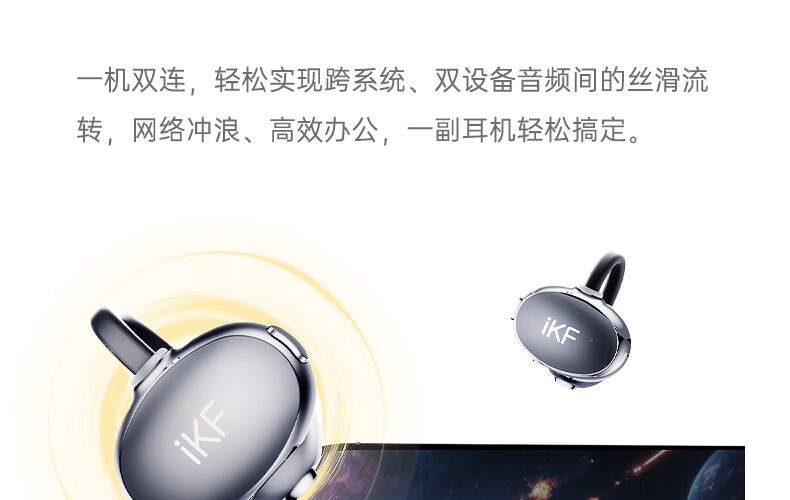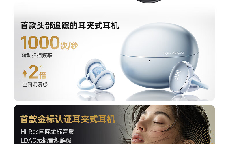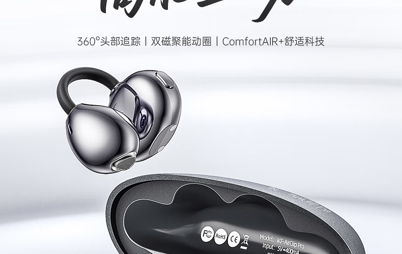 iKF AirClip Pro 【蒋依依同款】蓝牙耳机耳夹式无线开放式骨气传导耳机适用于华为小米苹果 星际黑