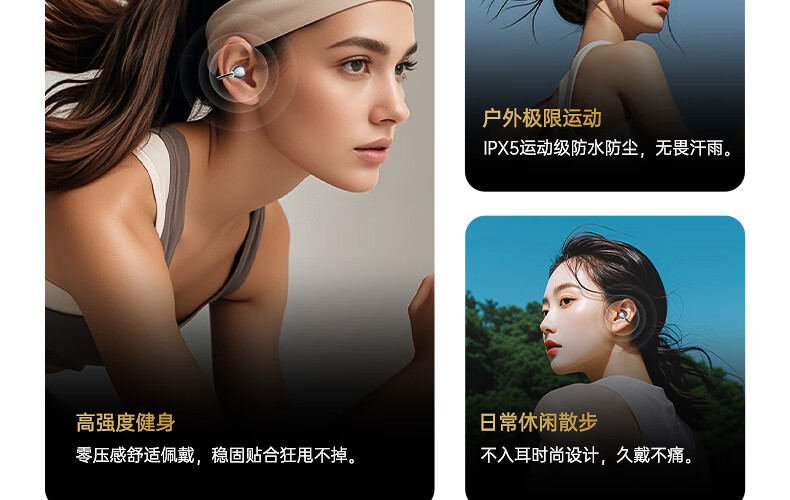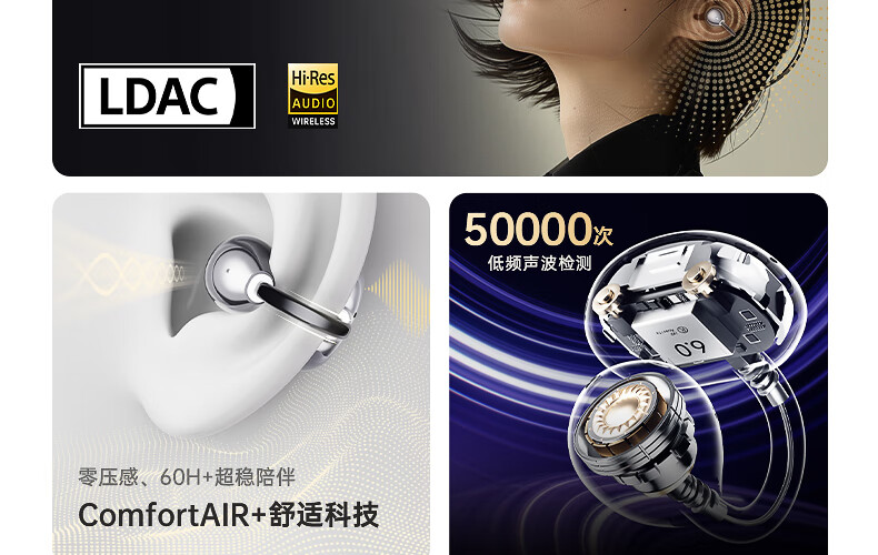 Linklike【100%好评丨60H超长续航】蓝牙耳机耳夹式音乐榜前十无线运动耳机跑步不伤耳朵 60H超长续航丨云感佩戴 千元级配置+苹果华为安卓通用
