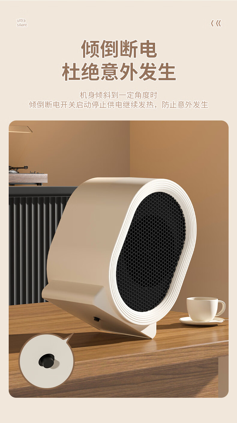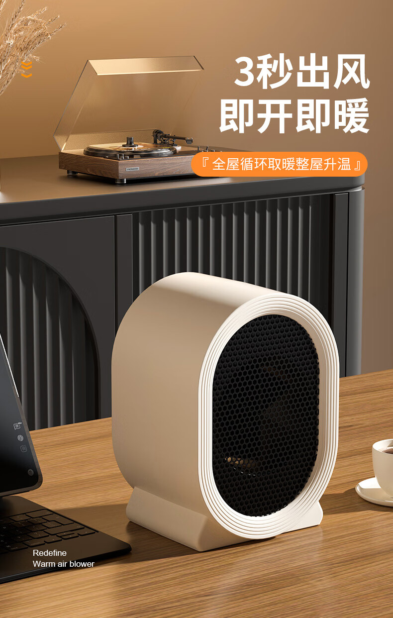 OUIO取暖器家用暖风机桌面电热取暖器小型节能速热电暖器小太阳卧室迷你办公室宿舍取暖器 【奶油白】暖风机