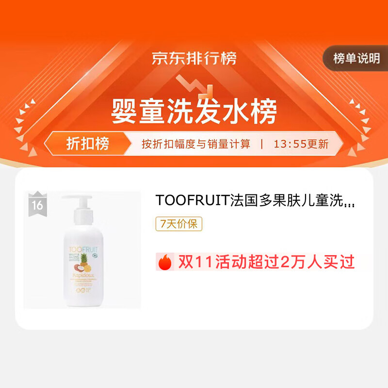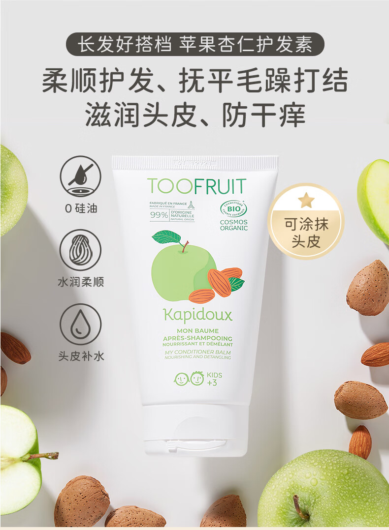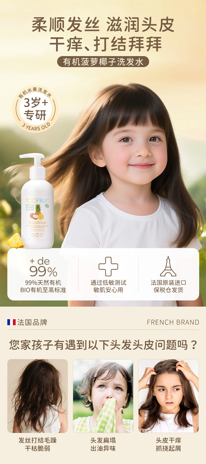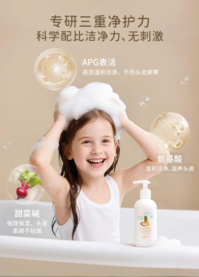 TOOFRUIT多果肤儿童青少年洗发水净屑止痒3-6-12岁200ml效期到26年2月 椰子菠萝味