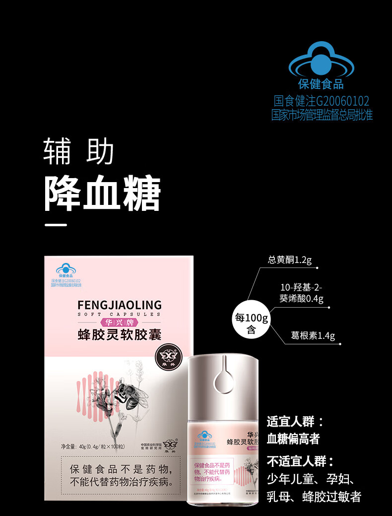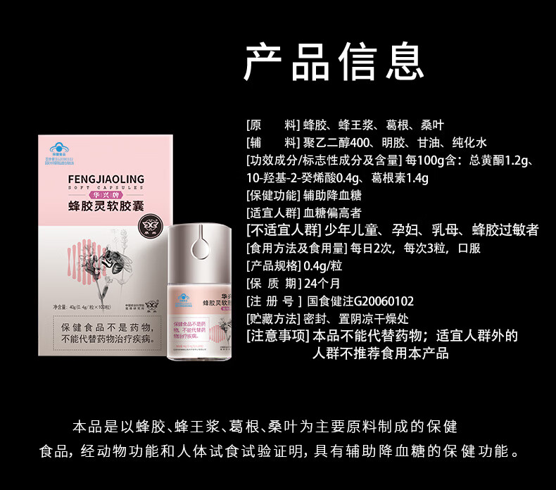 中蜜华兴中国农科院蜜蜂所蜂王浆葛根桑叶软胶囊100粒【辅助降血糖】