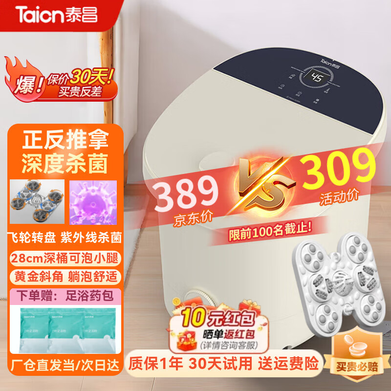 泰昌(Taicn)TC-908FL泡脚桶足浴盆加热恒温洗脚全自动电动按摩养生杀菌美足去角质防漏电送爸妈父母长辈礼物 TC-908FL丨倾斜躺泡丨紫外线杀菌丨冲浪按摩 电动正反推拿按摩 28cm深桶泡小腿