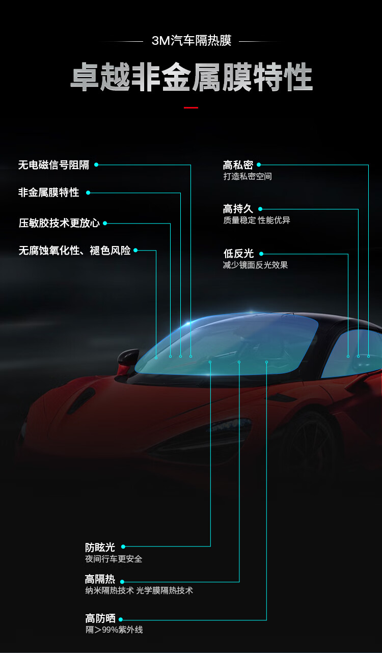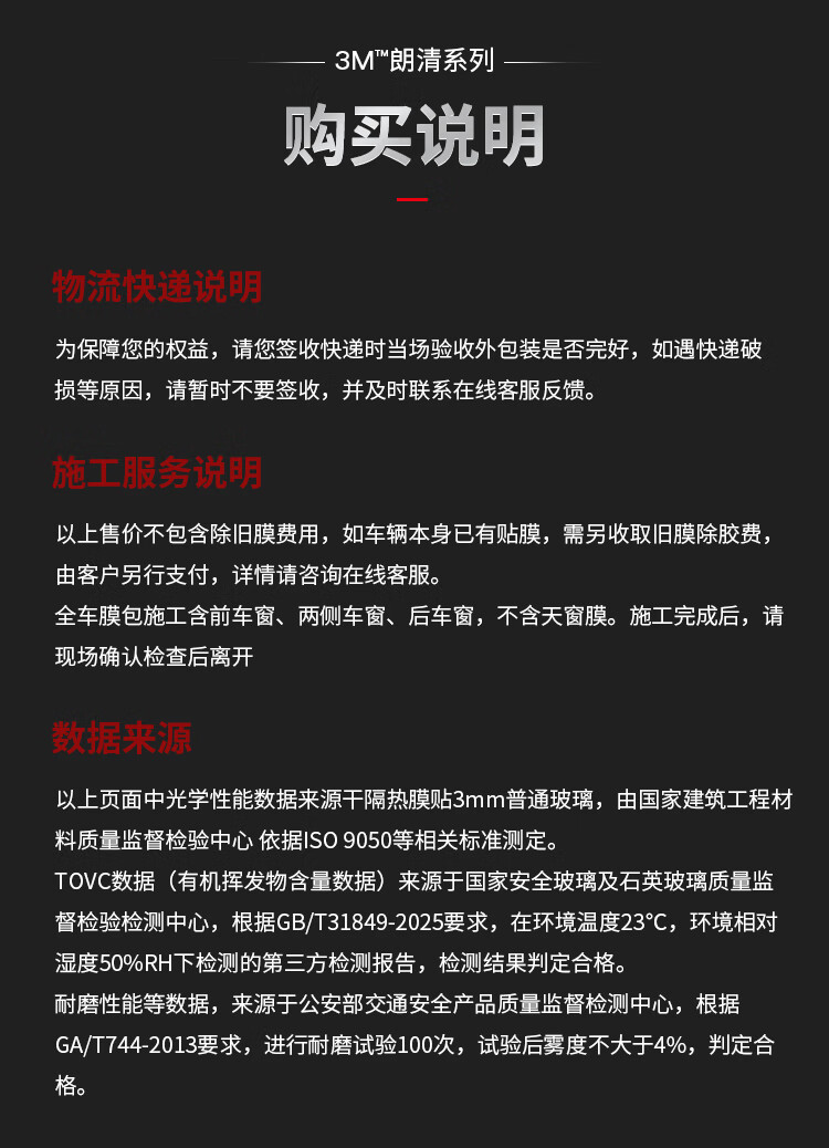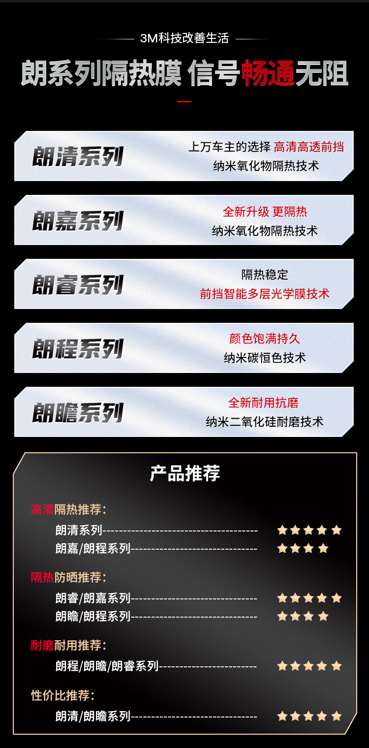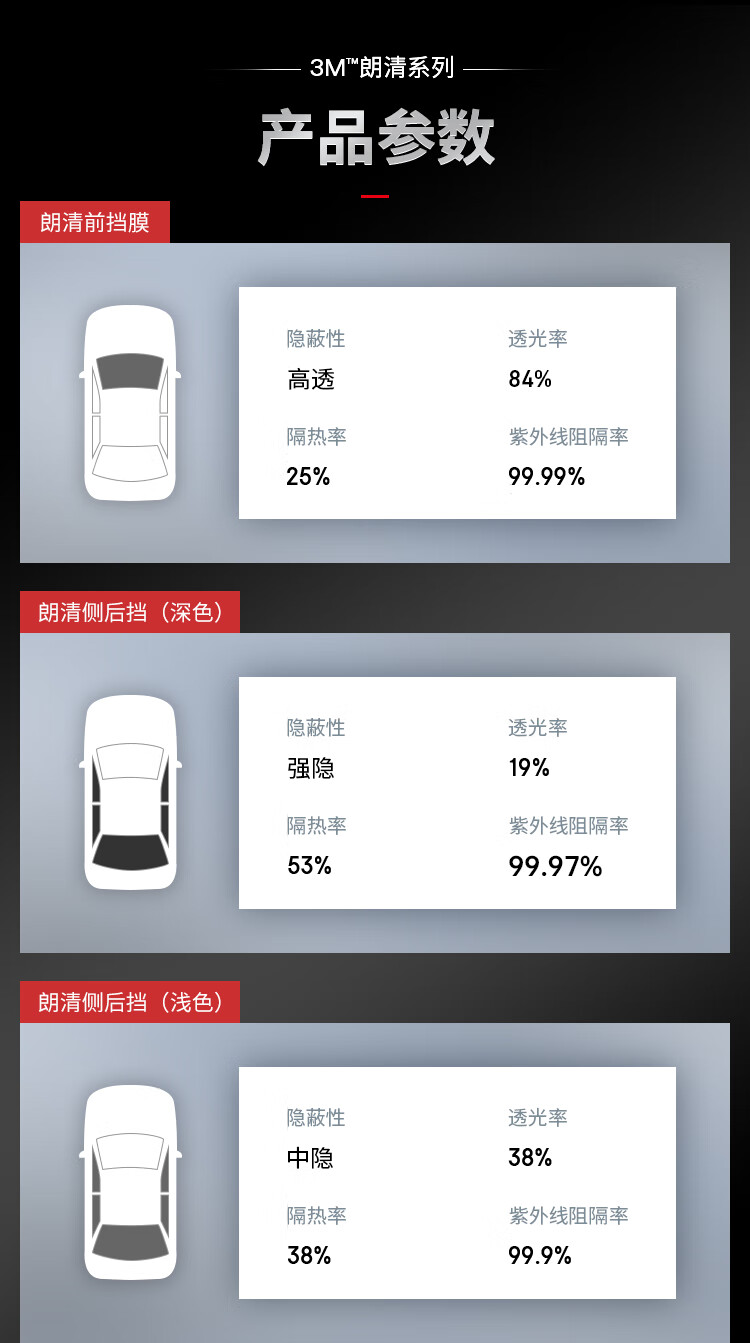 3M汽车贴膜 朗清系列 定制前浅后深 新能源 玻璃车膜太阳隔热窗膜 包施工 国际品牌