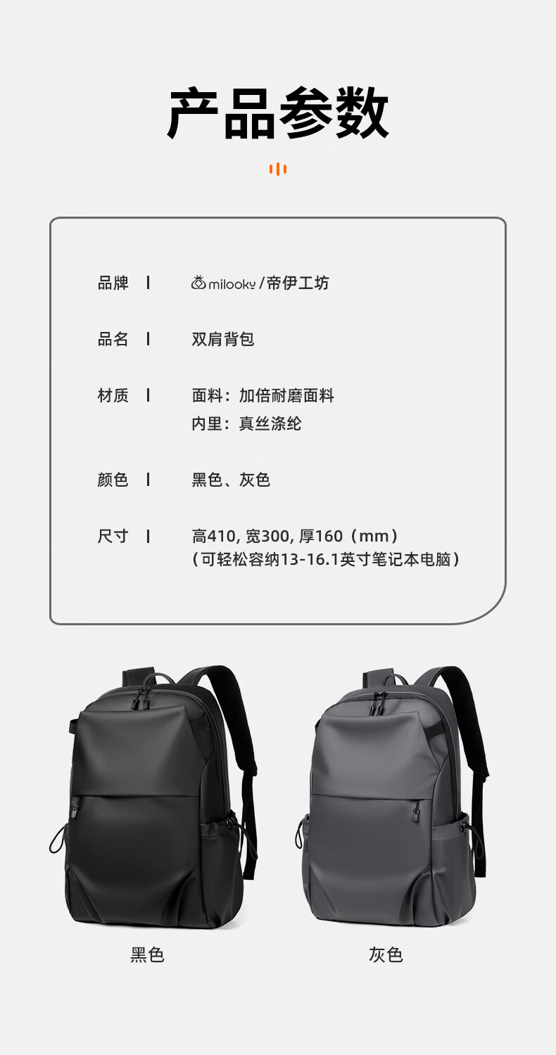 Milooky 笔记本电脑双肩包适用小新pro16联想拯救者R9000P/Y9000P背包