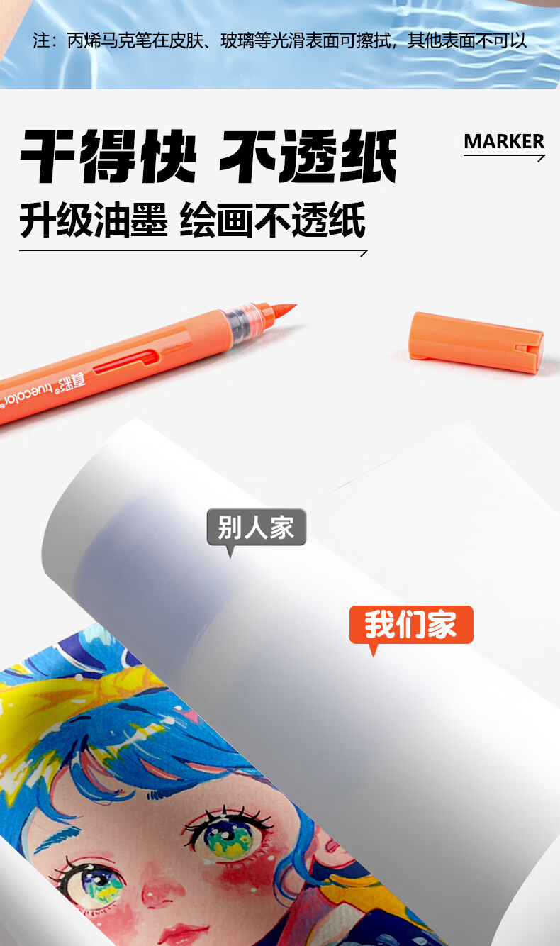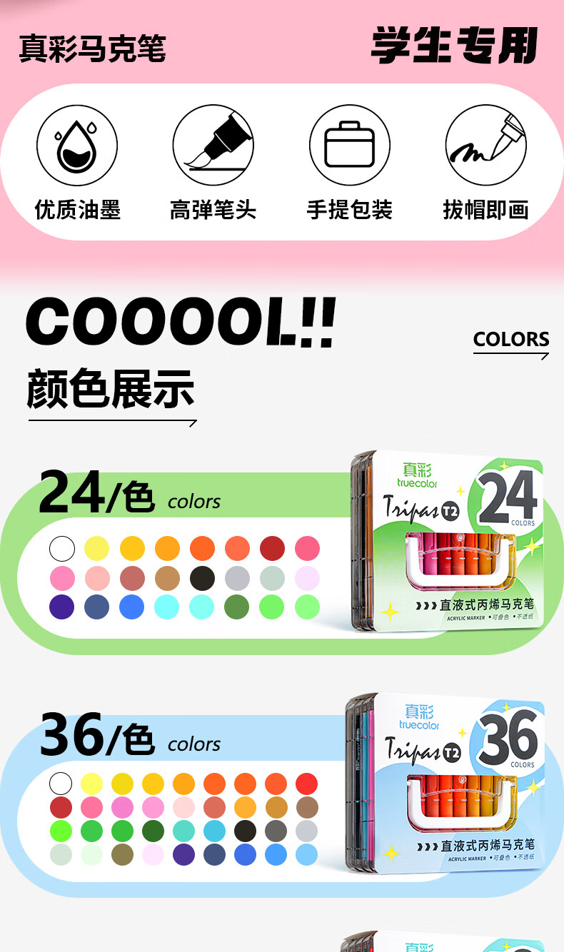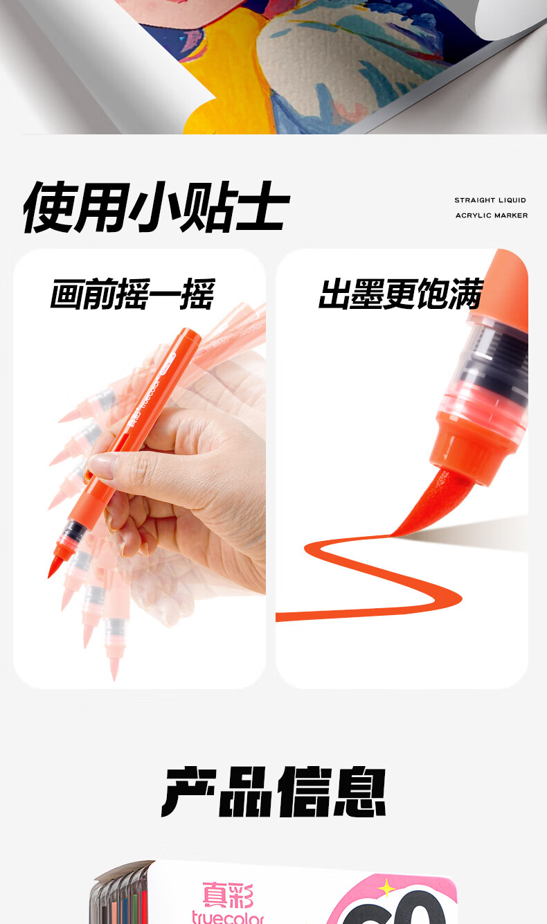 真彩(TRUECOLOR)60色直液式丙烯马克笔软头学生美术专用美术生不透色可叠色可水洗儿童小学生幼儿园水彩笔套装T2