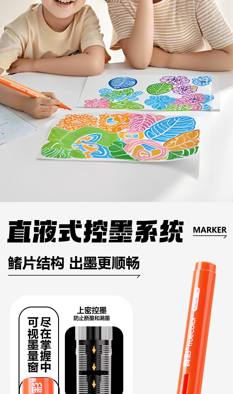 得力(deli)36色儿童学生圆杆丙烯马克笔桶装水彩笔生日礼物防水手绘荧光记号笔涂鸦HM353/HM331学生礼物