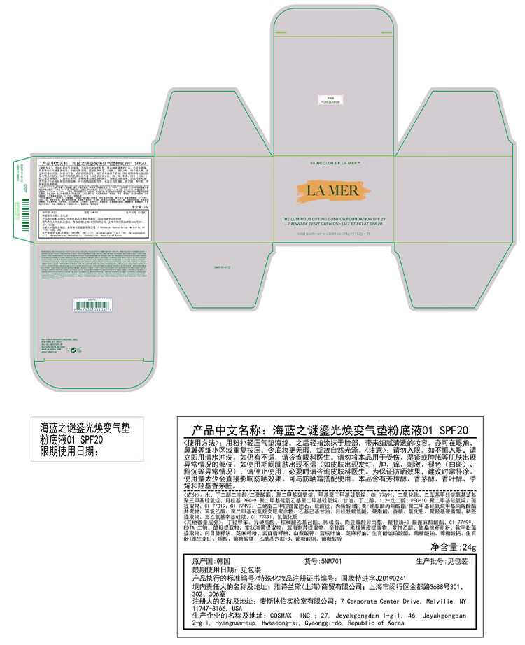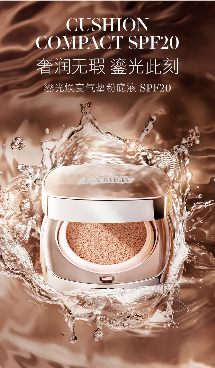 海蓝之谜(LA MER)鎏光焕变气垫粉底液一盒双芯12g*2#01粉瓷色SPF20化妆品生日礼物