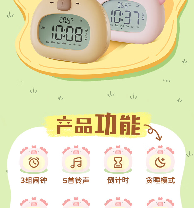 半点创意可爱智能小闹钟学生起床专用神器儿童男孩女孩卡通桌面电子时钟计时器