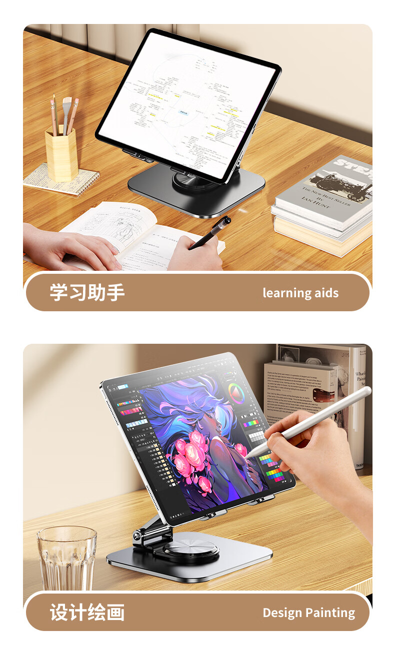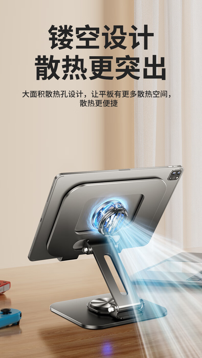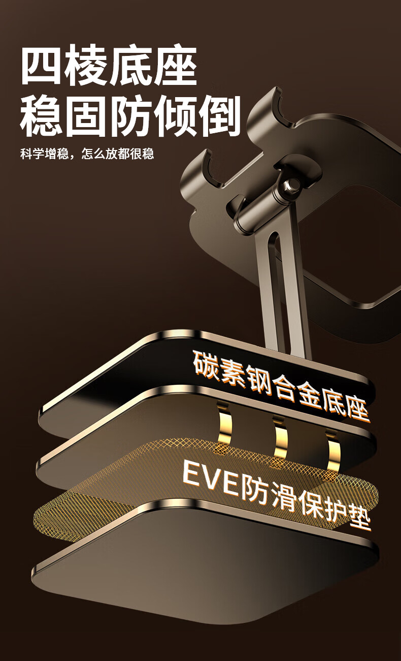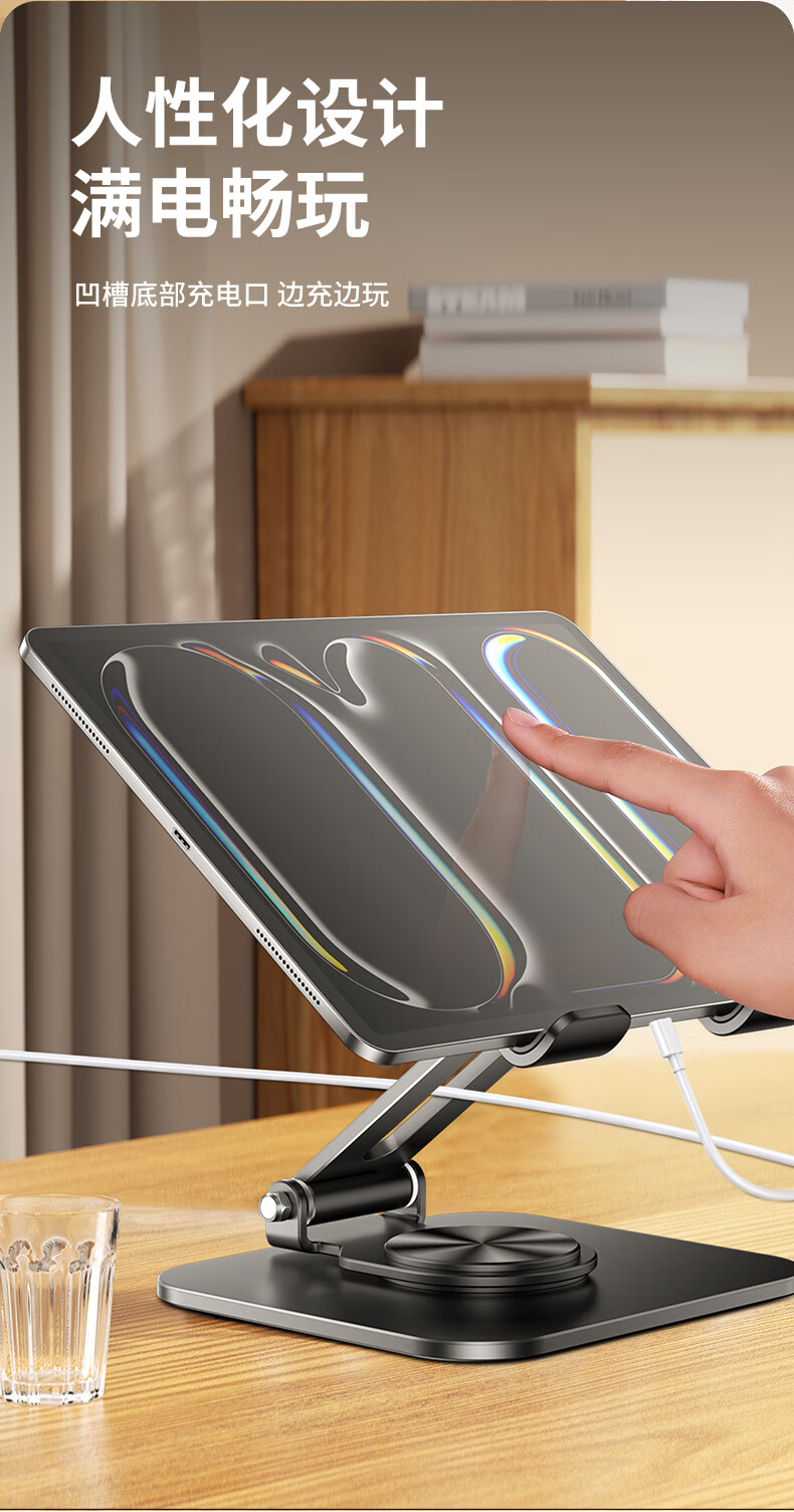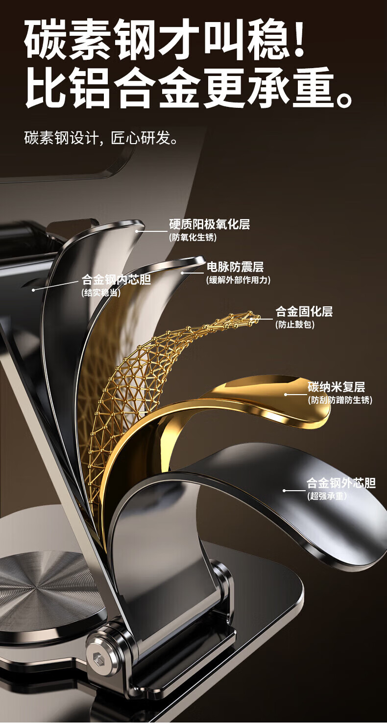 硕图平板支架ipad手机懒人支架360°可旋转折叠游戏直播多功能支撑架吃鸡绘画追剧适用苹果安卓 【曜石黑】全碳素钢丨可升降折叠
