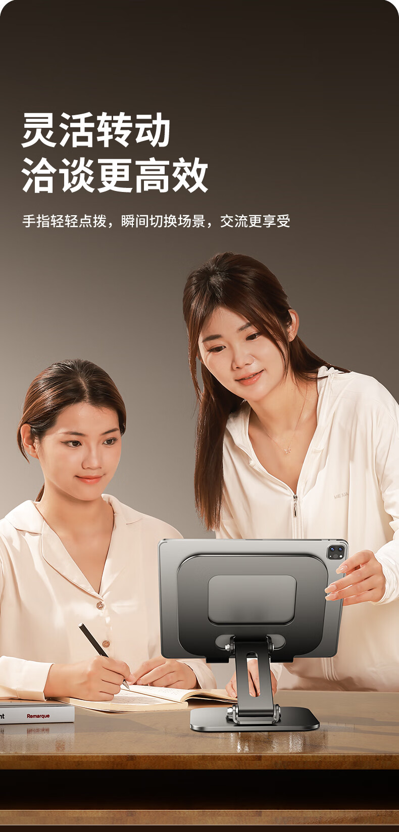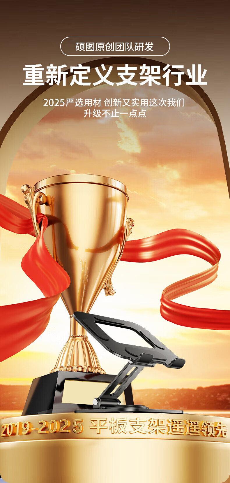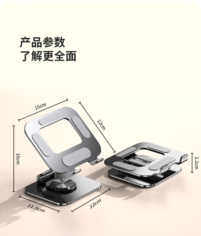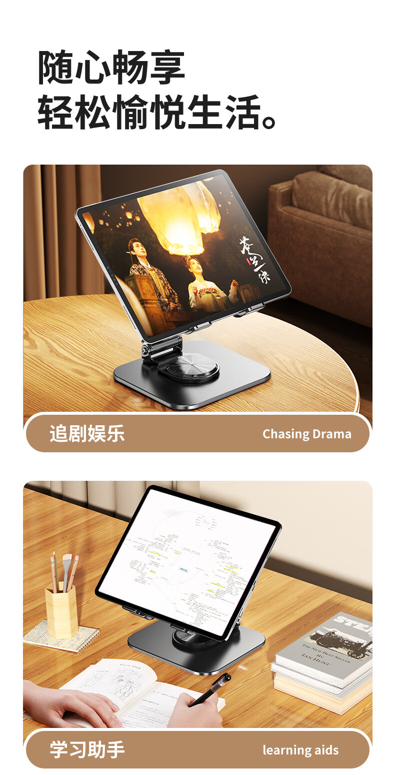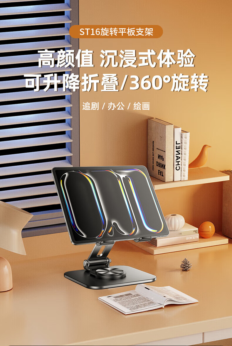 硕图平板支架ipad手机懒人支架360°可旋转折叠游戏直播多功能支撑架吃鸡绘画追剧适用苹果安卓 【曜石黑】全碳素钢丨可升降折叠