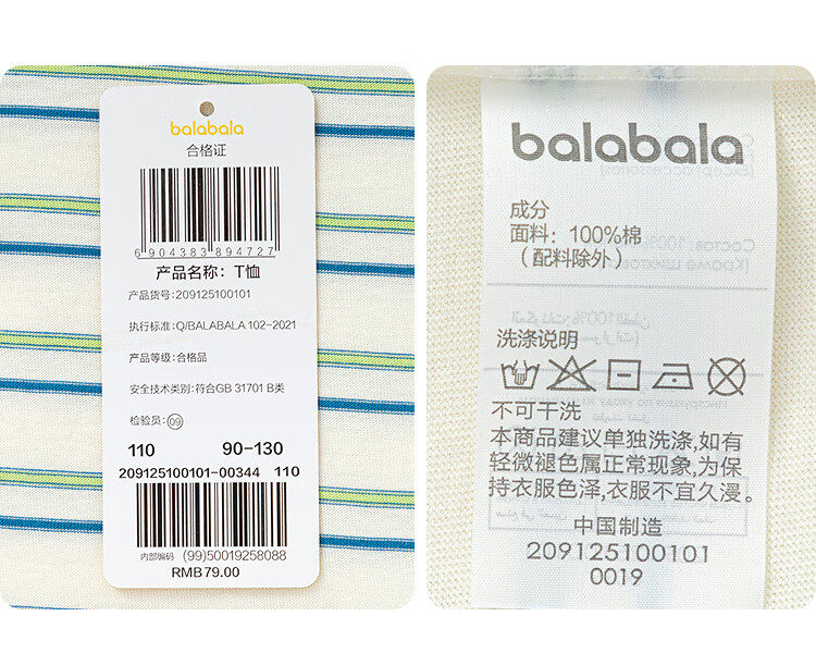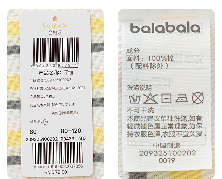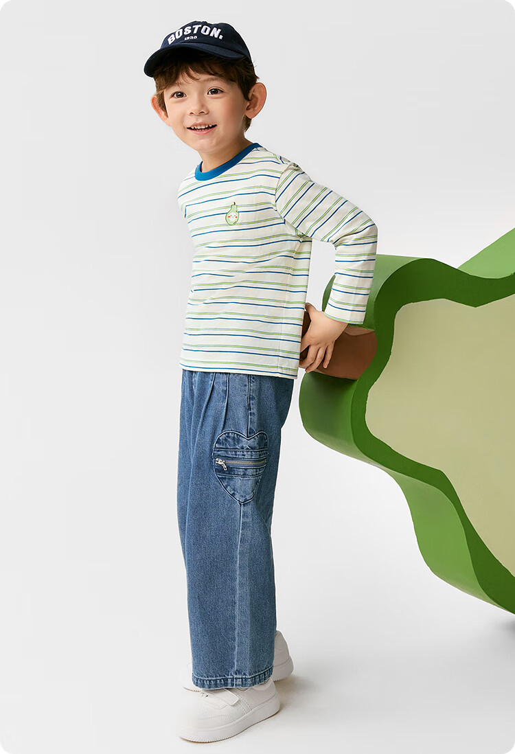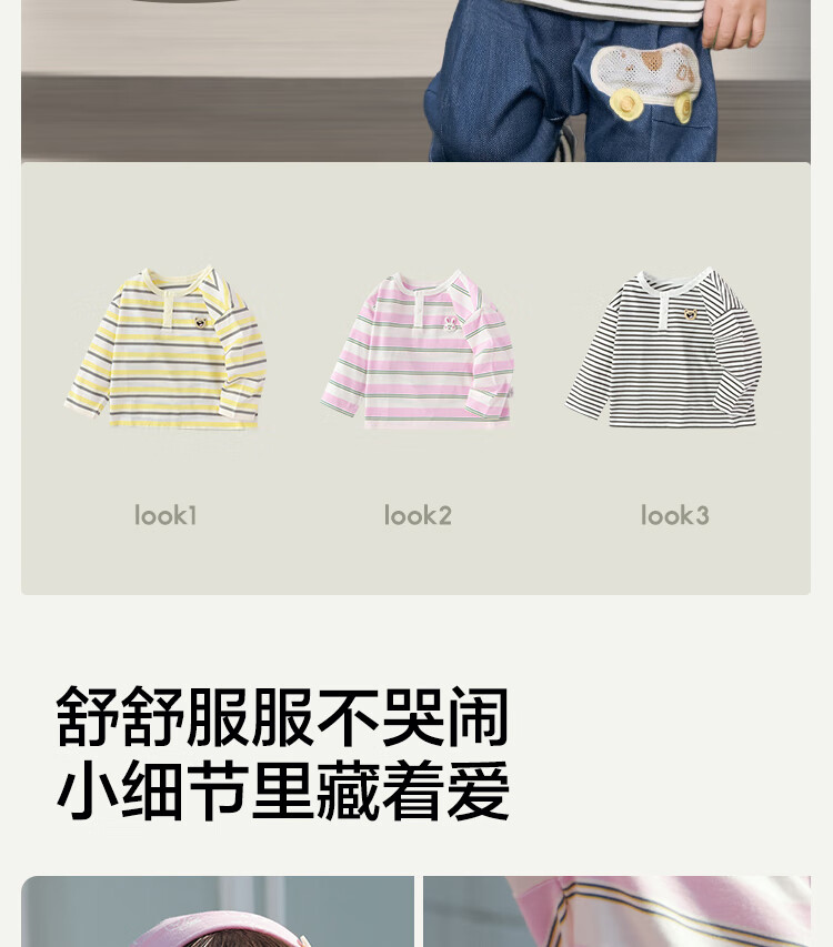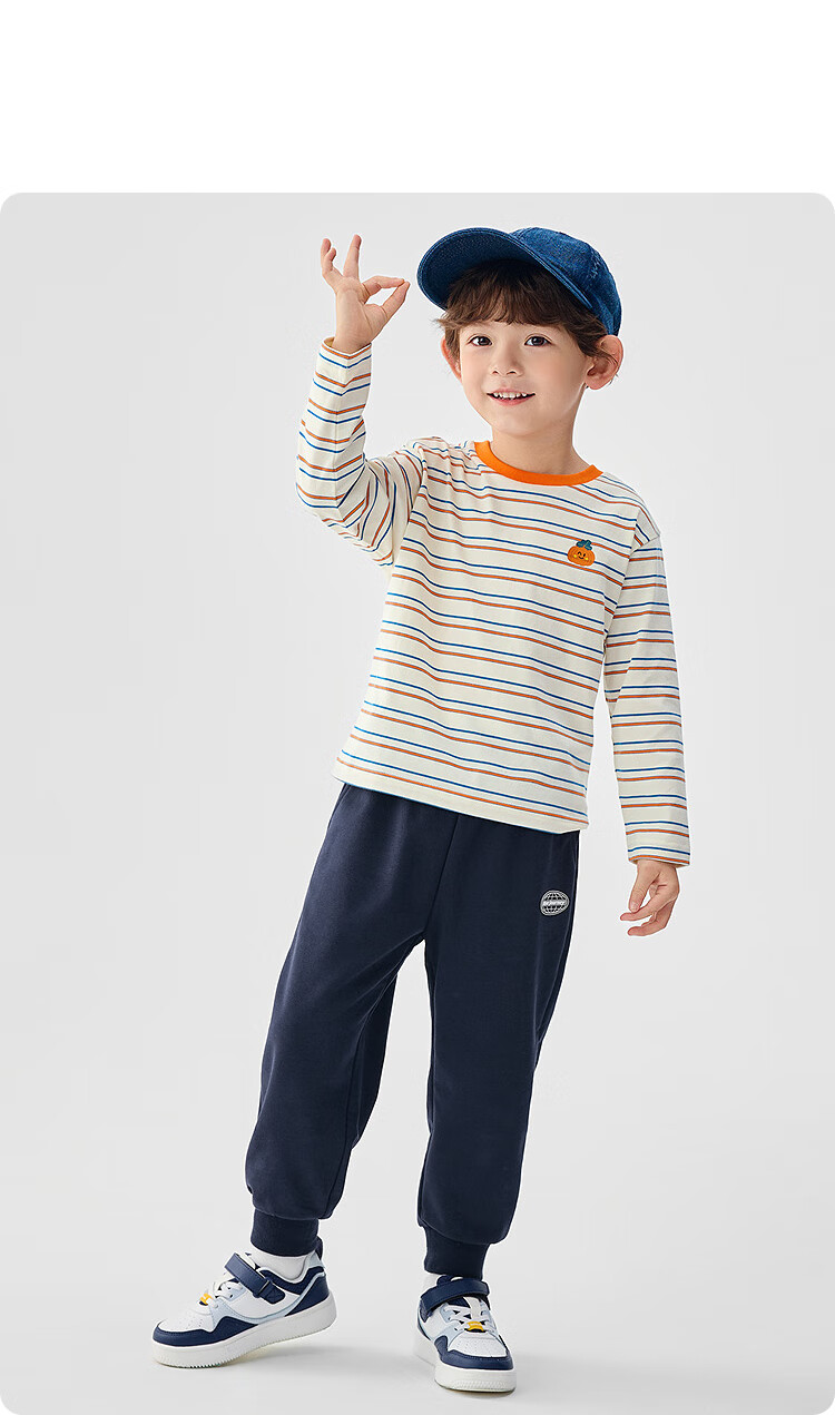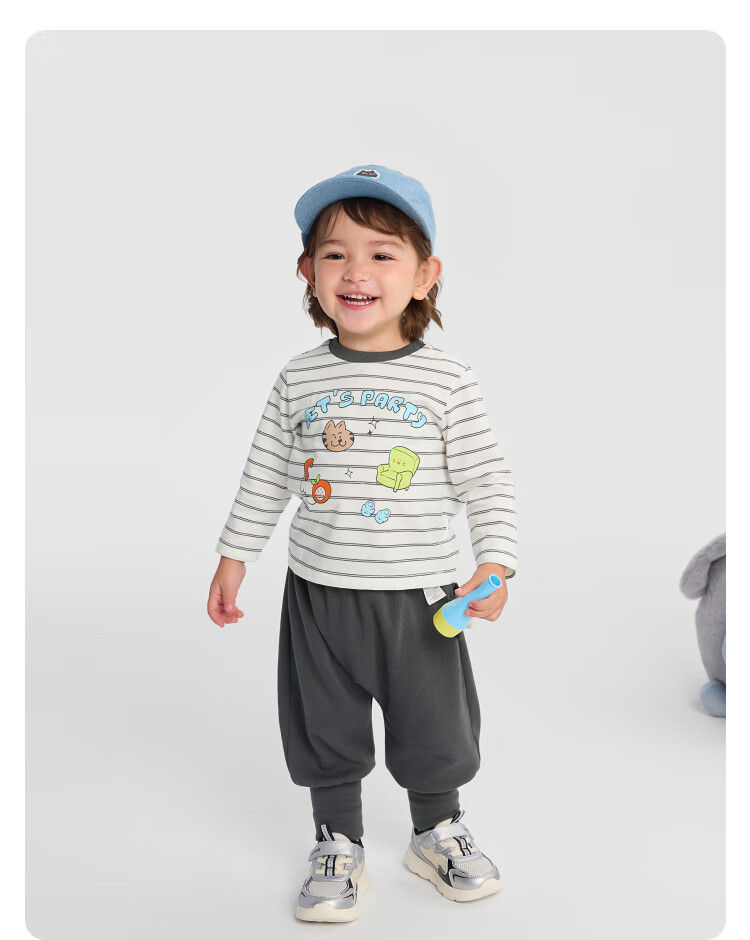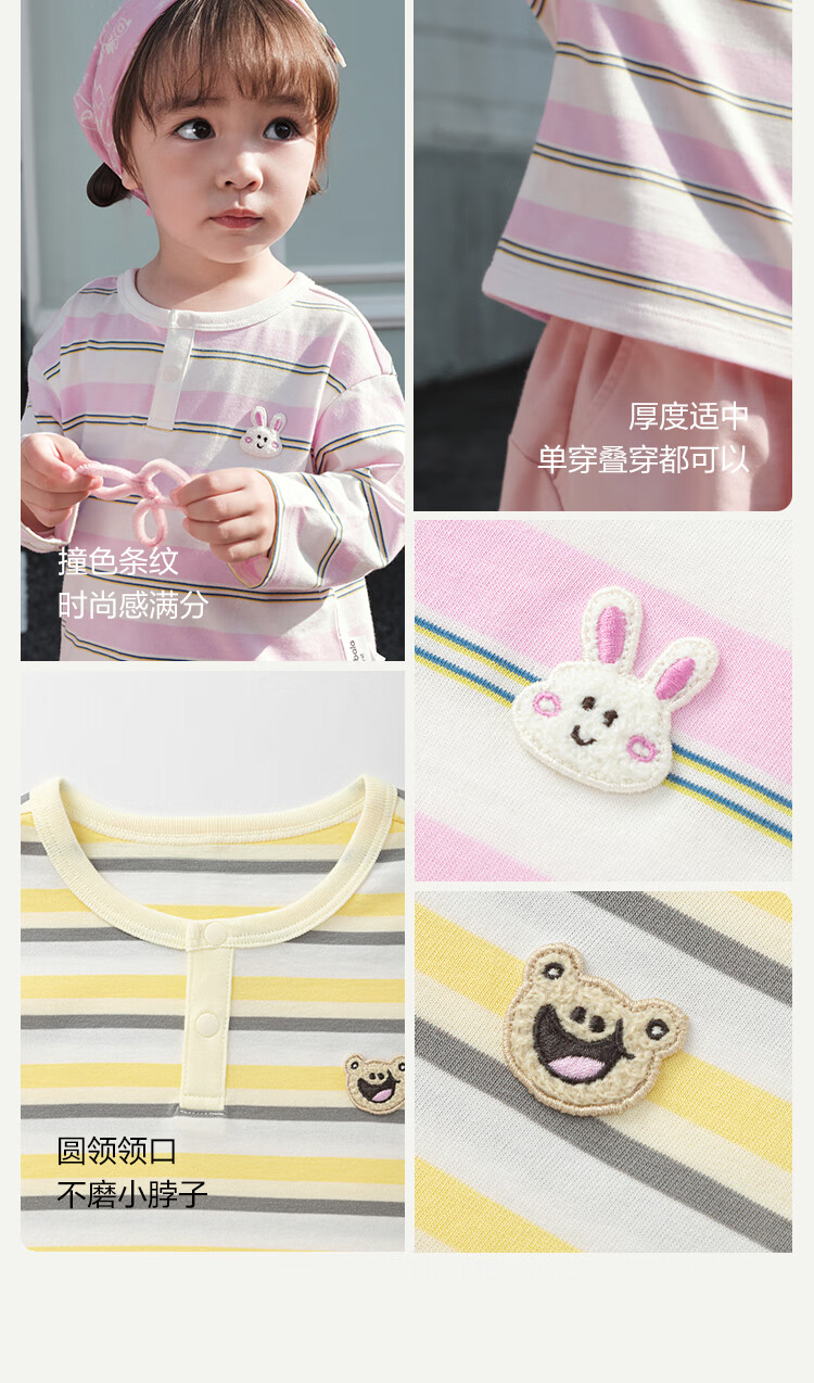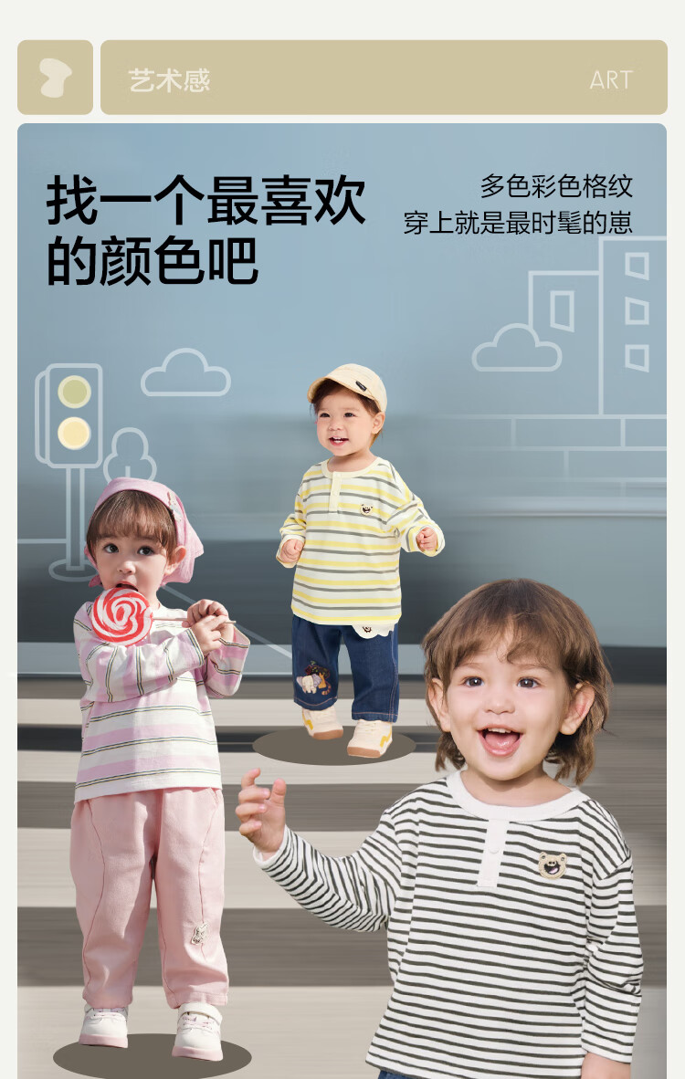 巴拉巴拉童装儿童长袖t恤打底衫男童女童条纹上衣2025秋209325100202