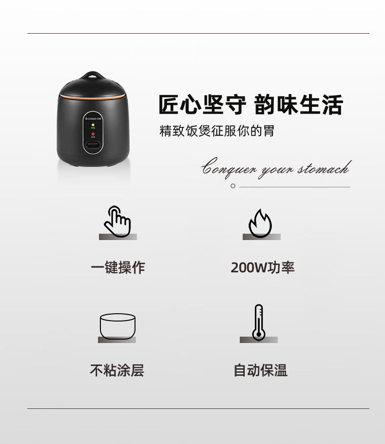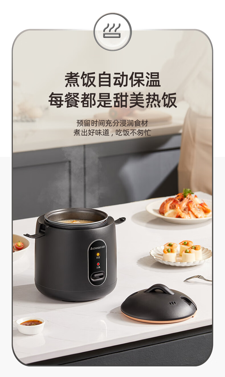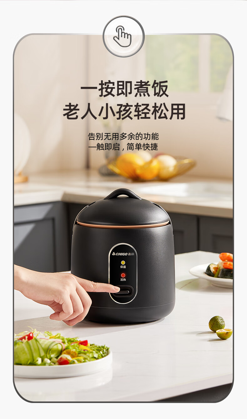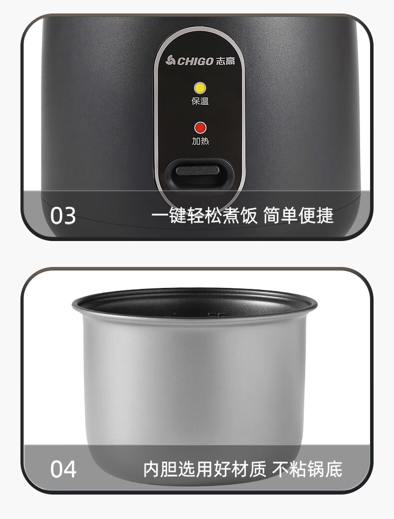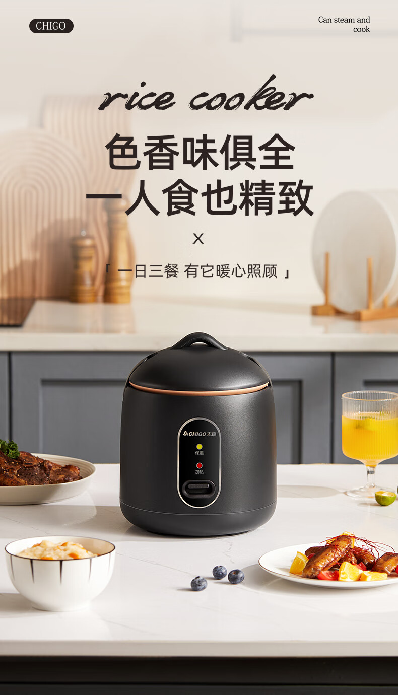 志高电饭煲电饭锅迷你电饭煲家用1-2人迷你学生宿舍单人不粘锅煮饭煮面煲汤煲粥多功能 黑色 1.2L 加厚内胆