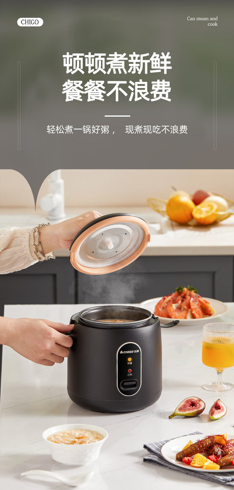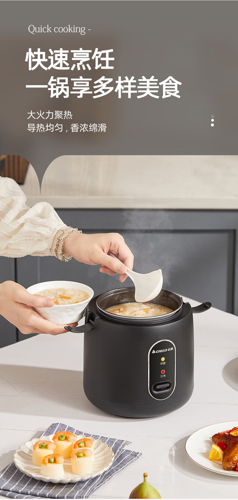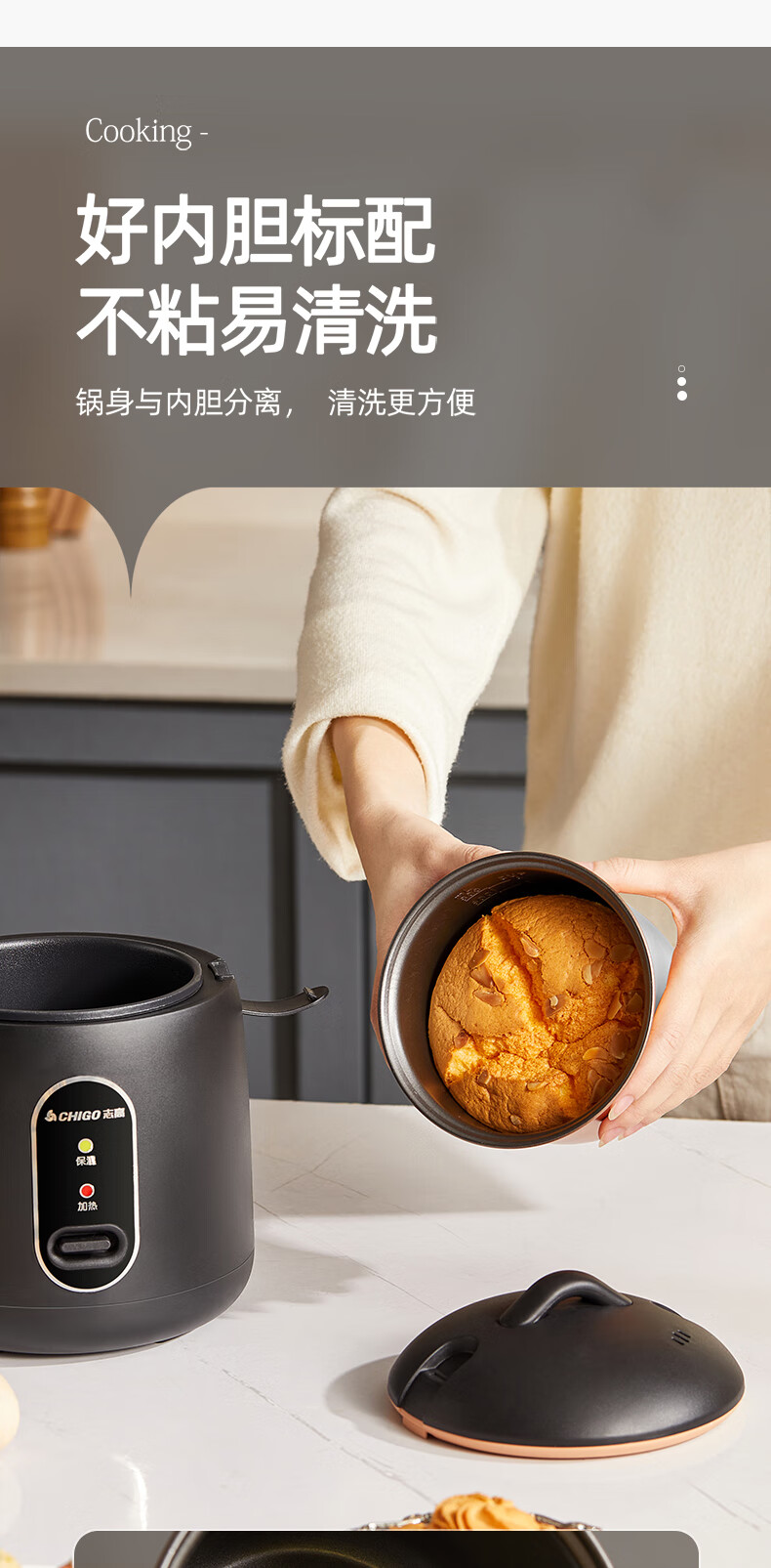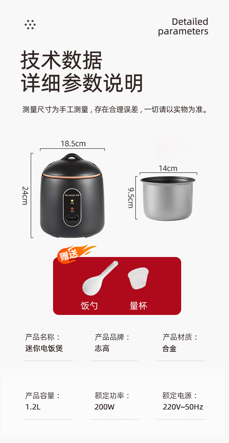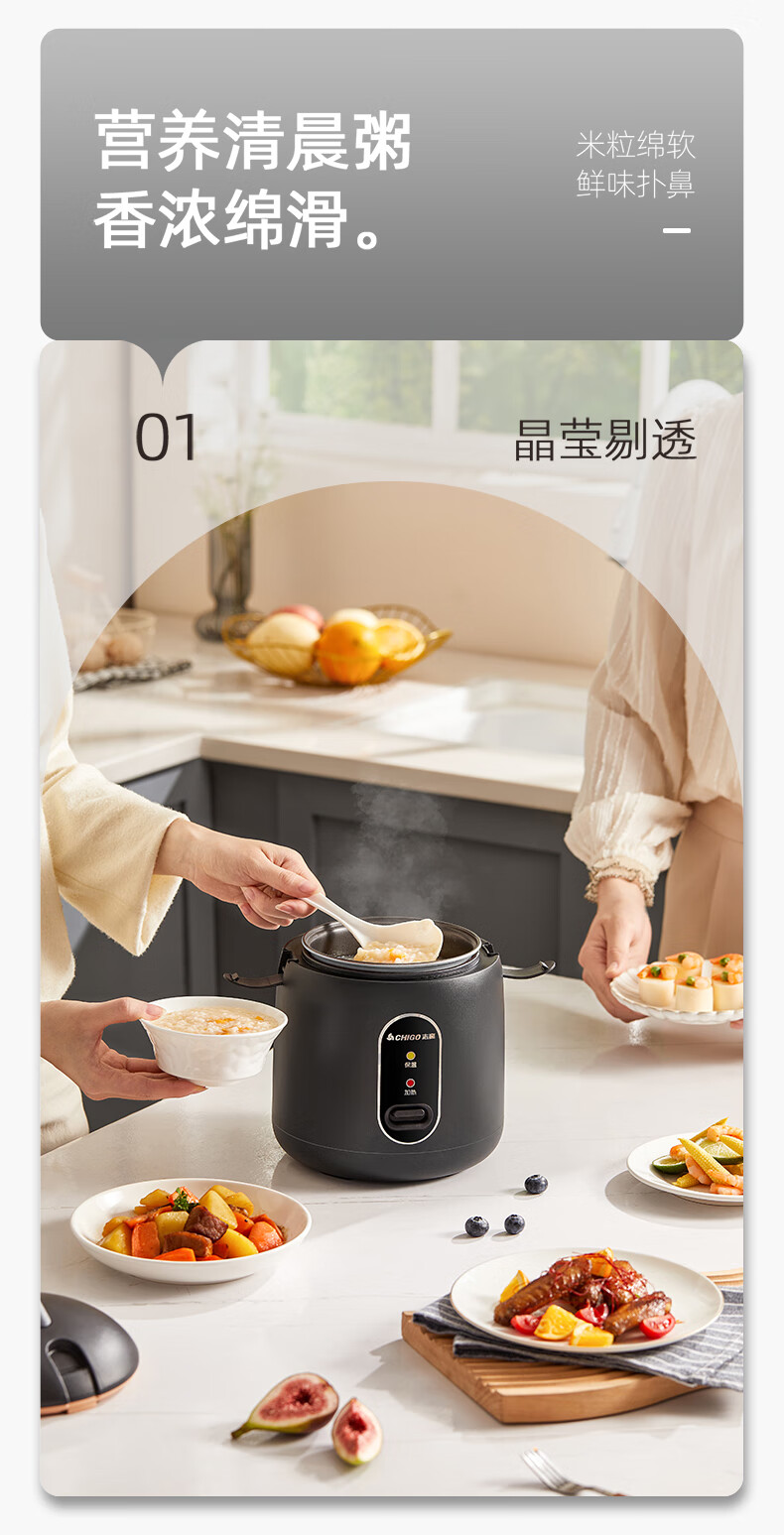 志高电饭煲电饭锅迷你电饭煲家用1-2人迷你学生宿舍单人不粘锅煮饭煮面煲汤煲粥多功能 黑色 1.2L 加厚内胆