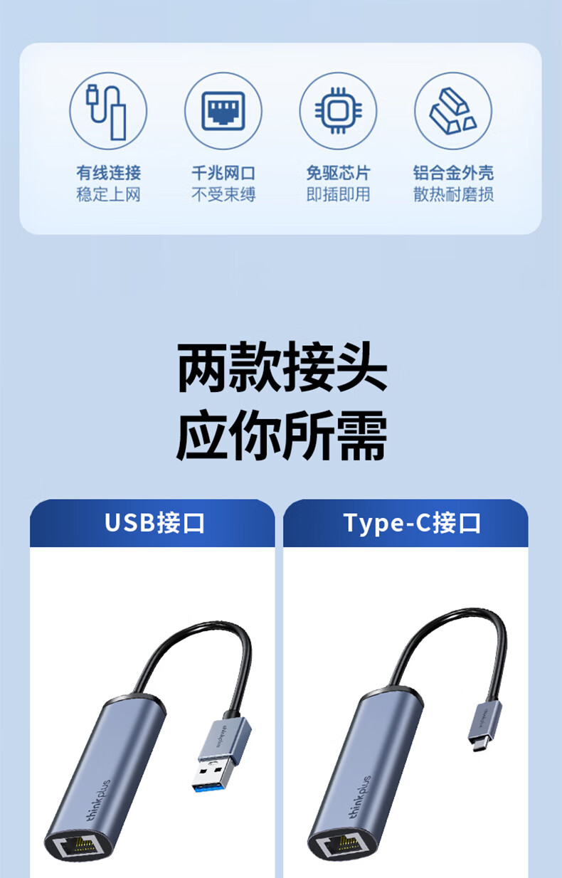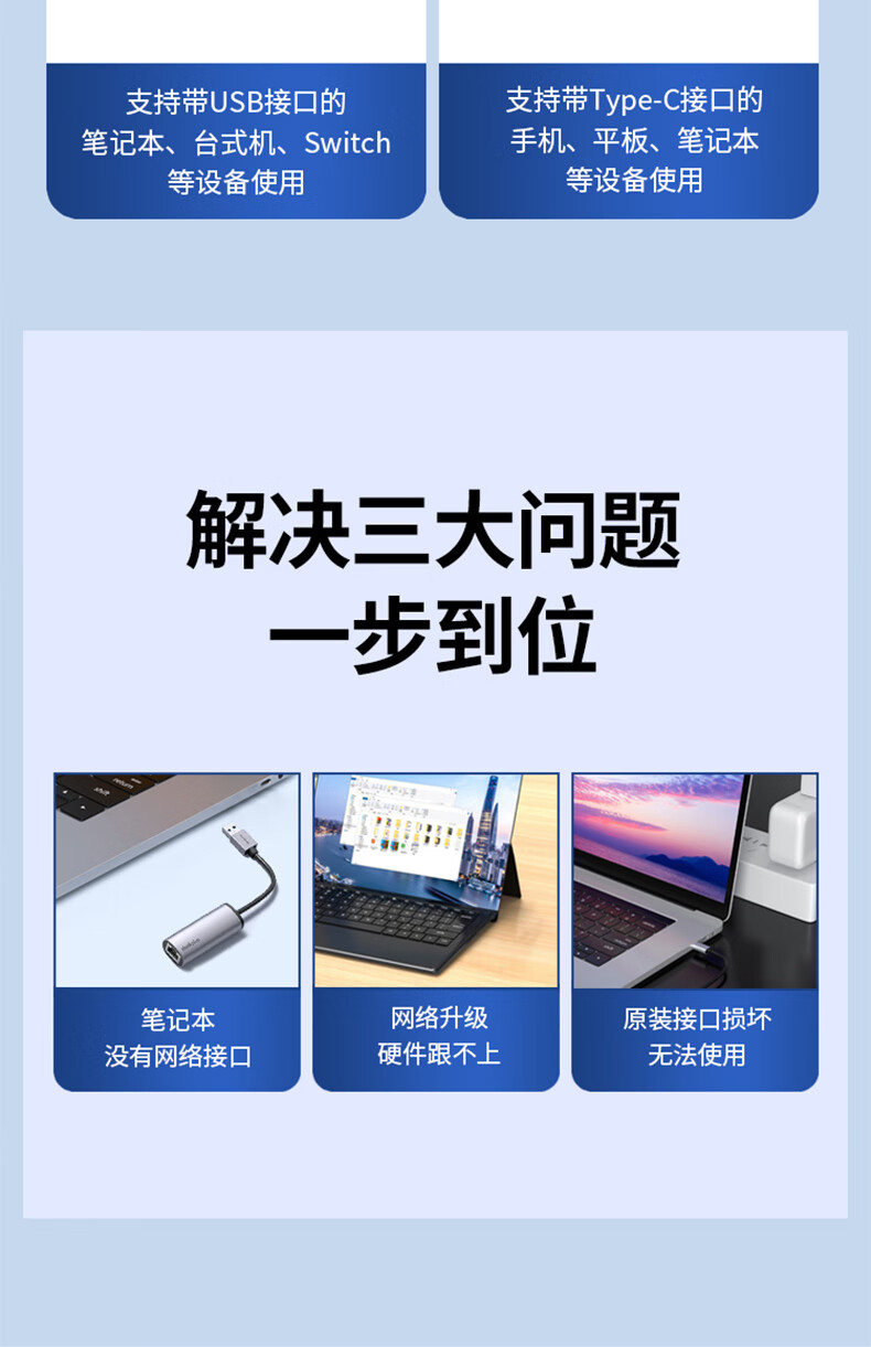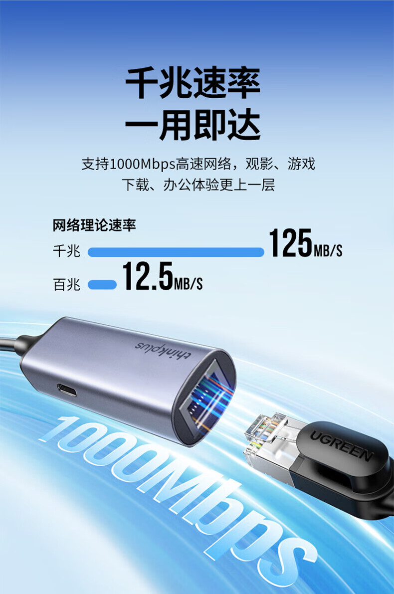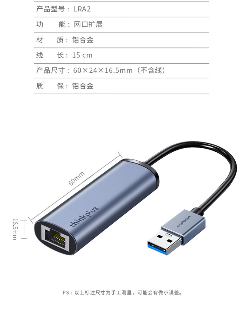 ThinkPad联想 USB转网口转接器 RJ45千兆网卡转换器 USB转接头 笔记本扩展坞 苹果小米笔记本拓展坞LRA2