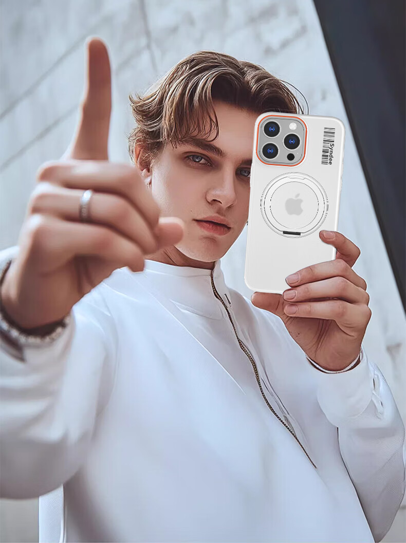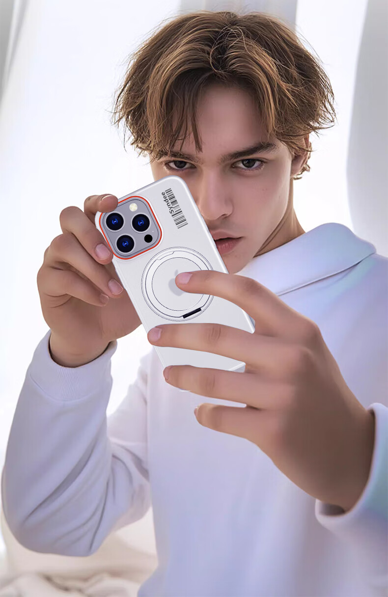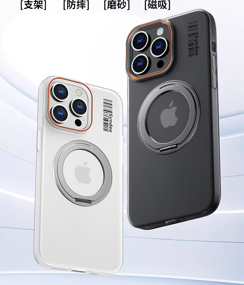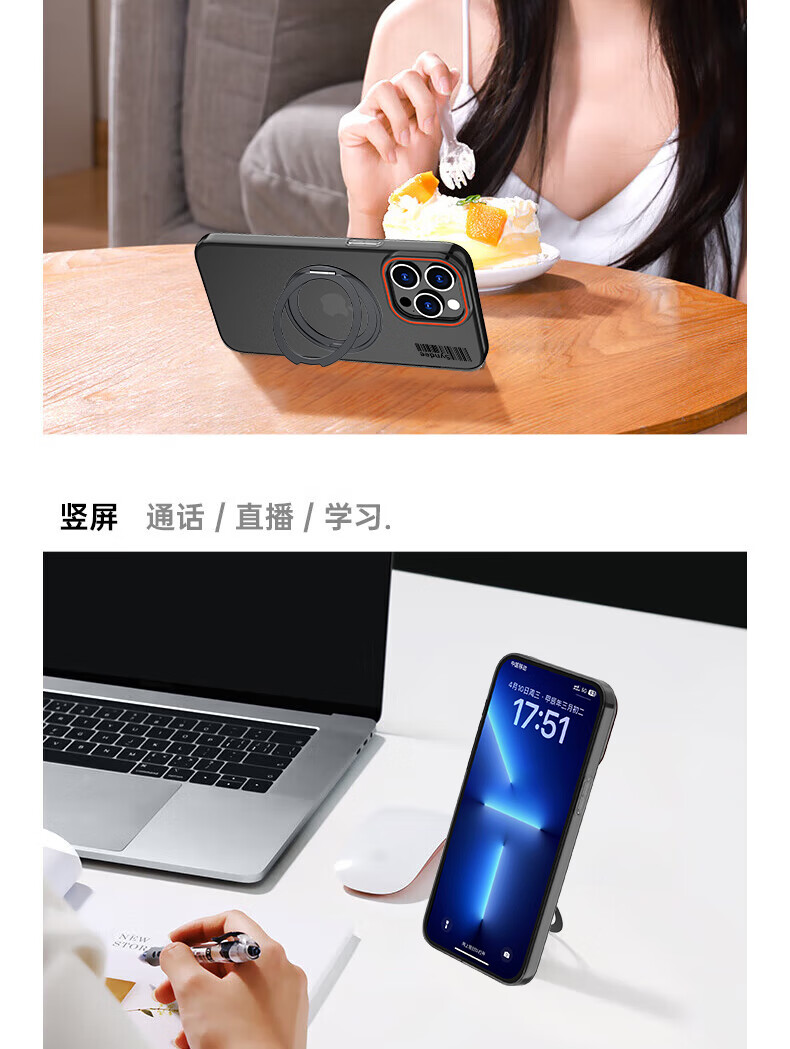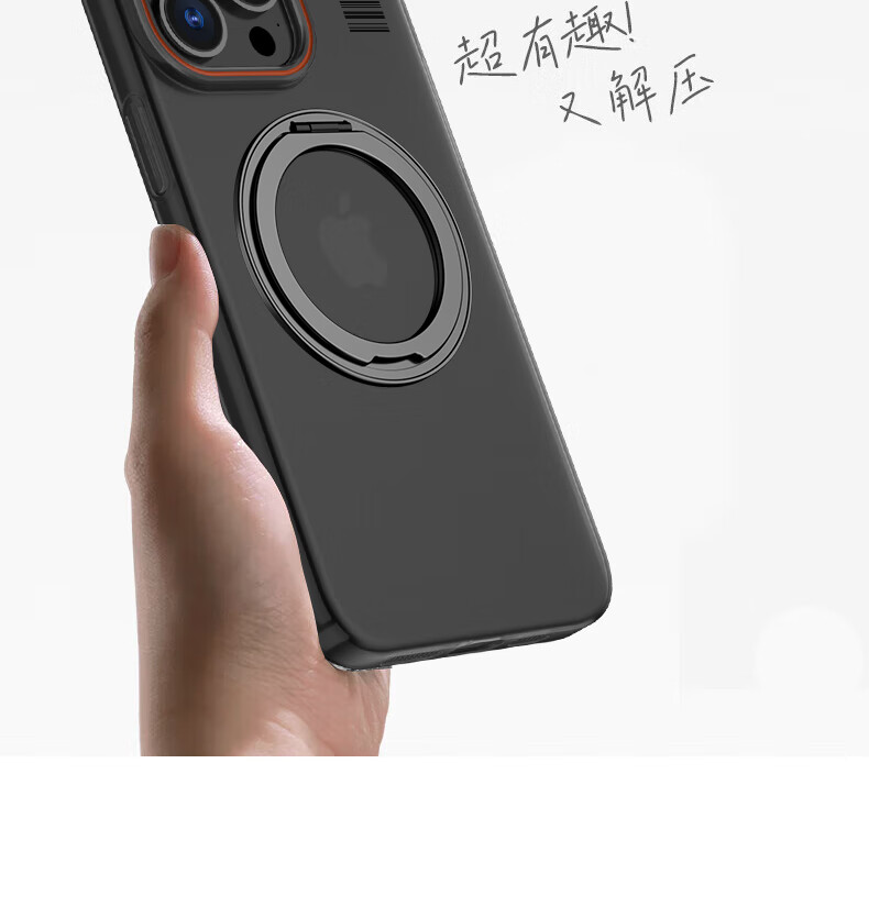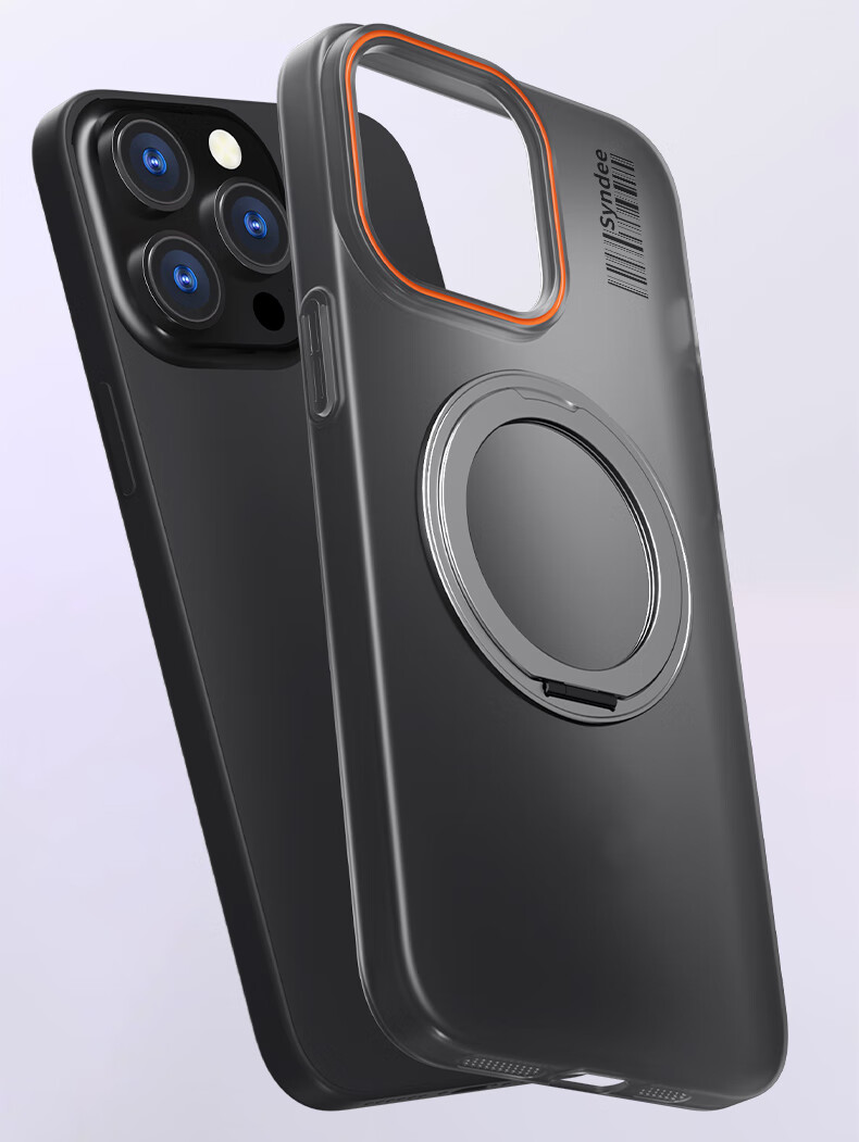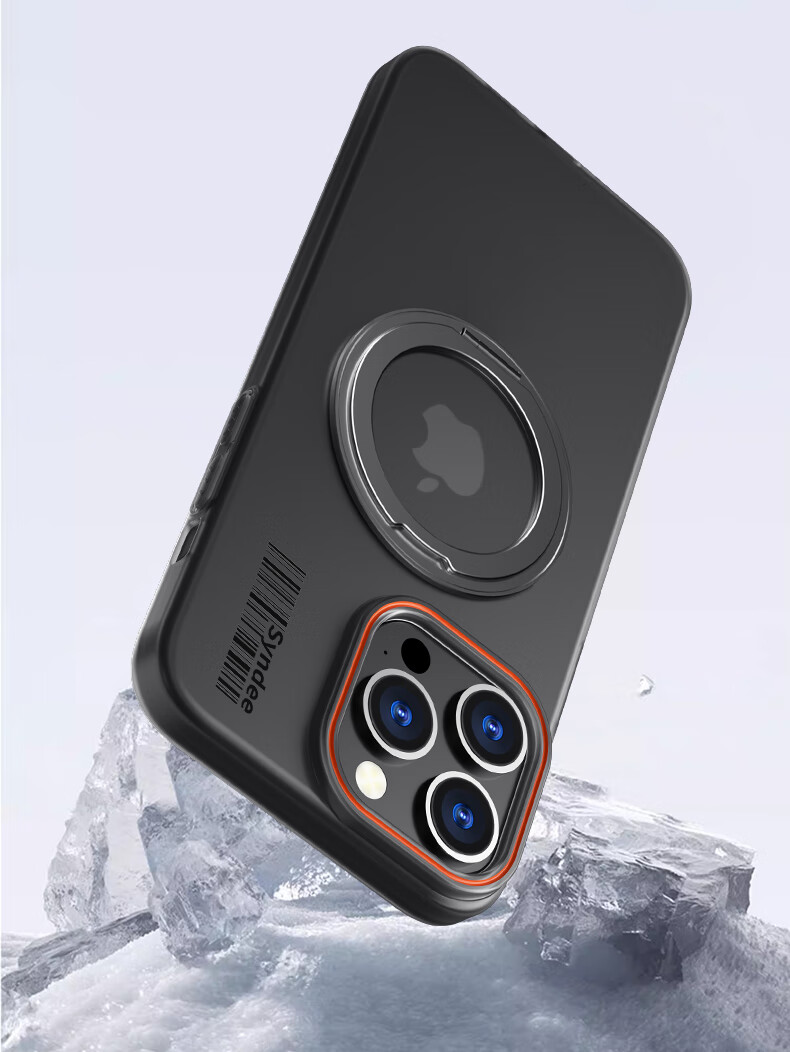 暴走【解压磁吸旋转支架】适用苹果16promax手机壳 iPhone16promax保护套 柔砂肤感透色轻薄简约硬壳黑