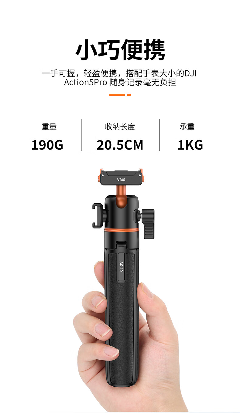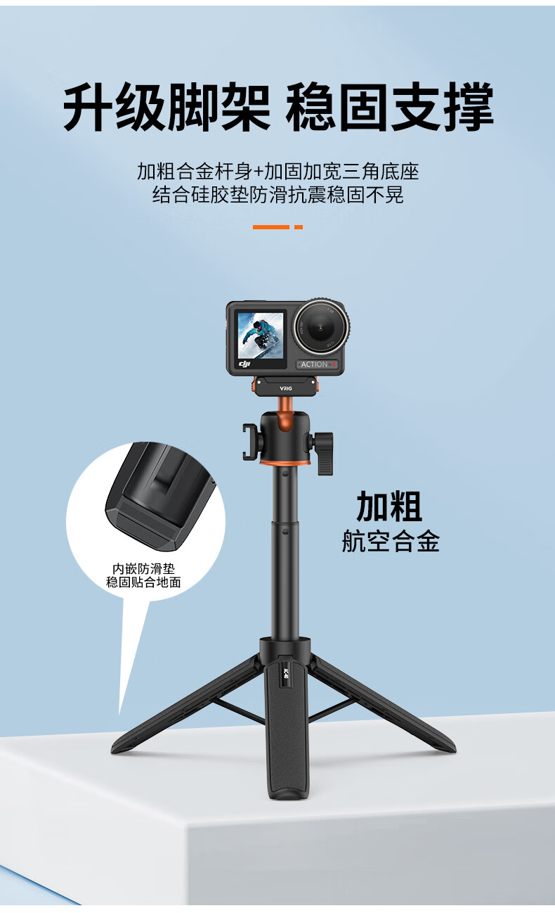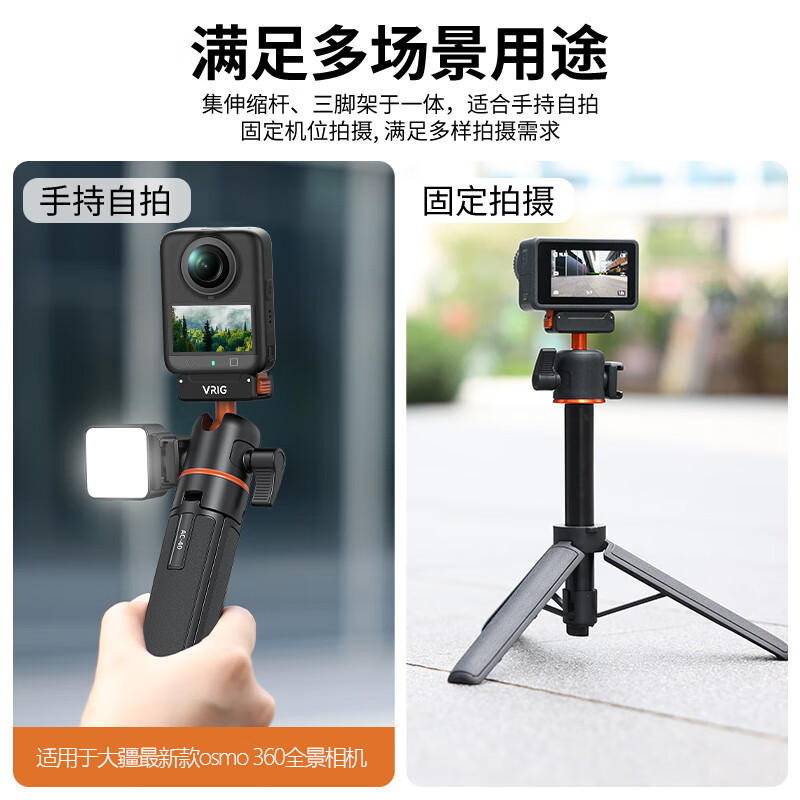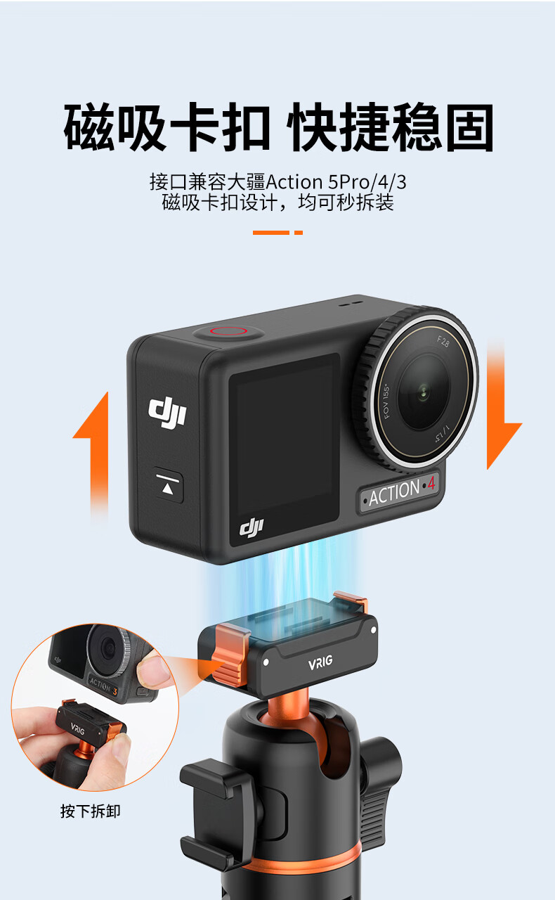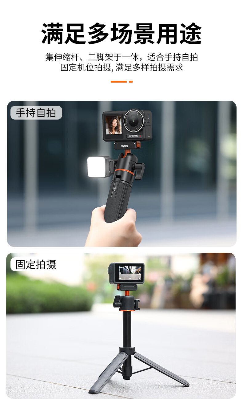 VRIG唯乐格AC-40大疆Action5Pro/4/3磁吸快拆迷你三脚架OSMO360全景自拍杆拍照手柄运动相机配件手持延长杆