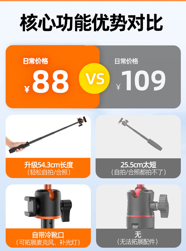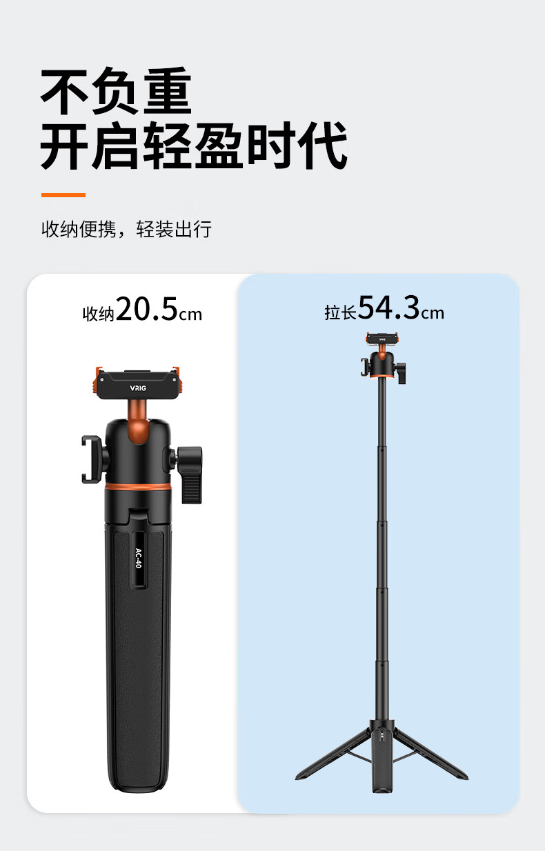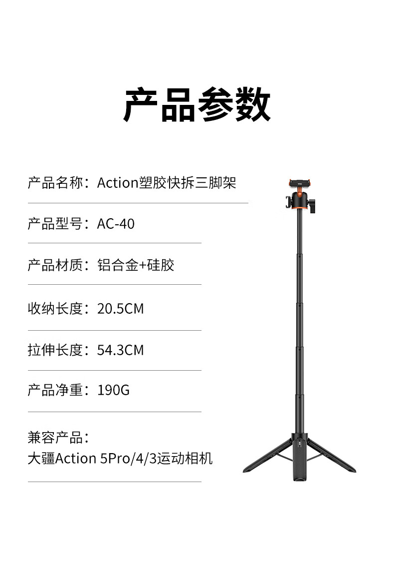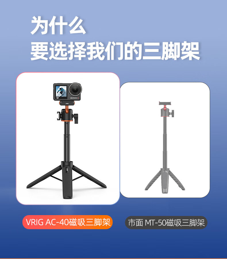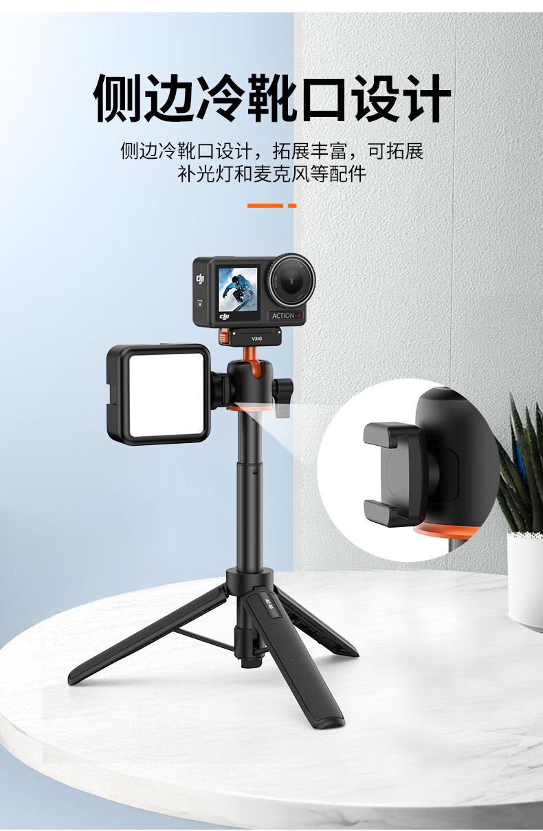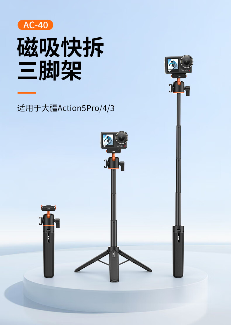 VRIG唯乐格AC-40大疆Action5Pro/4/3磁吸快拆迷你三脚架OSMO360全景自拍杆拍照手柄运动相机配件手持延长杆