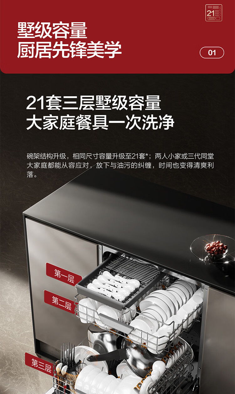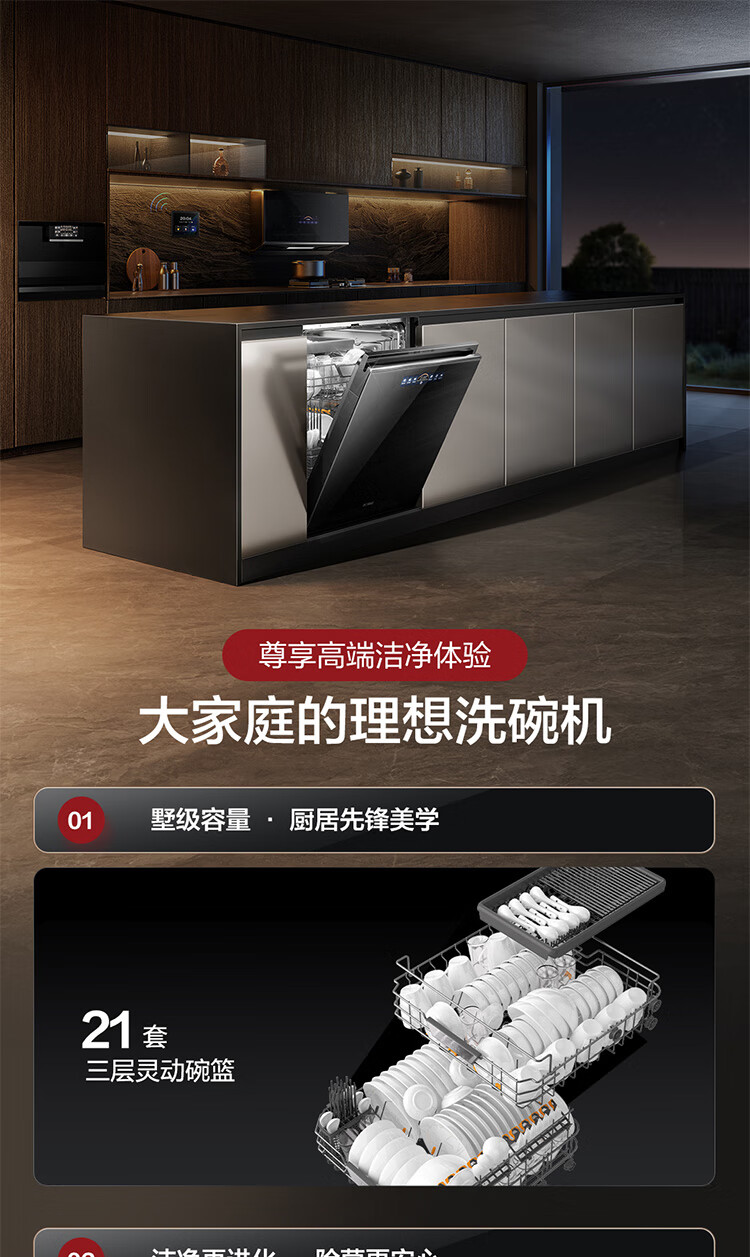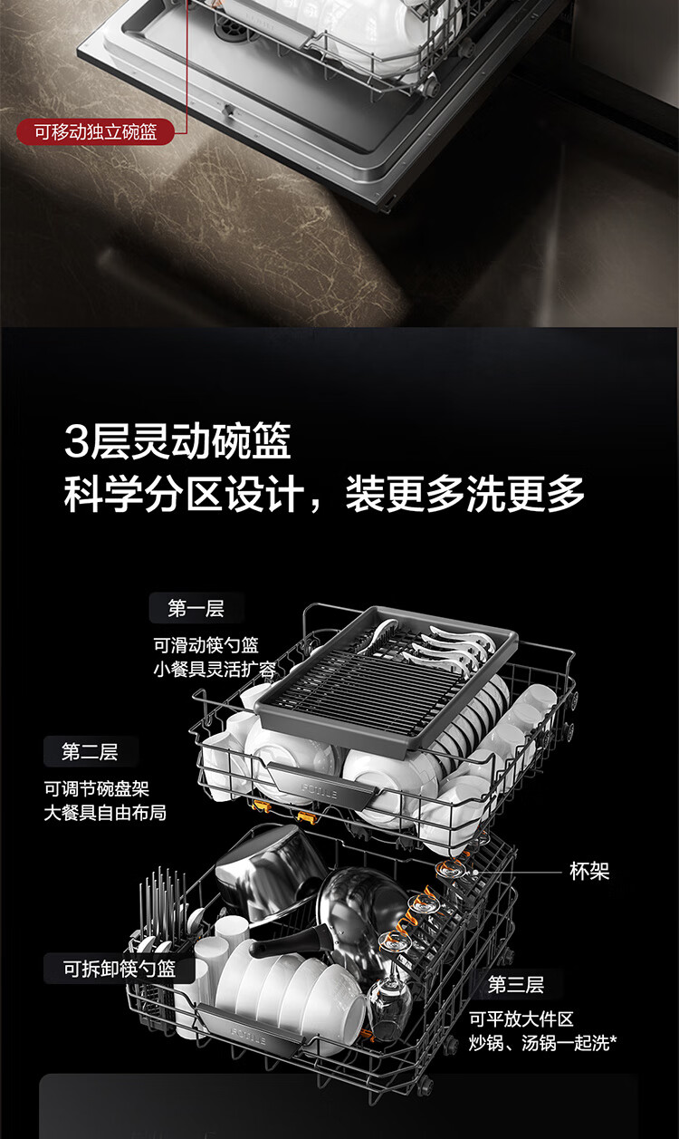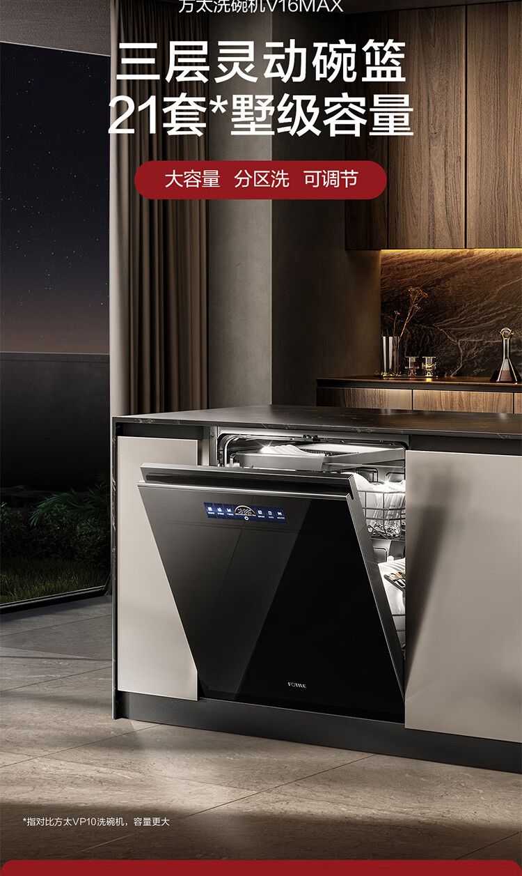 方太(FOTILE)新款洗碗机家用嵌入式全自动三层大容量21套灵动碗锅篮3层独立蒸汽消毒02-V16Max