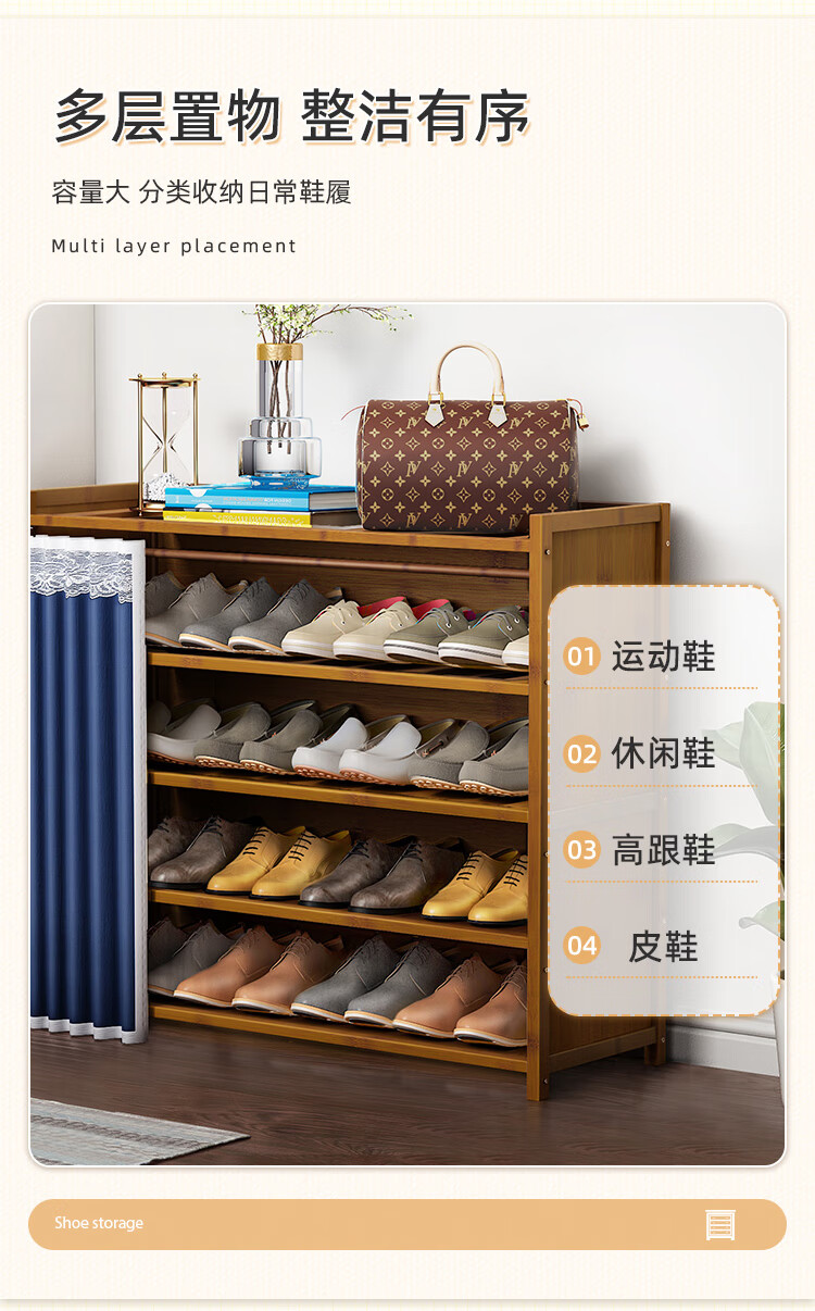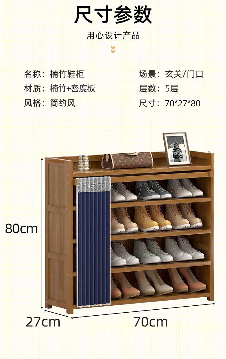 安尔雅鞋柜门口家用大鞋架子多功能收纳储物柜入户玄关柜 5层70cm