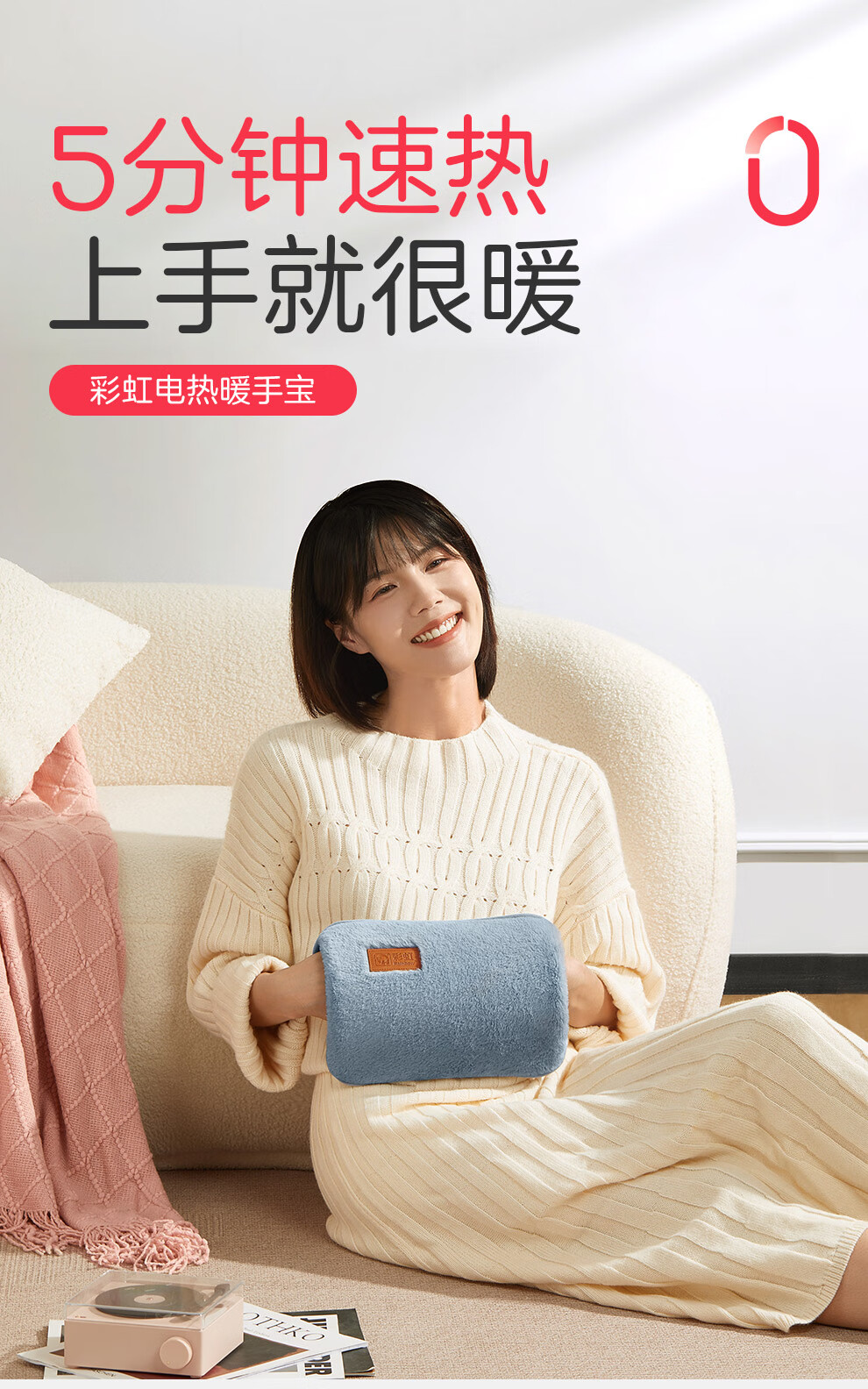 彩虹暖手宝热水袋电热充电暖宝宝暖肚子暖水袋暖身暖脚浅蓝绿