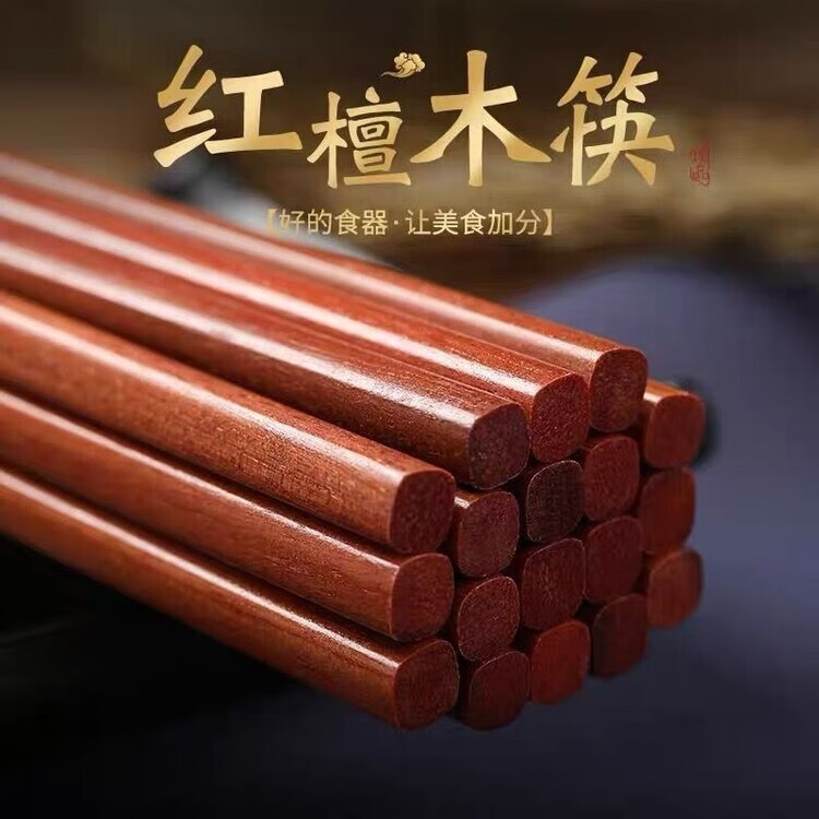 DEATKN筷子家用抗菌防霉防滑食品级鸡翅木高档木质快子家庭专用耐高温 进口红檀木10双+精美卡纸包装+质保