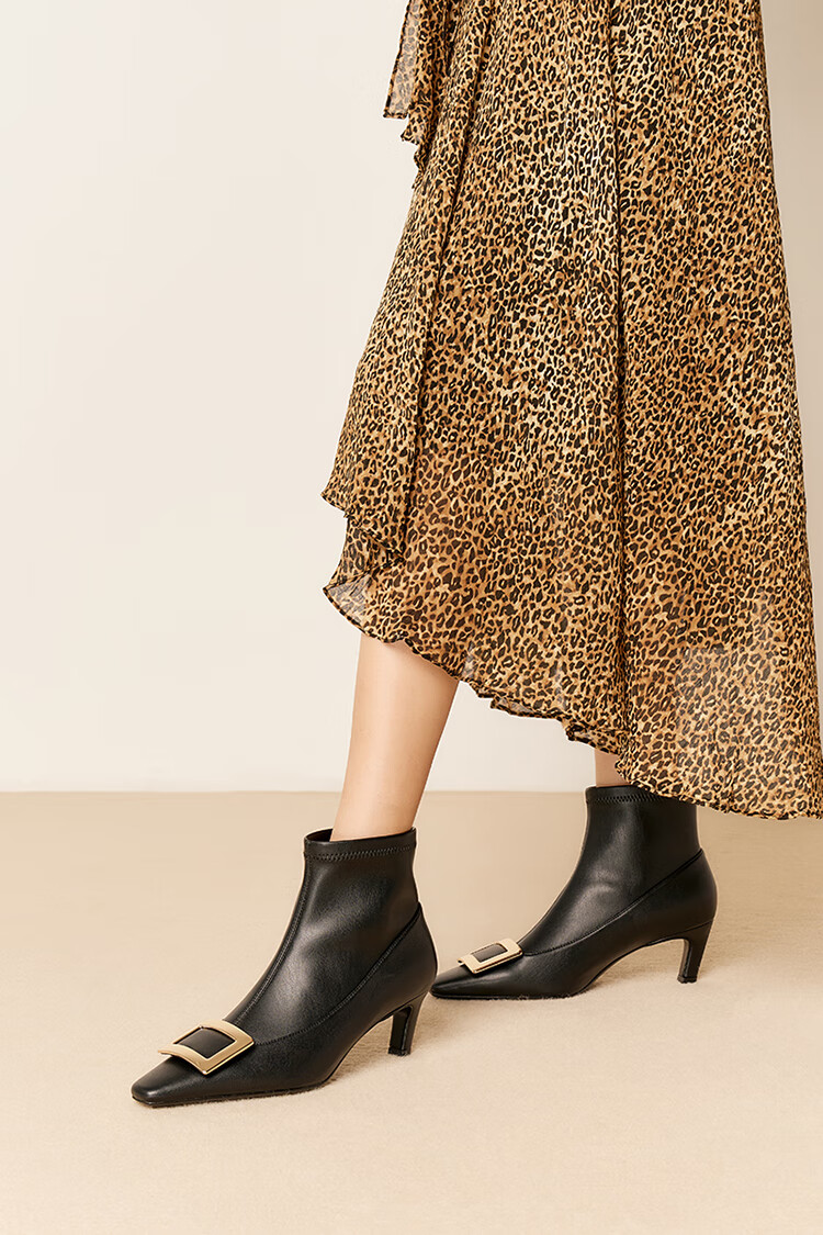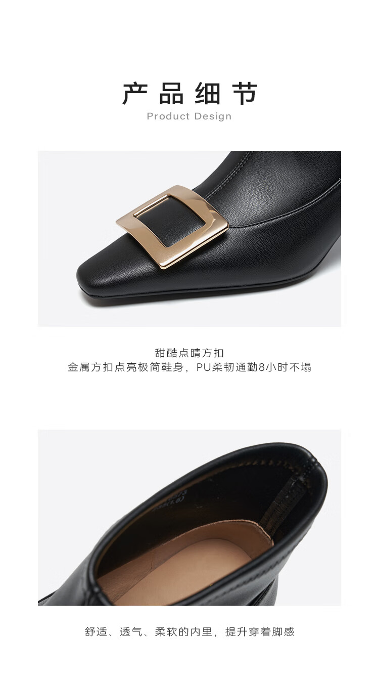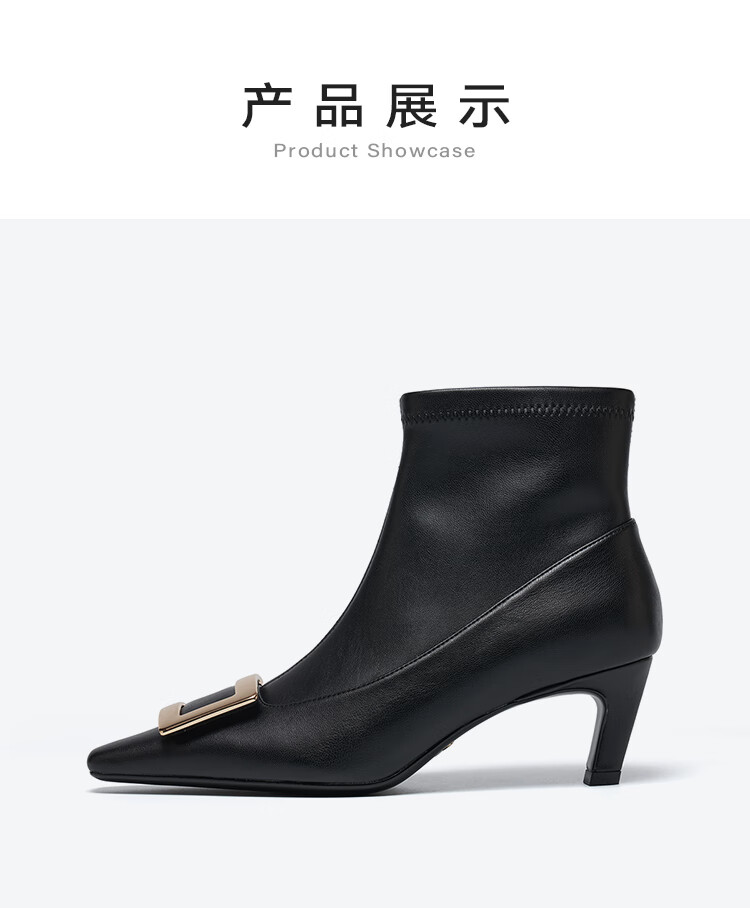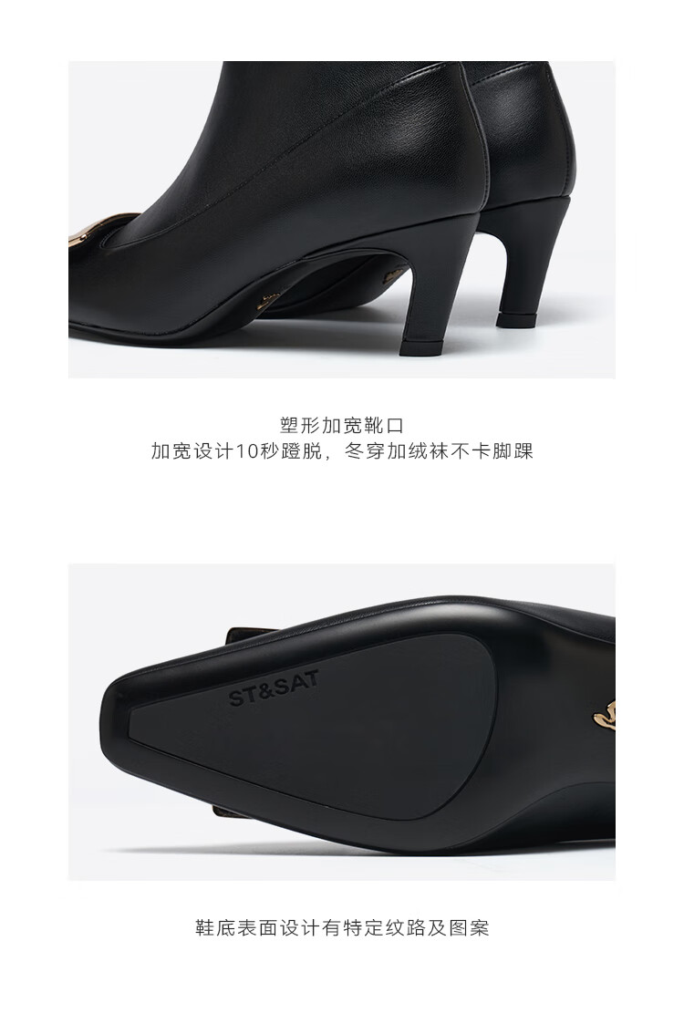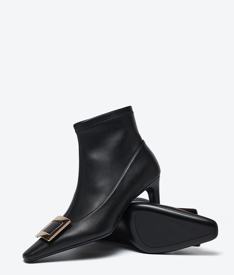 St&Sat星期六2025冬季新款时尚潮流通勤时装靴细跟尖头女短靴SSD4116573 黑色 34