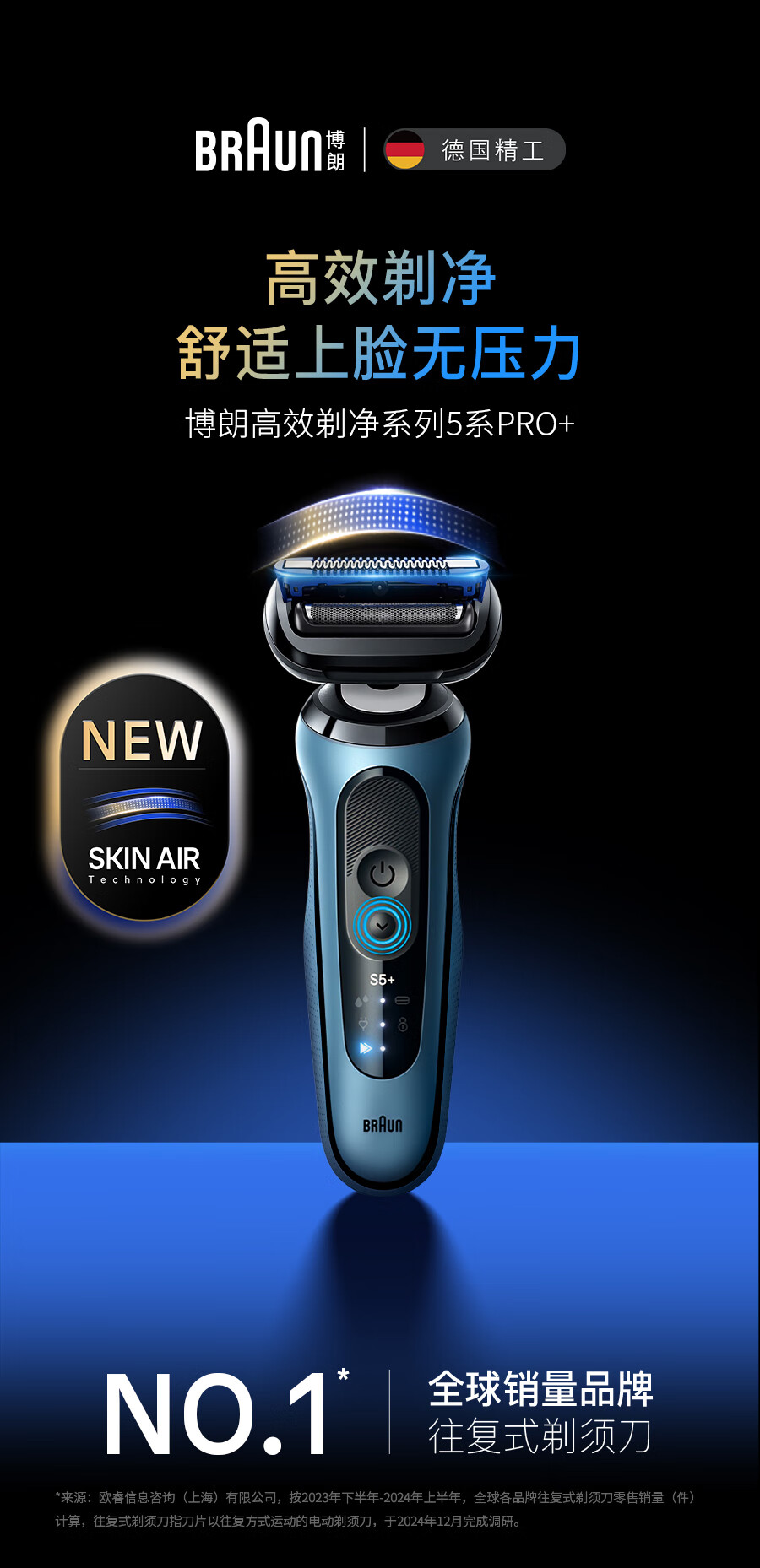 博朗(BRAUN)朱一龙同款电动剃须刀5系Pro+剃须刀礼盒款刀头往复式刮胡刀送男朋友老公生日圣诞礼物