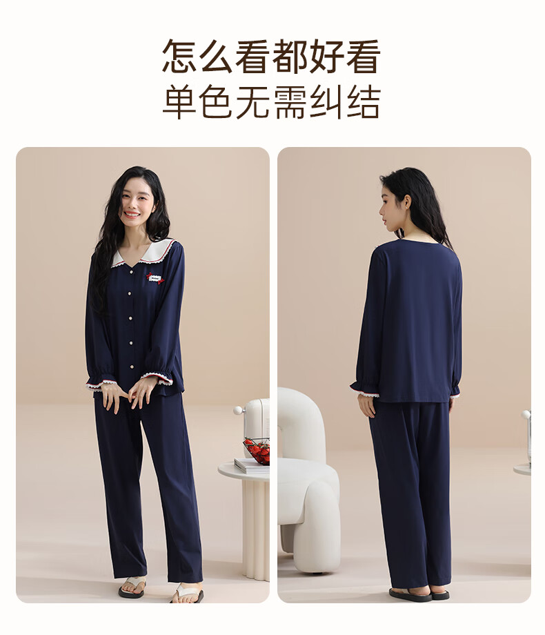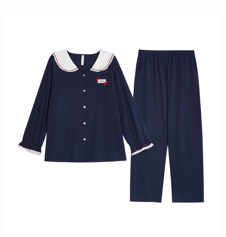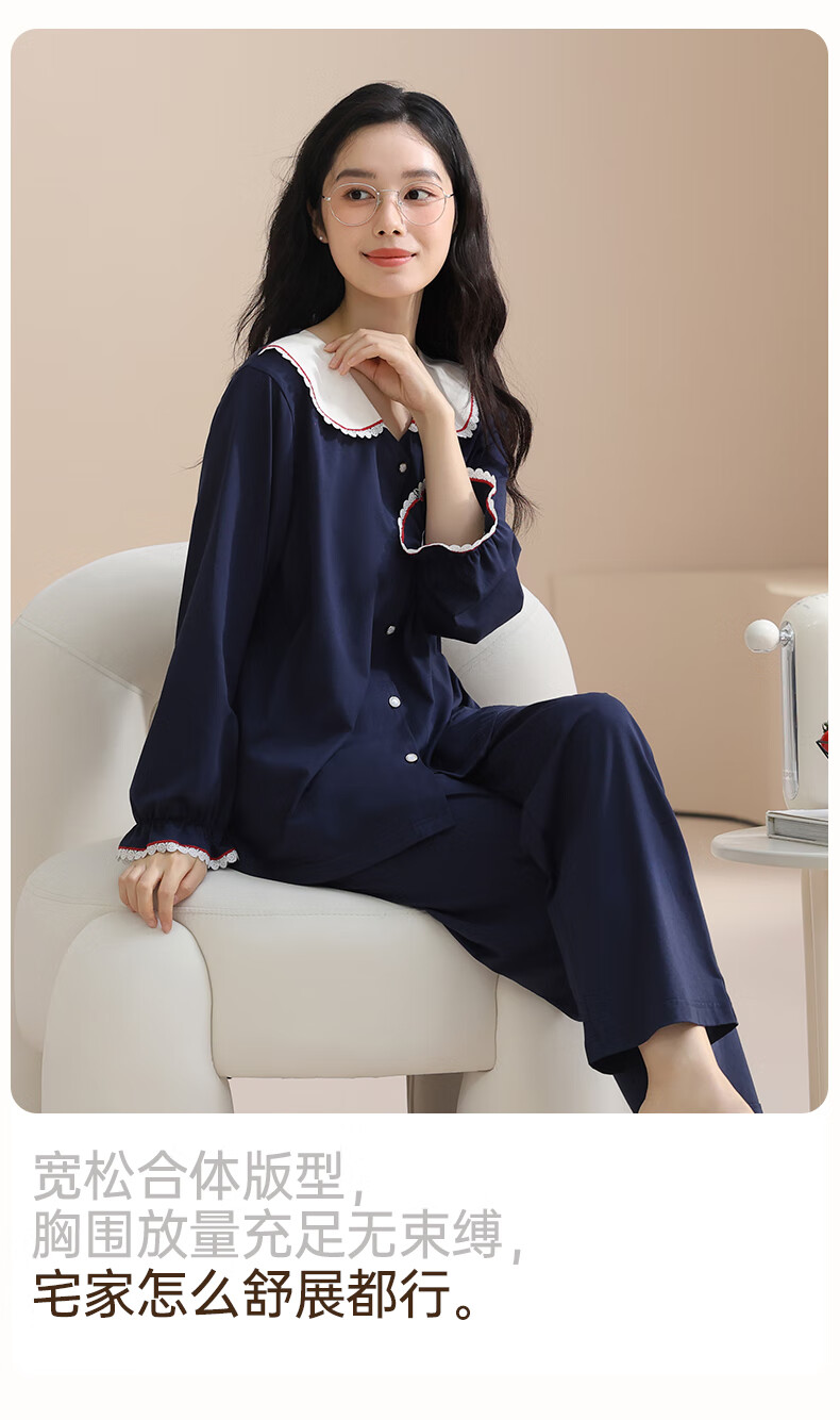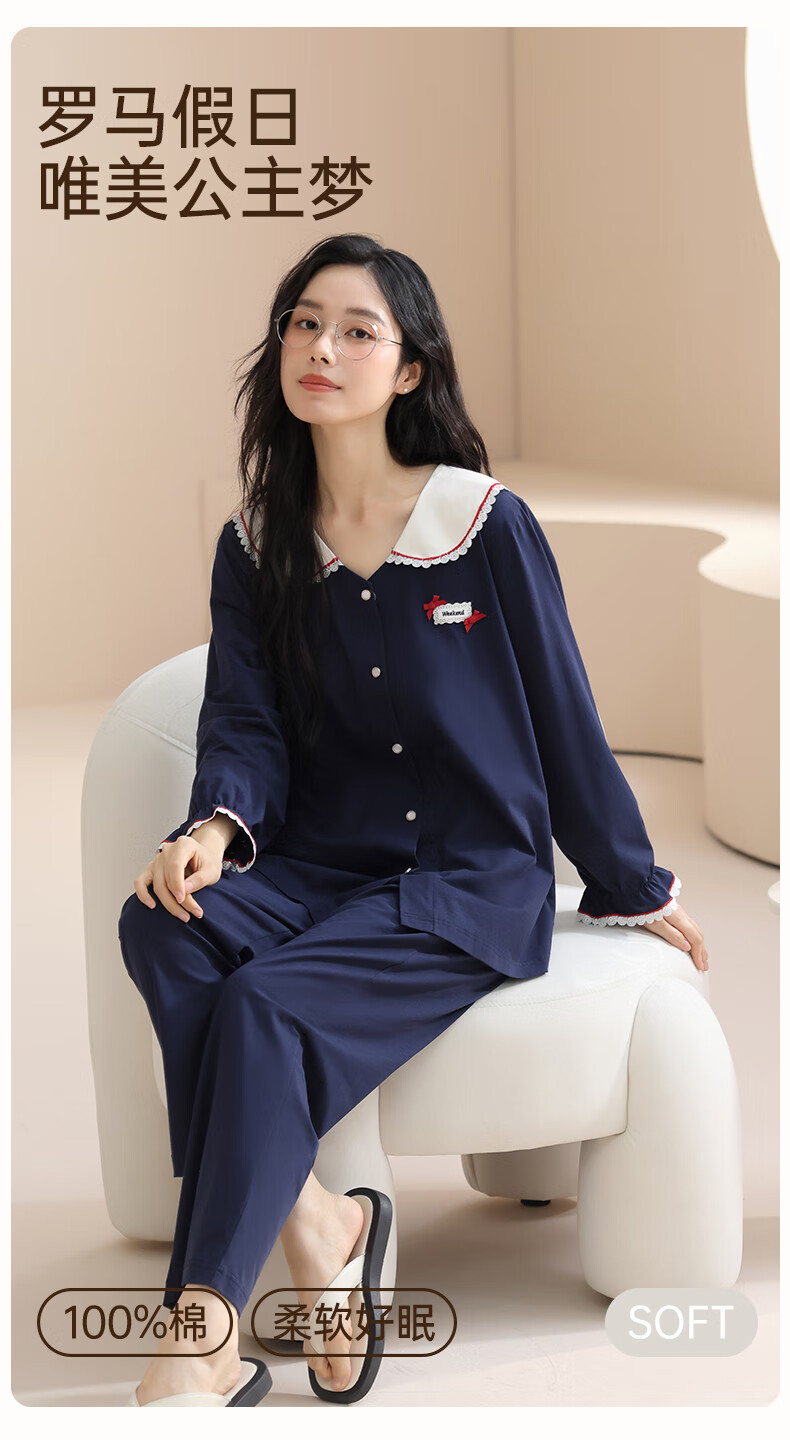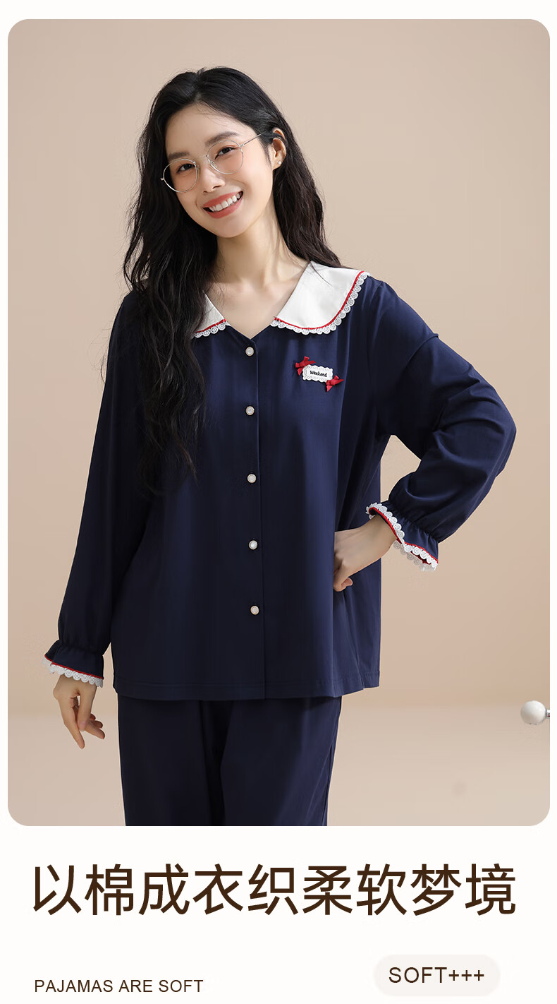 玛伦萨纯棉睡衣女春秋季2025新款可外穿长袖长裤大码女士家居服套装 宝兰 M