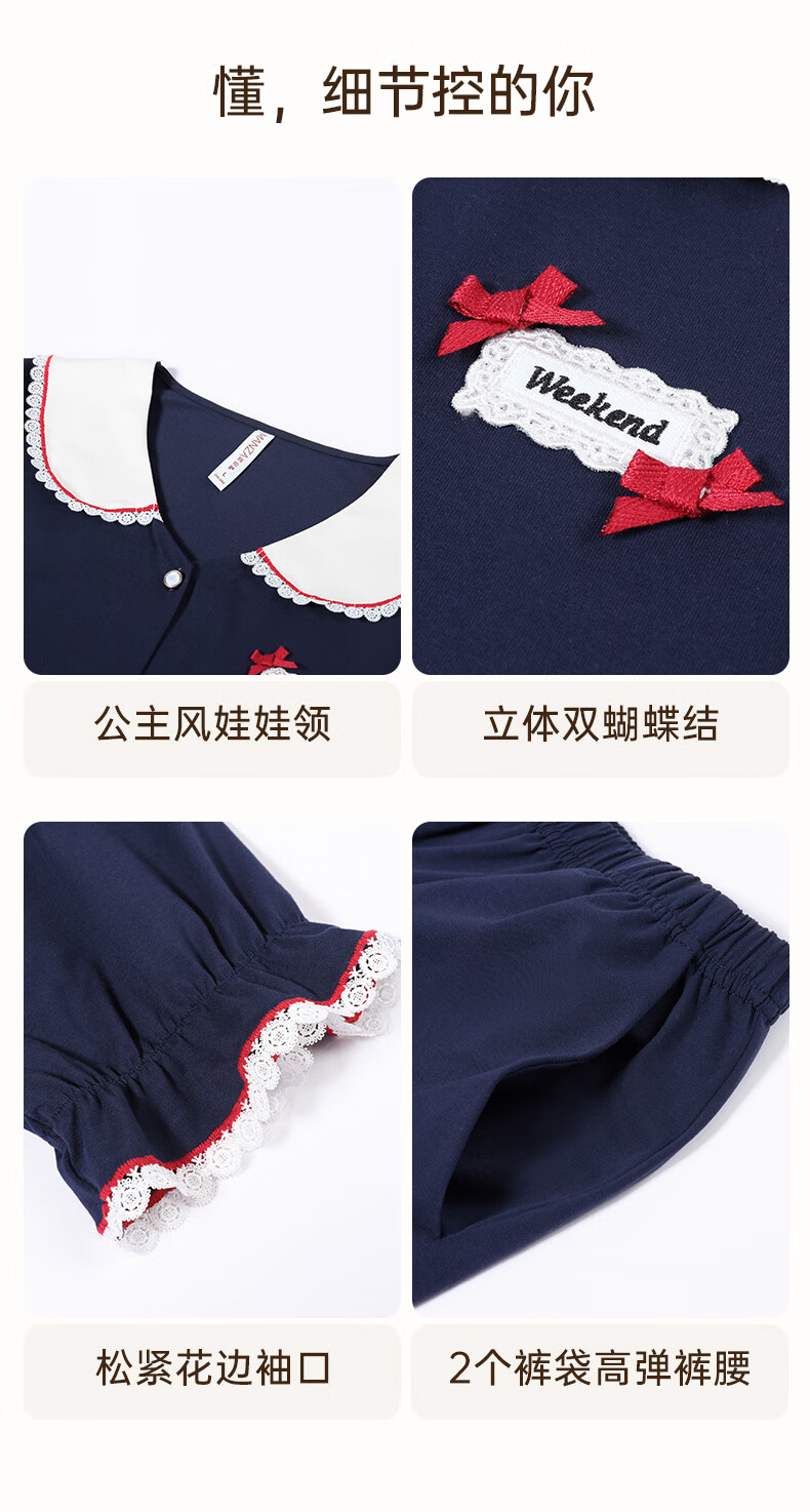 芬腾睡衣女季新款柔软纯棉优雅风翻领蕾丝长袖家居服套装 优雅白 L