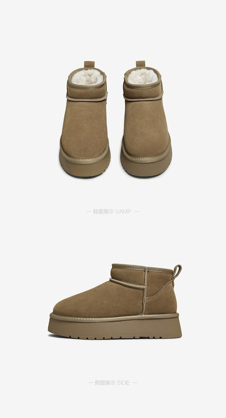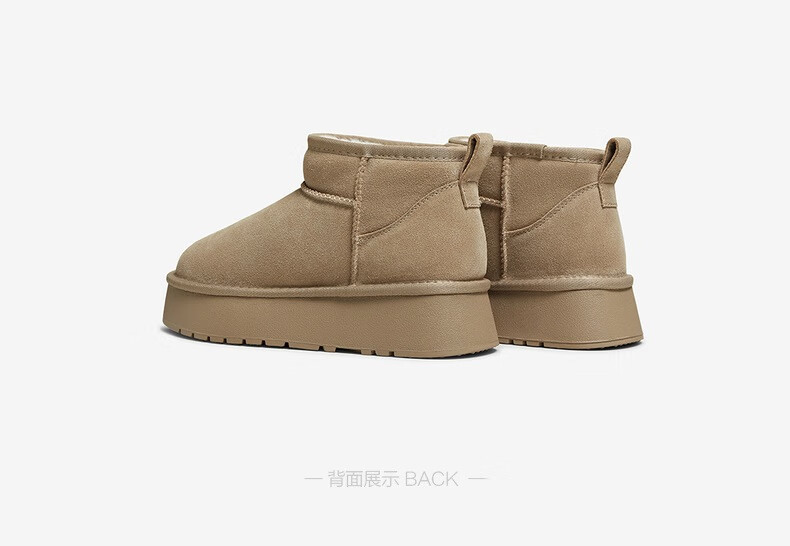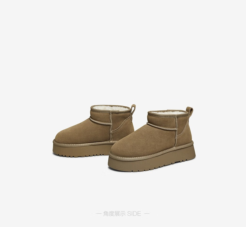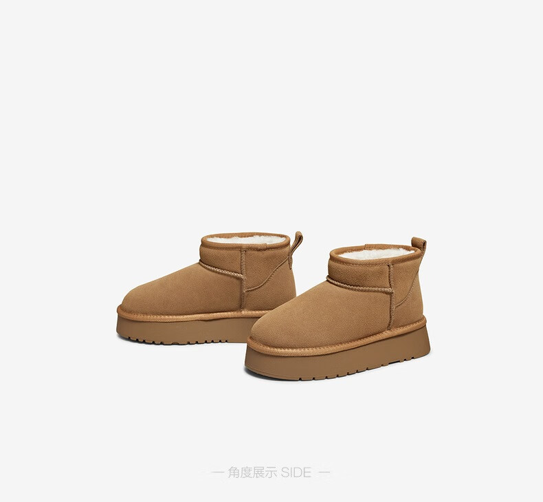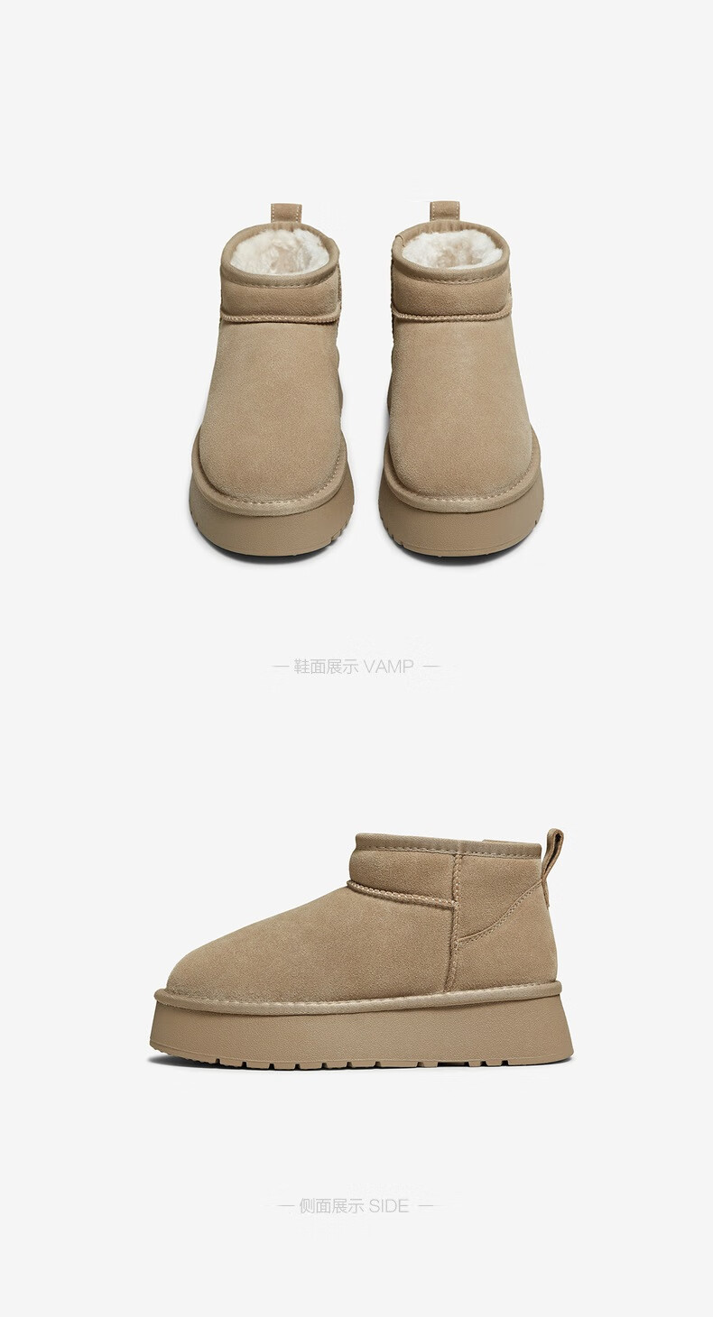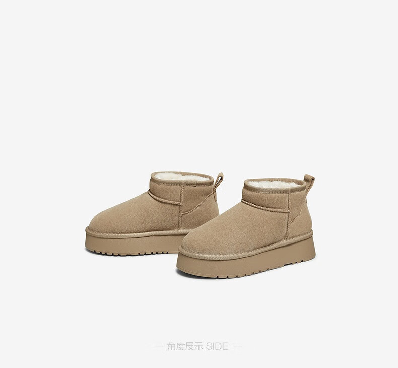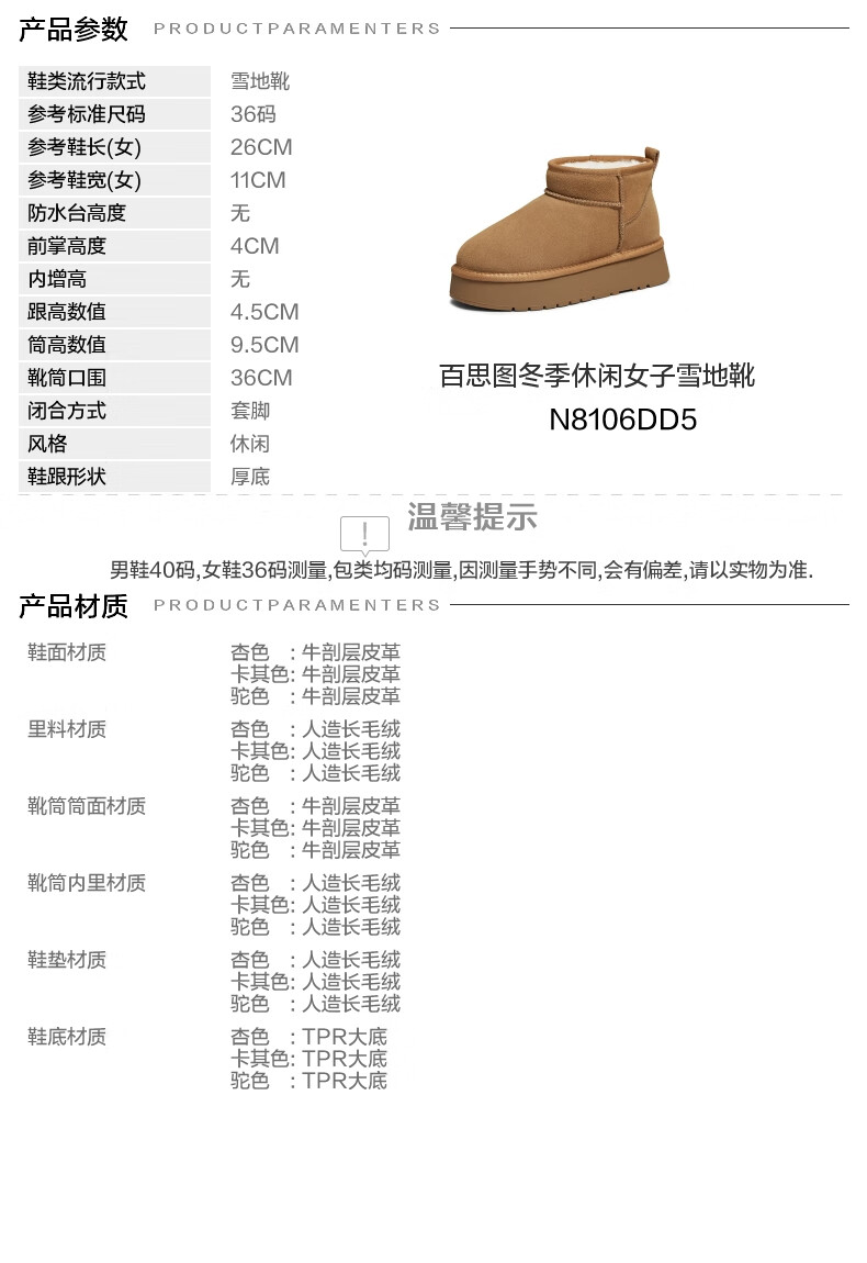 百思图2025冬季新款雪地靴时尚简约户外休闲女短靴N8106DD5【预售】 杏色 34