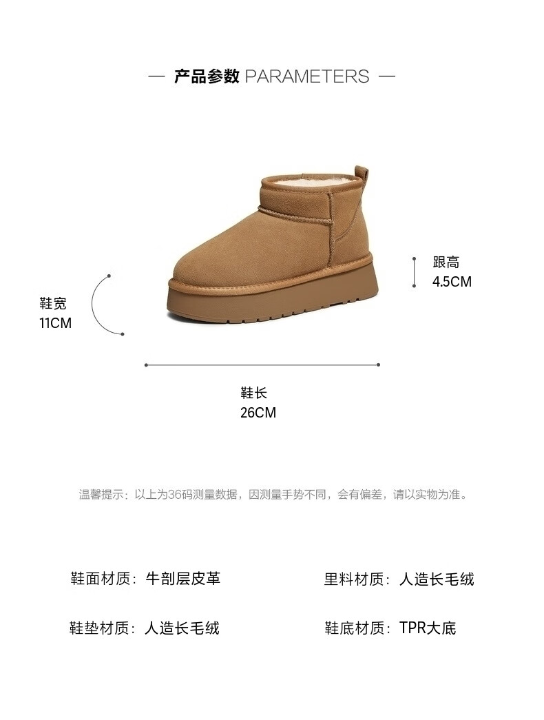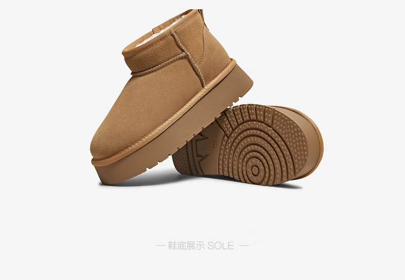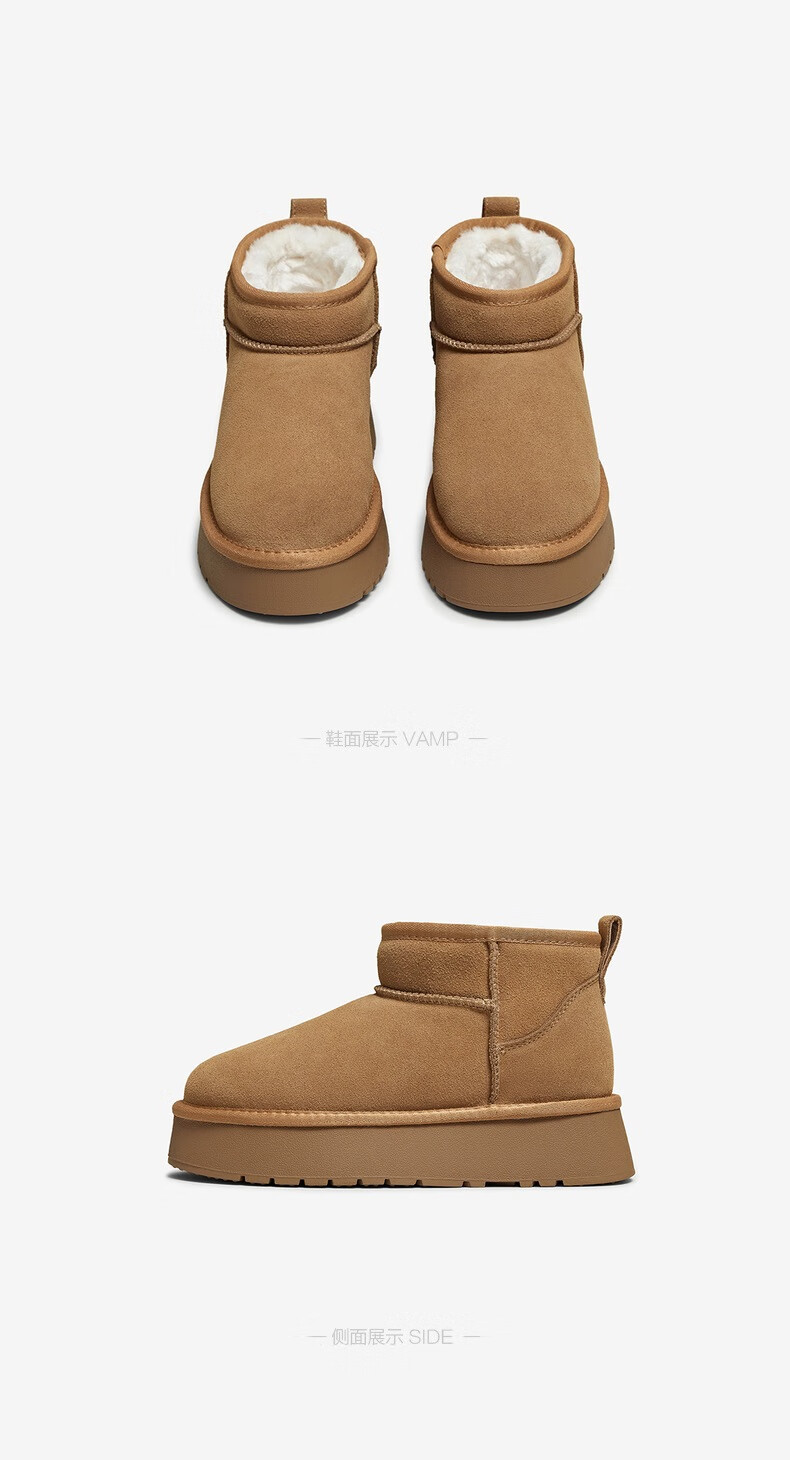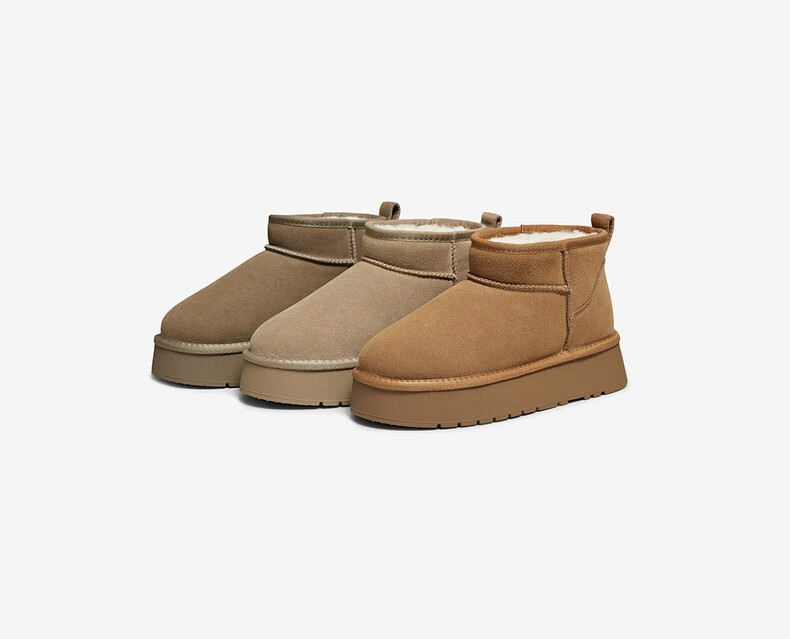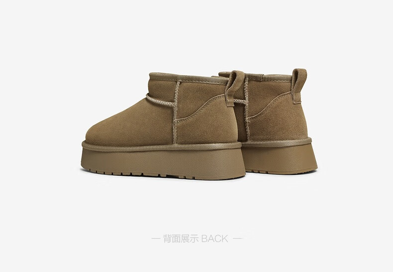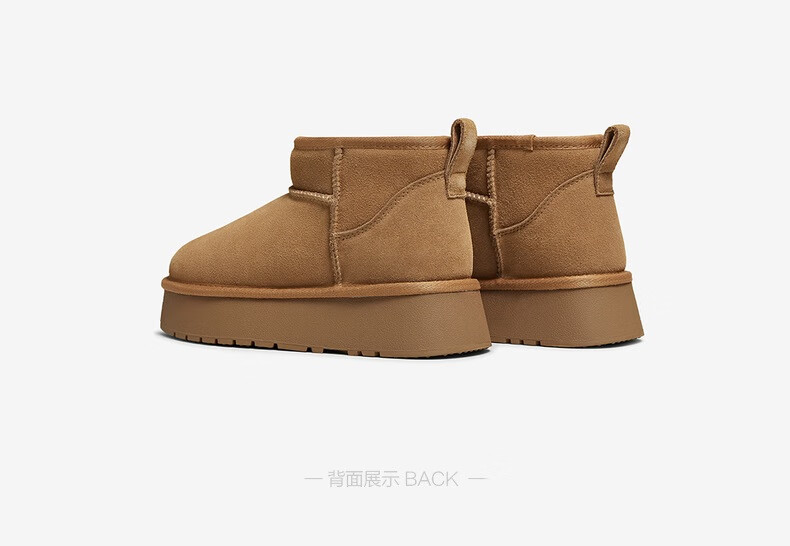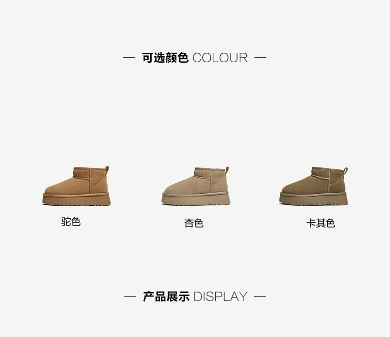 百思图2025冬季新款雪地靴时尚简约户外休闲女短靴N8106DD5【预售】 杏色 34
