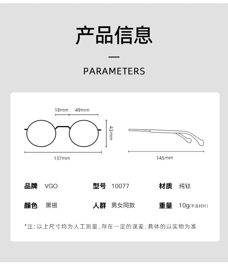 VGO防蓝光防辐射眼镜男女钛架平光网课护目眼镜近视眼镜架10077开学