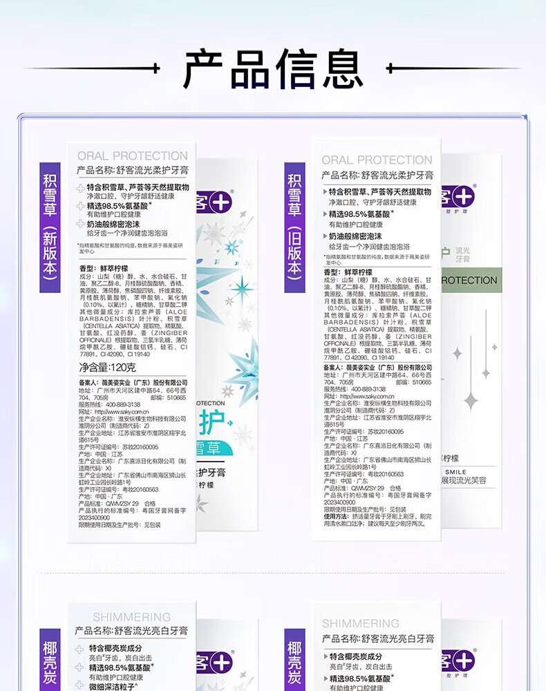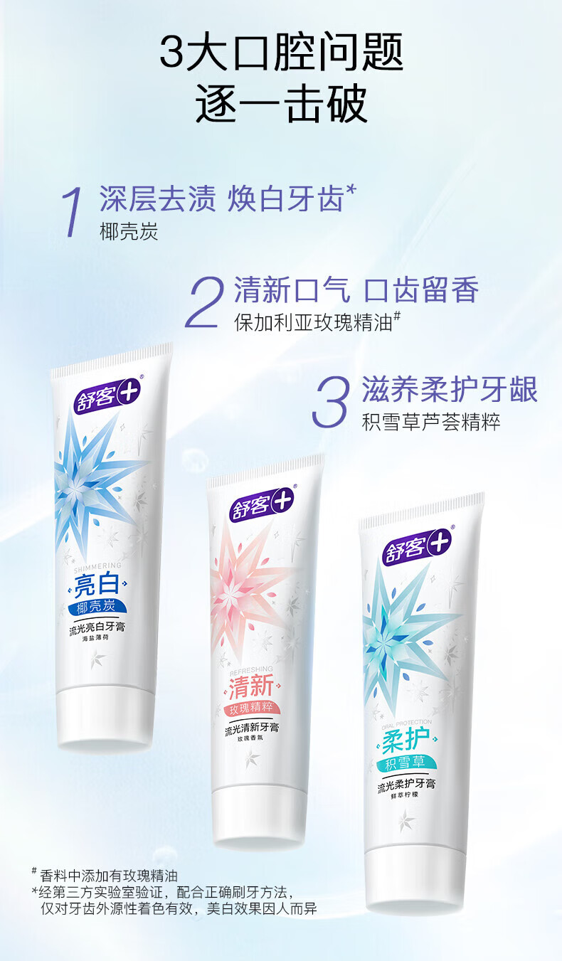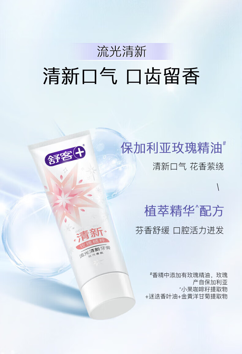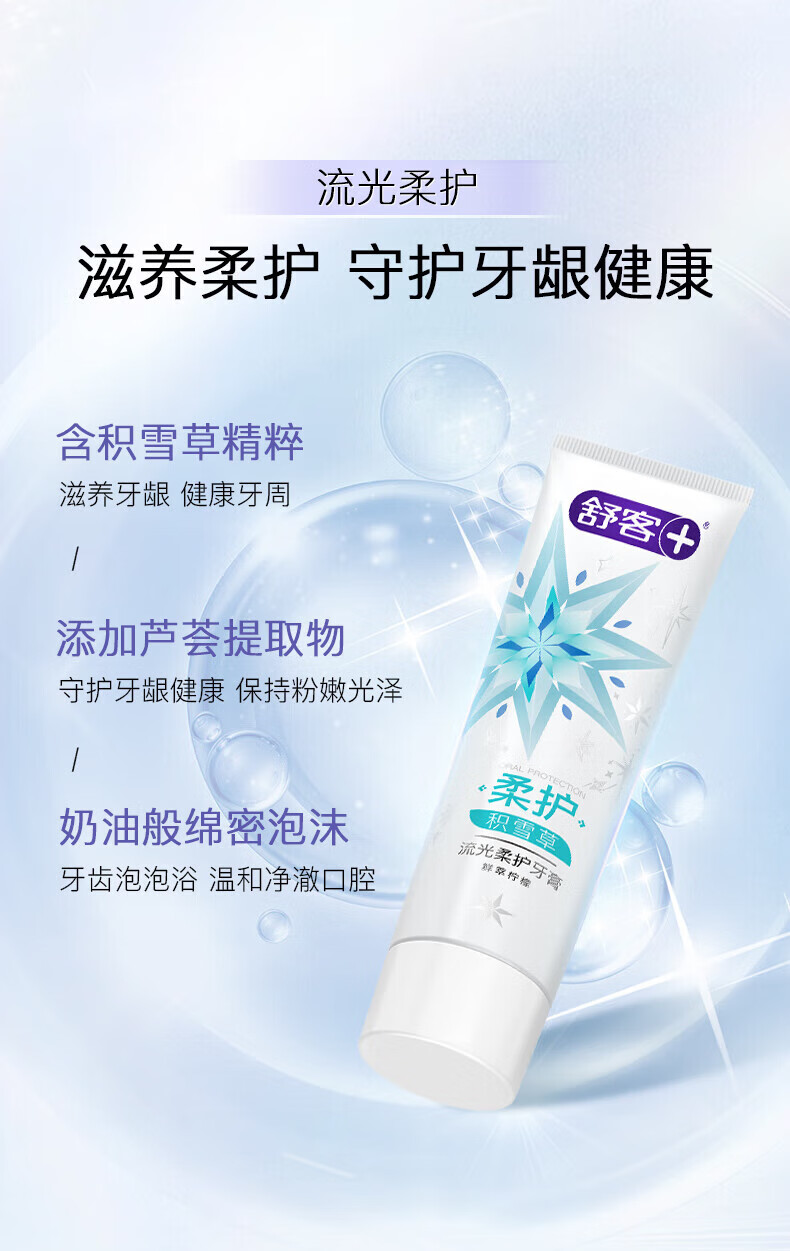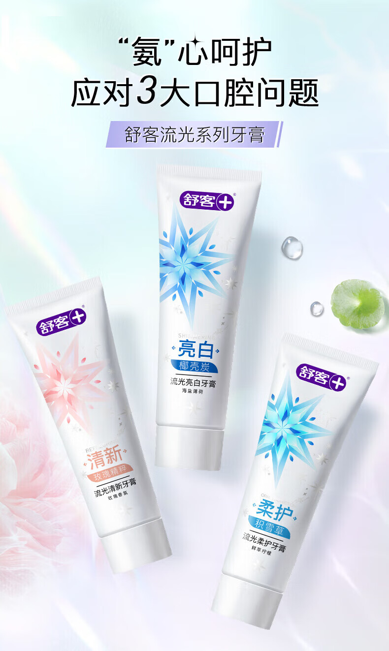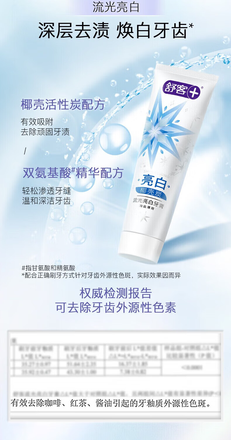 舒客流光氨基酸牙膏美白护牙龈去口气减少菌斑牙渍学生开学好物 流光清新120g*1支