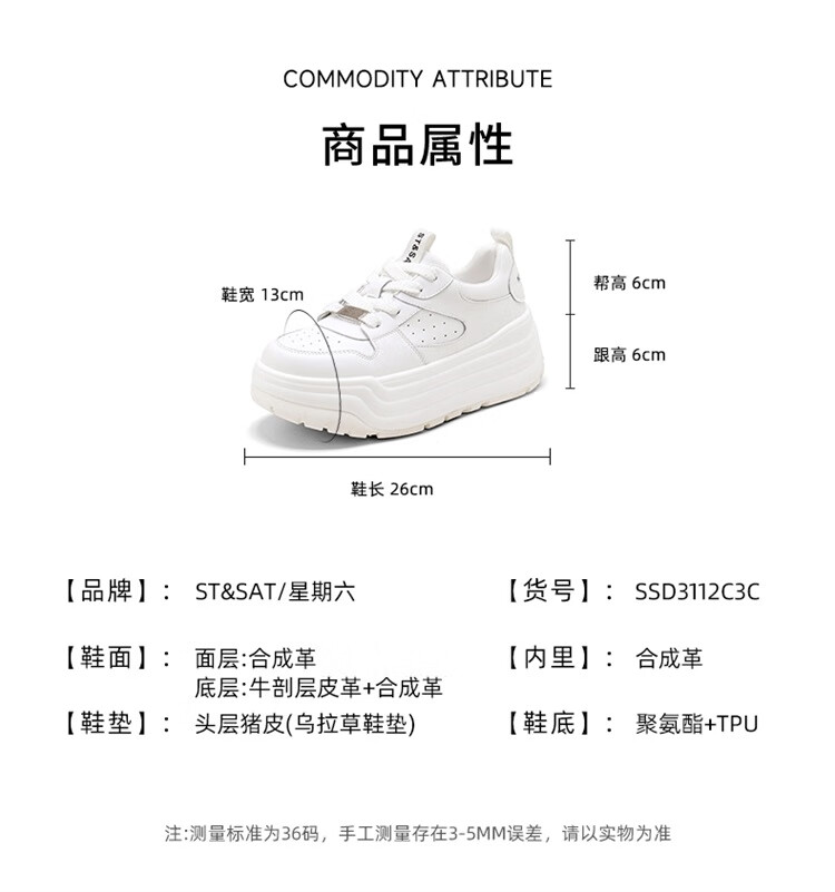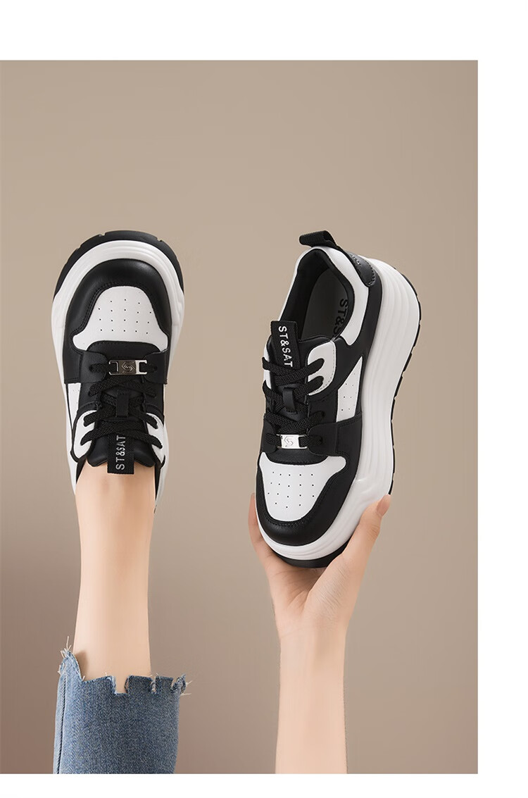 星期六时尚圆头舒适板鞋2025秋季新款百搭小白鞋MTSSD3112C3C 黑色 35