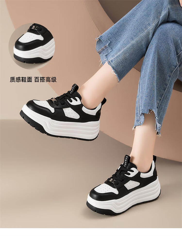 达芙妮星星小白鞋女2025秋季新款休闲ins厚底增高板鞋韩版百搭女鞋JL 白银色 37
