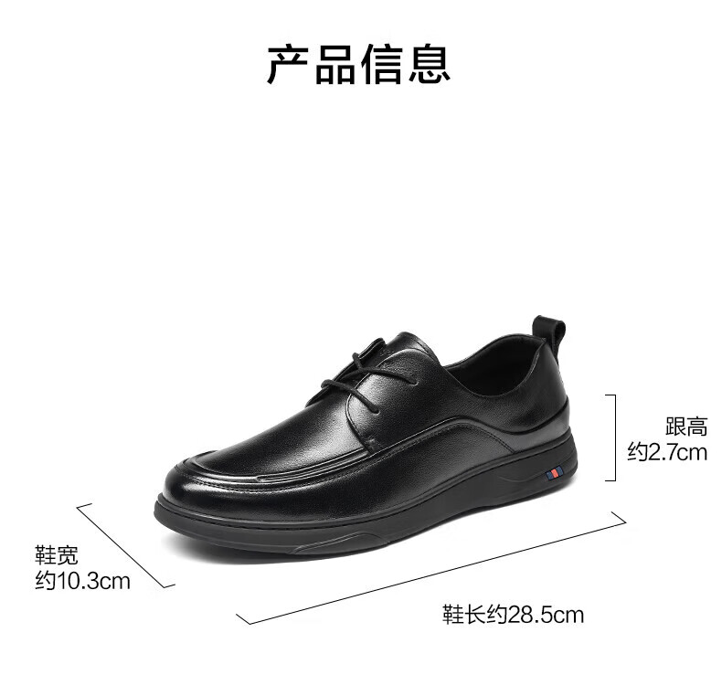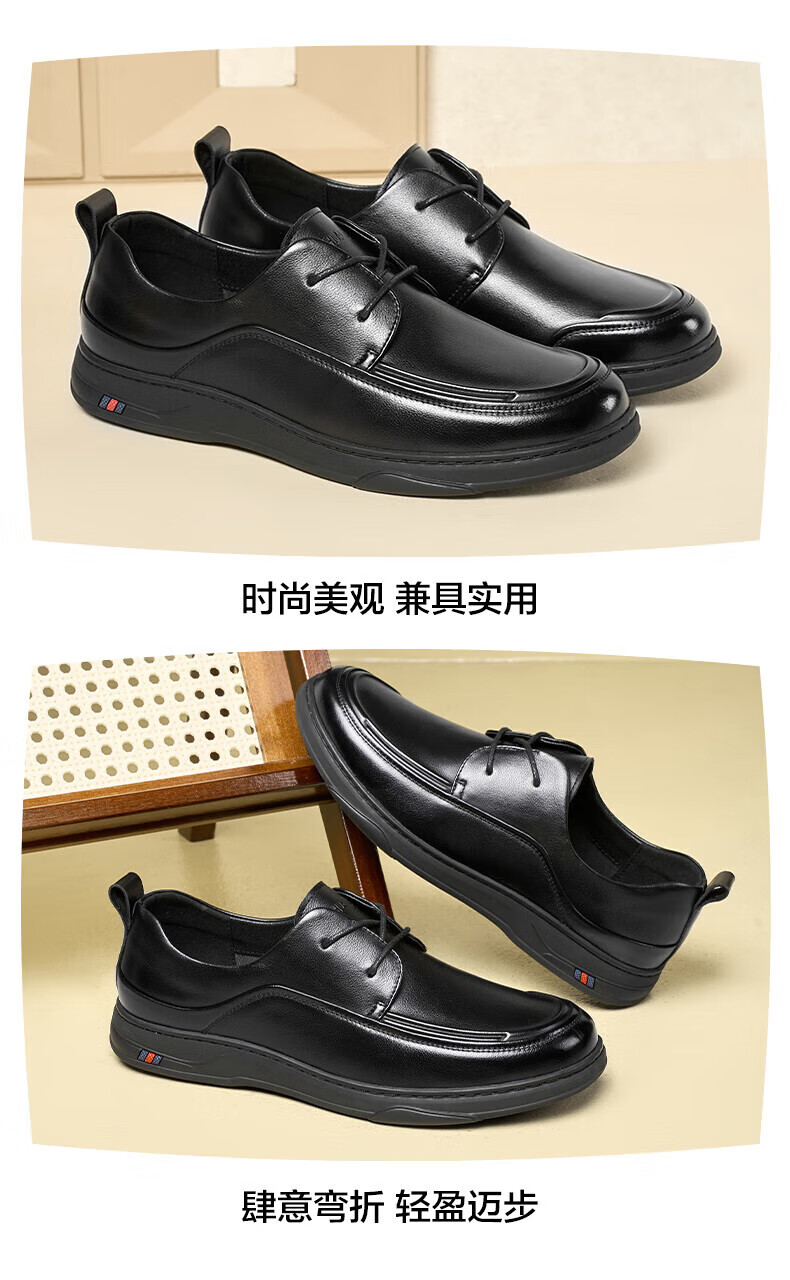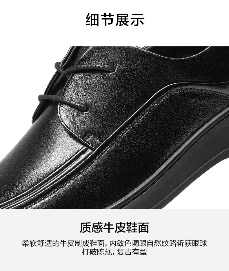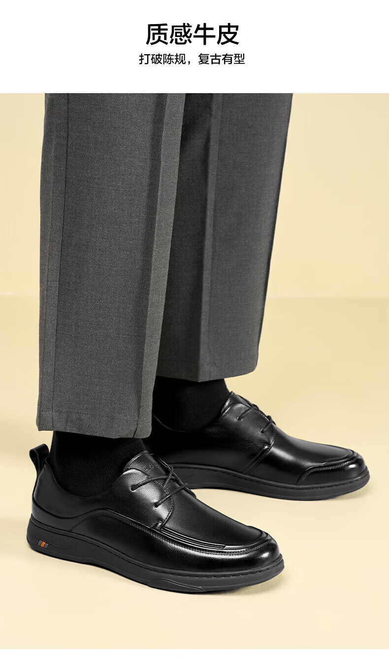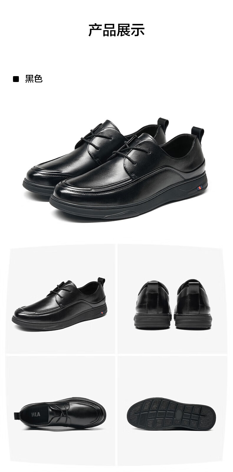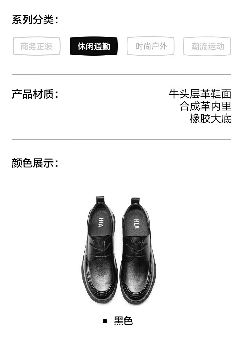 海澜之家(HLA)男鞋2025秋季新款舒适休闲系带皮鞋男通勤鞋子男 黑色 38